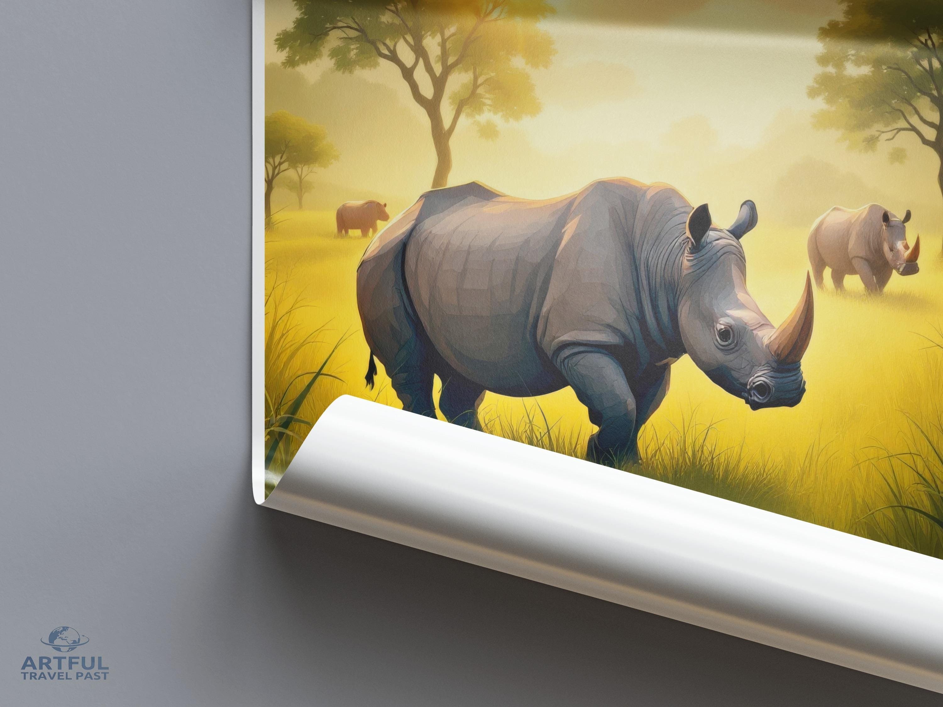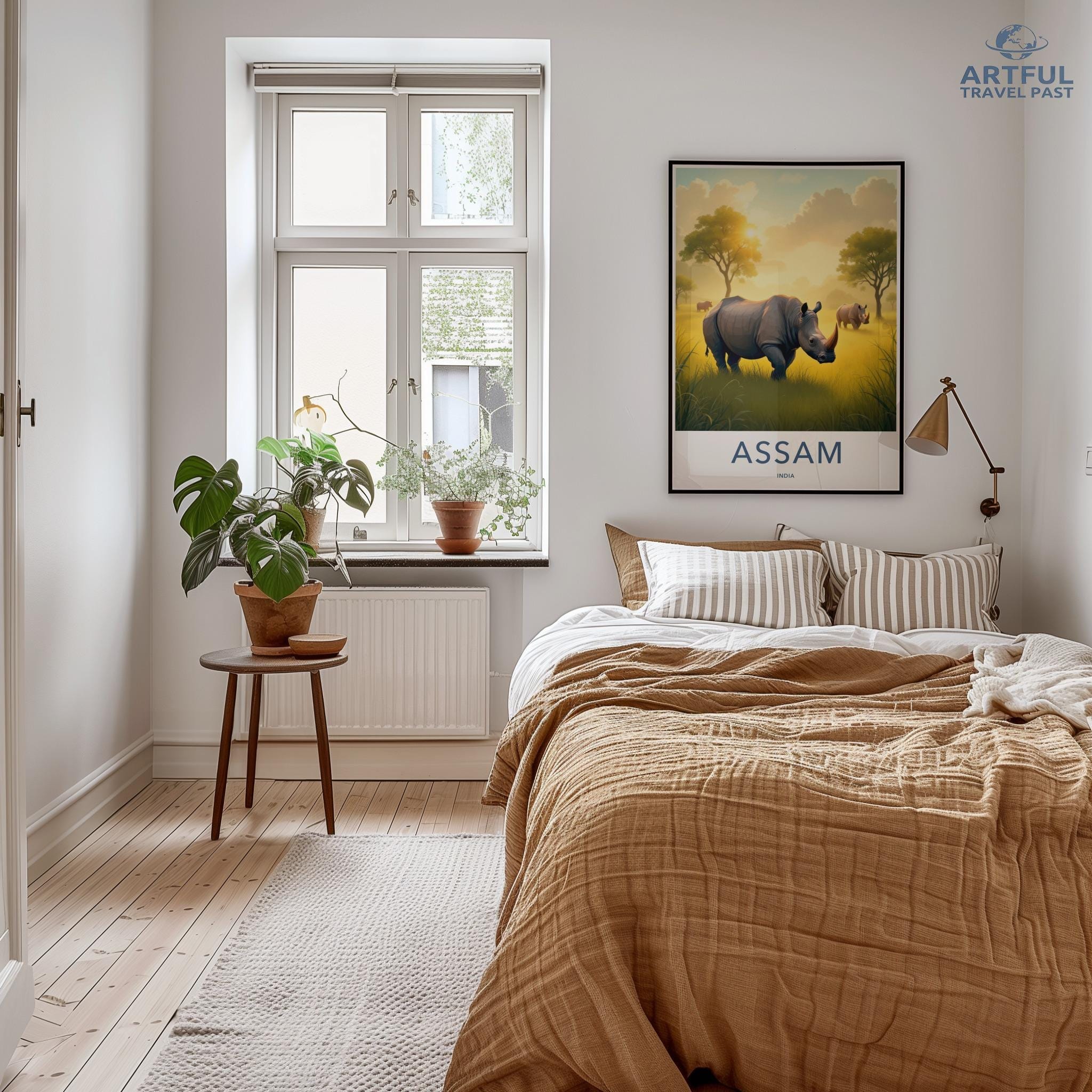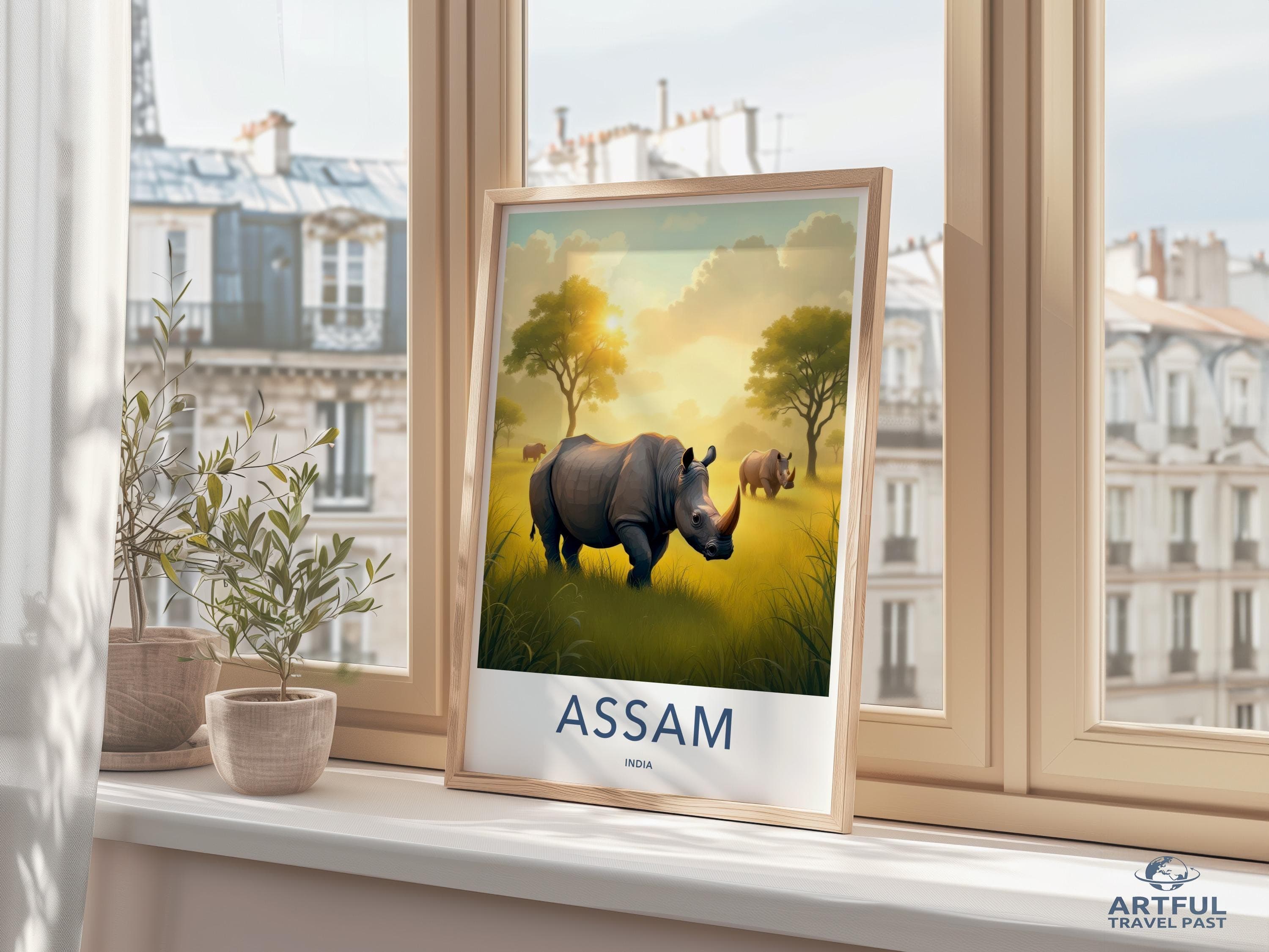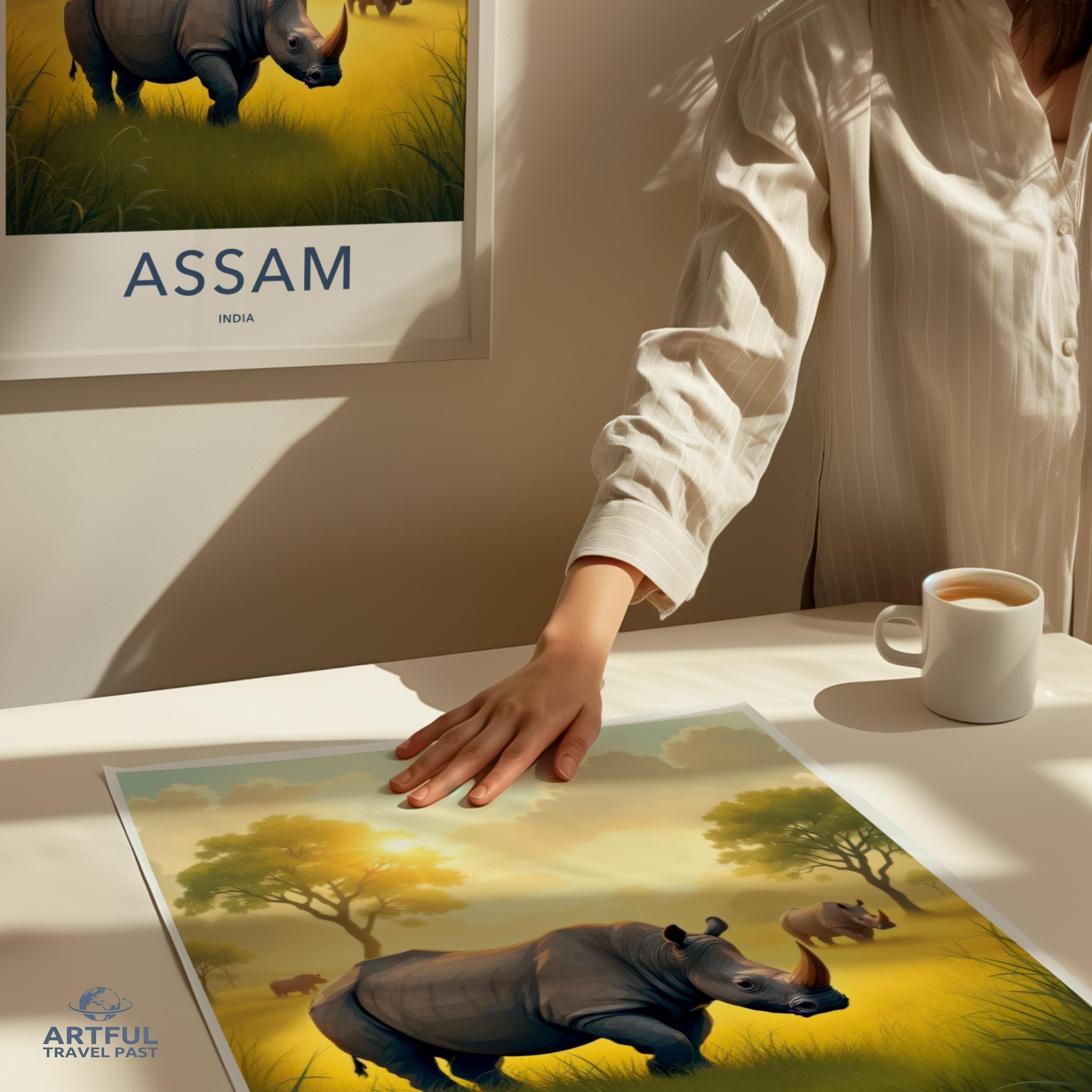 Immerse yourself in the breathtaking beauty of Assam, India, with this vivid wall art featuring majestic rhinos in their natural habitat. Assam, renowned for its rich biodiversity and UNESCO World Heritage sites, is home to the Kaziranga National Park, where the endangered one-horned rhinoceros roams freely. This idyllic scene captures the tranquil essence of Assam’s lush landscapes and the harmonious coexistence of its wildlife. Perfect for nature lovers and travelers alike!