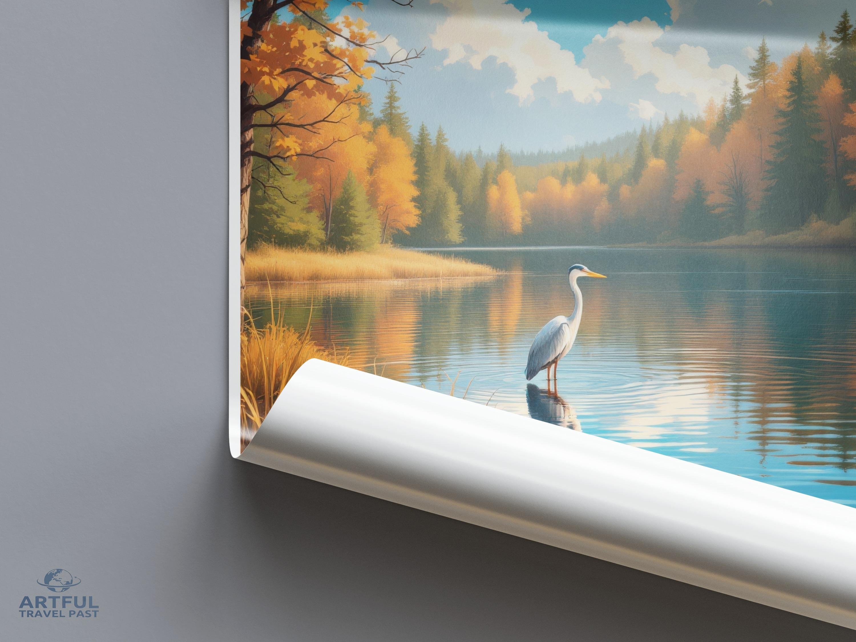 Discover the serene beauty of Wigierski National Park in Poland, captured perfectly in this stunning wall art. Established in 1989, the park is renowned for its pristine lakes, lush forests, and diverse wildlife. The tranquil scene of a majestic heron by the calm waters highlights the park's natural splendor, making it a mesmerizing addition to any space. Experience the peaceful charm of Poland's countryside with this captivating piece.
