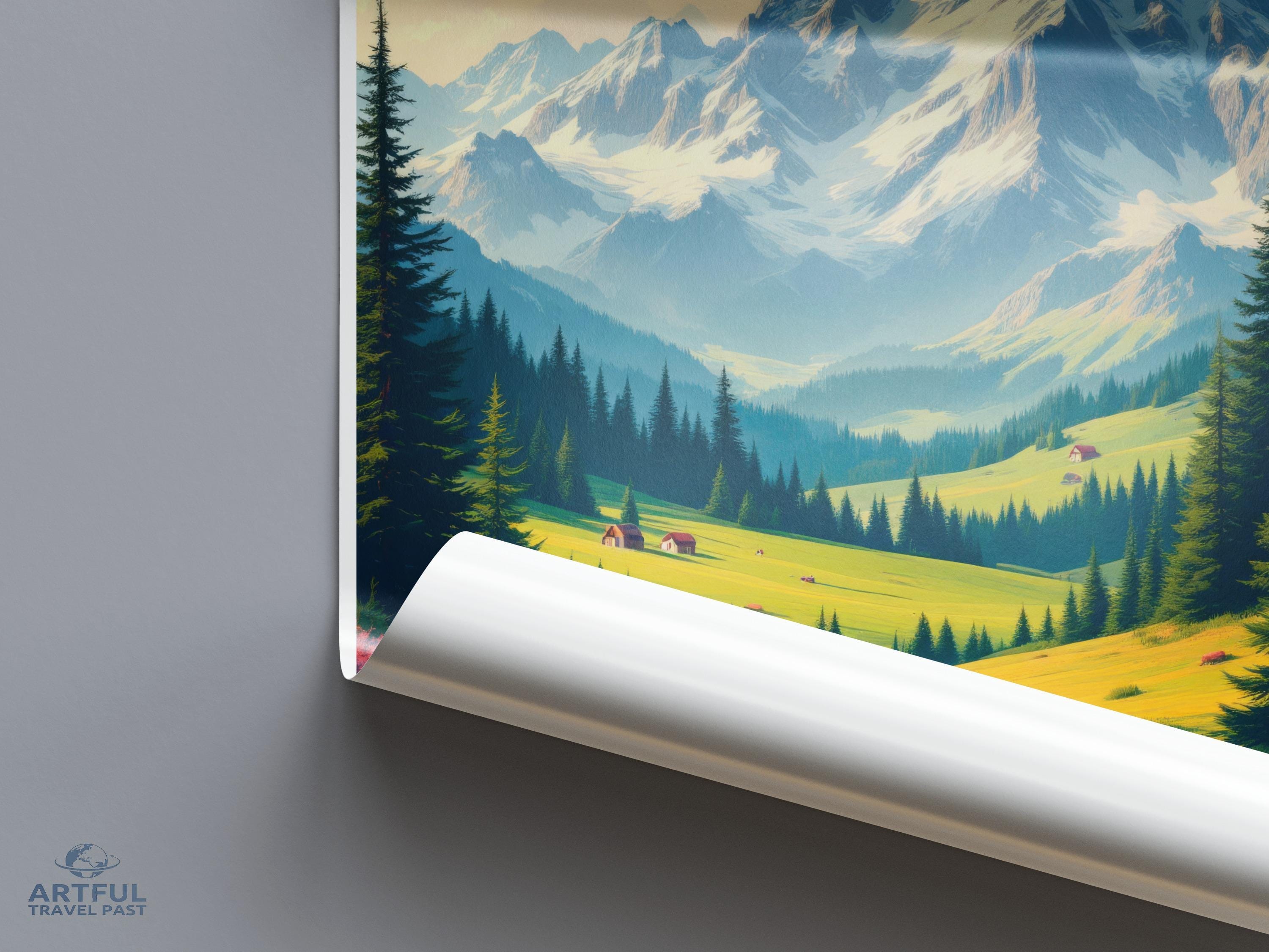 Transport yourself to the enchanting Bavarian Alps in Germany with this stunning wall art. The region is renowned for its breathtaking landscapes, characterized by majestic snow-capped peaks, lush green meadows, and charming alpine villages. Historically, this area has been a cultural crossroads, blending German and Austrian influences. Ideal for nature lovers and adventure seekers alike, the Bavarian Alps are a true European gem.