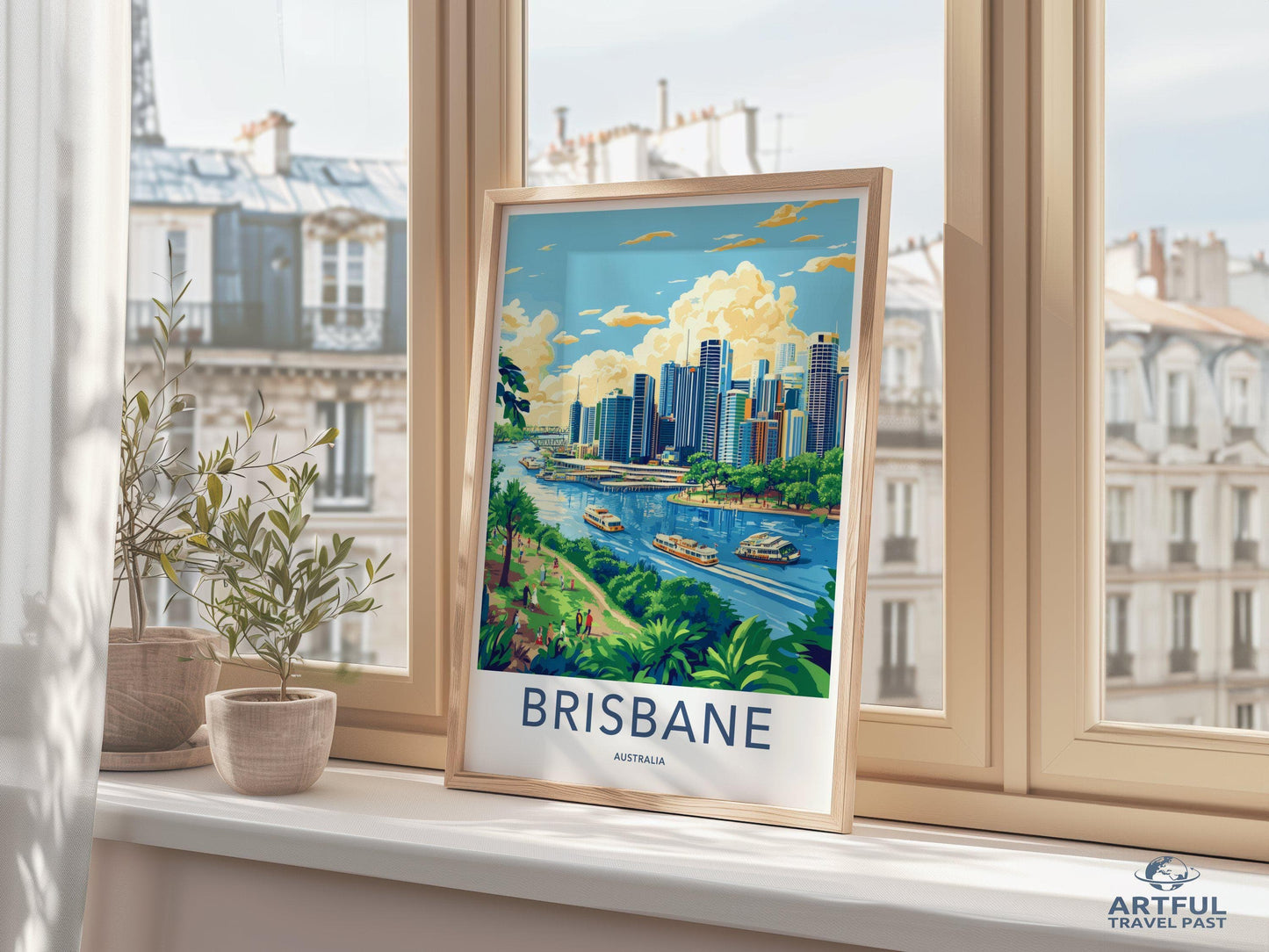 This vibrant wall art captures the essence of Brisbane, Australia, showcasing its stunning natural beauty and modern architectural skyline. Situated along the scenic Brisbane River, the artwork highlights the city's lush parks, iconic Story Bridge, and bustling waterfront. Celebrate Brisbane's rich cultural heritage with this striking piece that brings the dynamic spirit and picturesque landmarks of this vibrant city into your home.