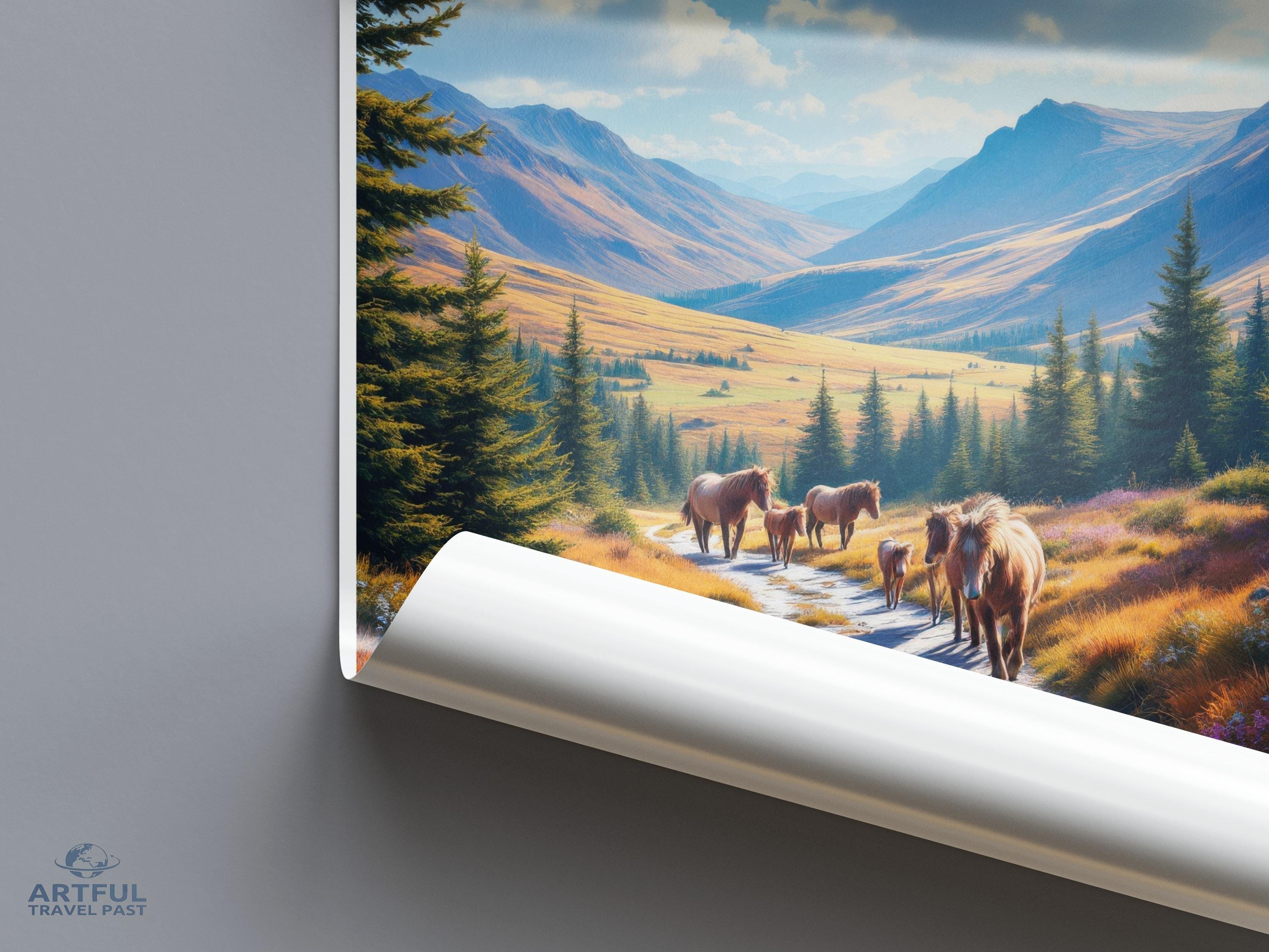 Experience the breathtaking beauty of the Cairngorms, Scotland's stunning national park known for its majestic landscapes and rich wildlife. This wall art captures the serene path through vibrant heather, leading to rolling hills and towering peaks. Perfect for nature enthusiasts, the Cairngorms also boast ancient forests and charming highland villages, offering a glimpse into Scotland's storied past. Add a touch of natural splendor to your space with this picturesque scene.