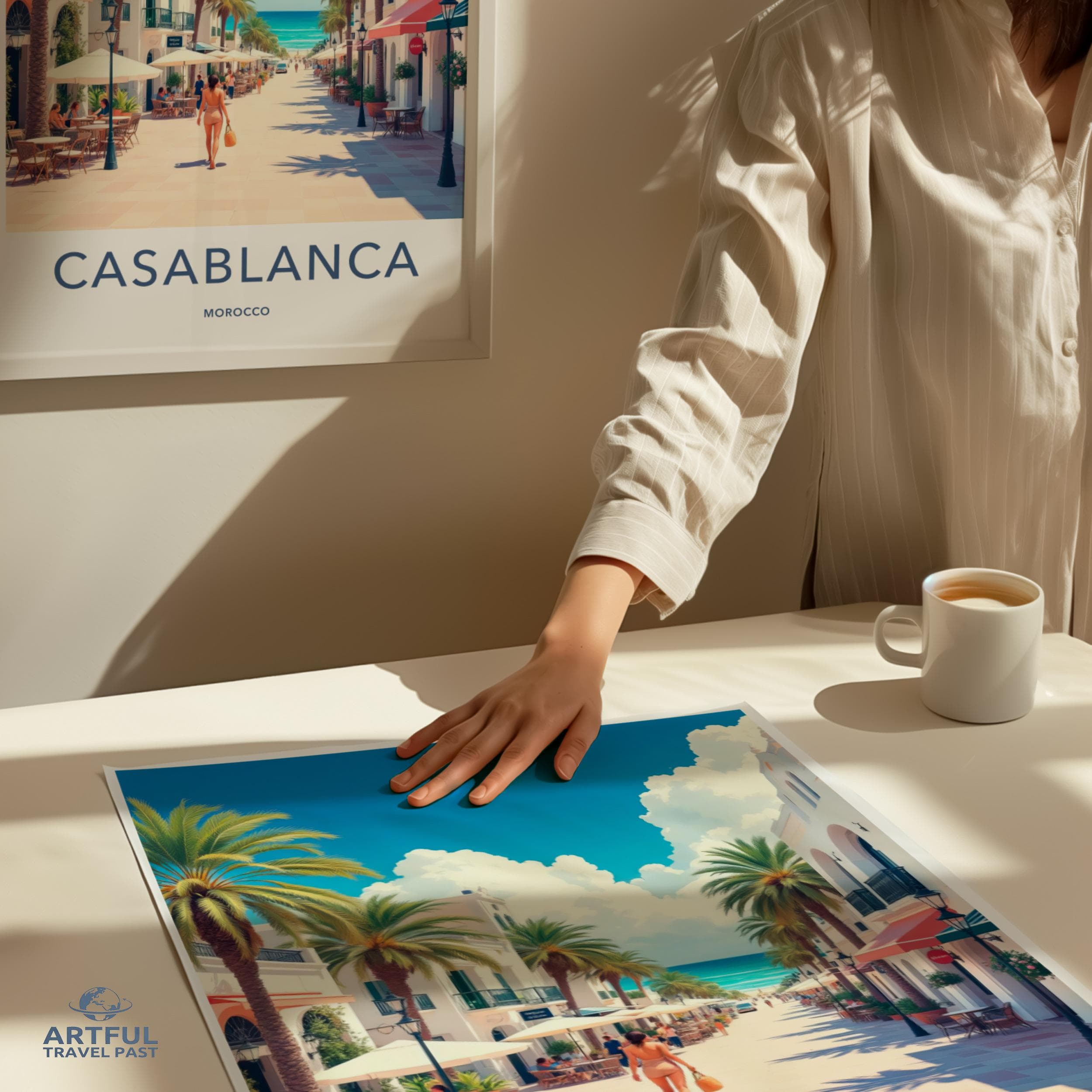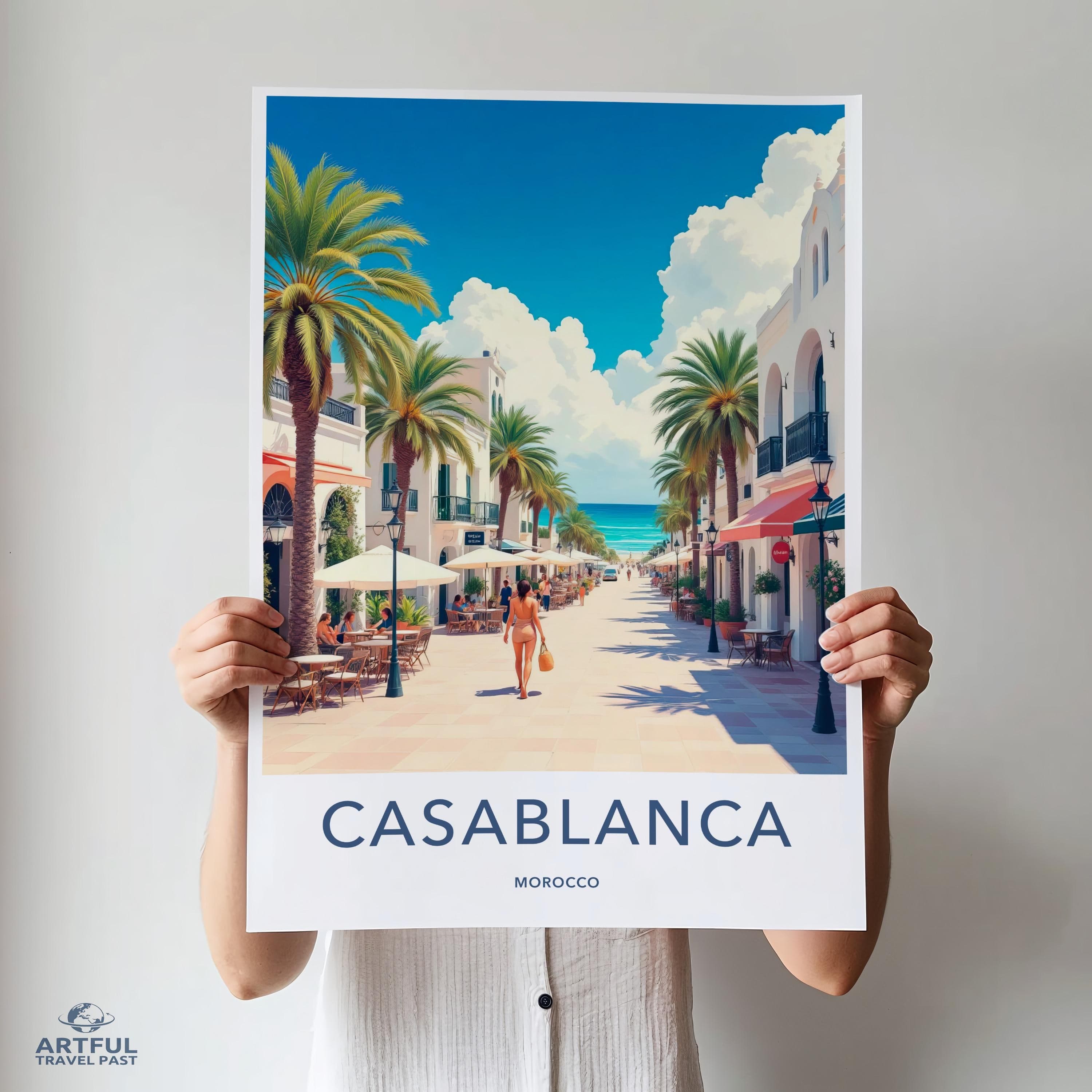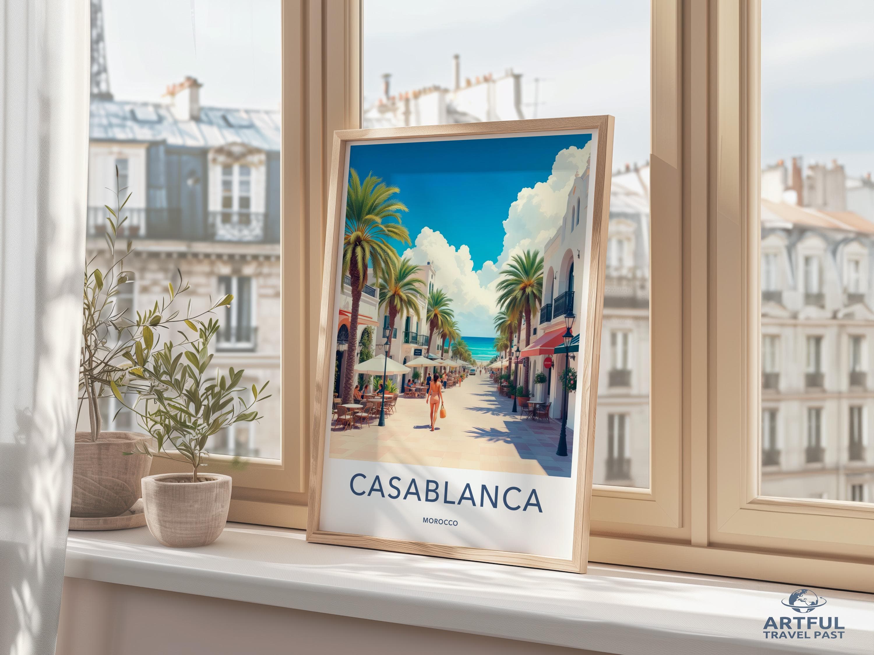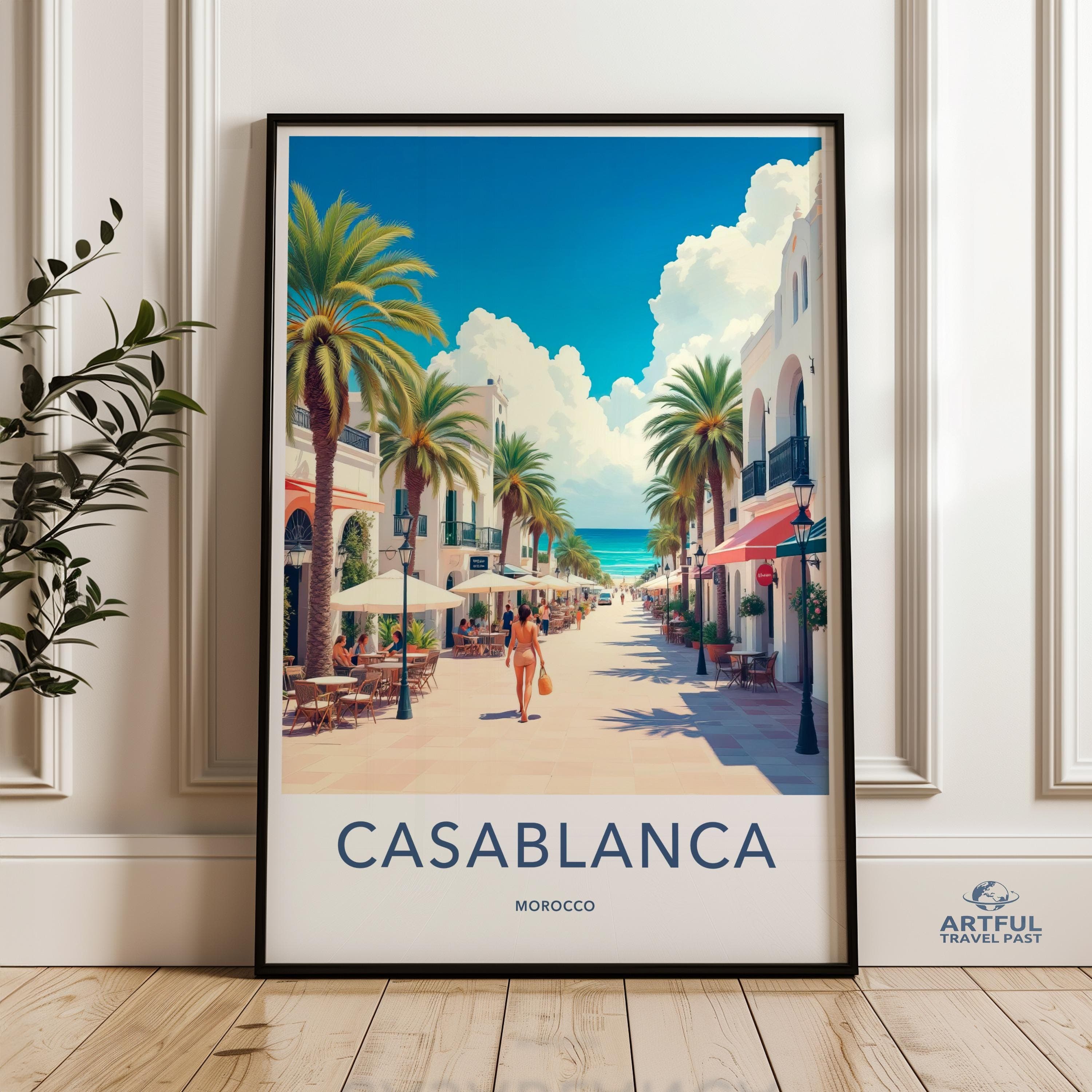 Transform your space with this captivating wall art showcasing the beautiful city of Casablanca, Morocco. Known for its stunning blend of modernity and tradition, Casablanca features picturesque palm-lined streets, white-washed architecture, and the famous Hassan II Mosque. This vibrant piece captures the city's sunny ambiance and rich cultural tapestry, making it a perfect addition to your home or office decor. Let the essence of Casablanca bring warmth and sophistication to your walls.