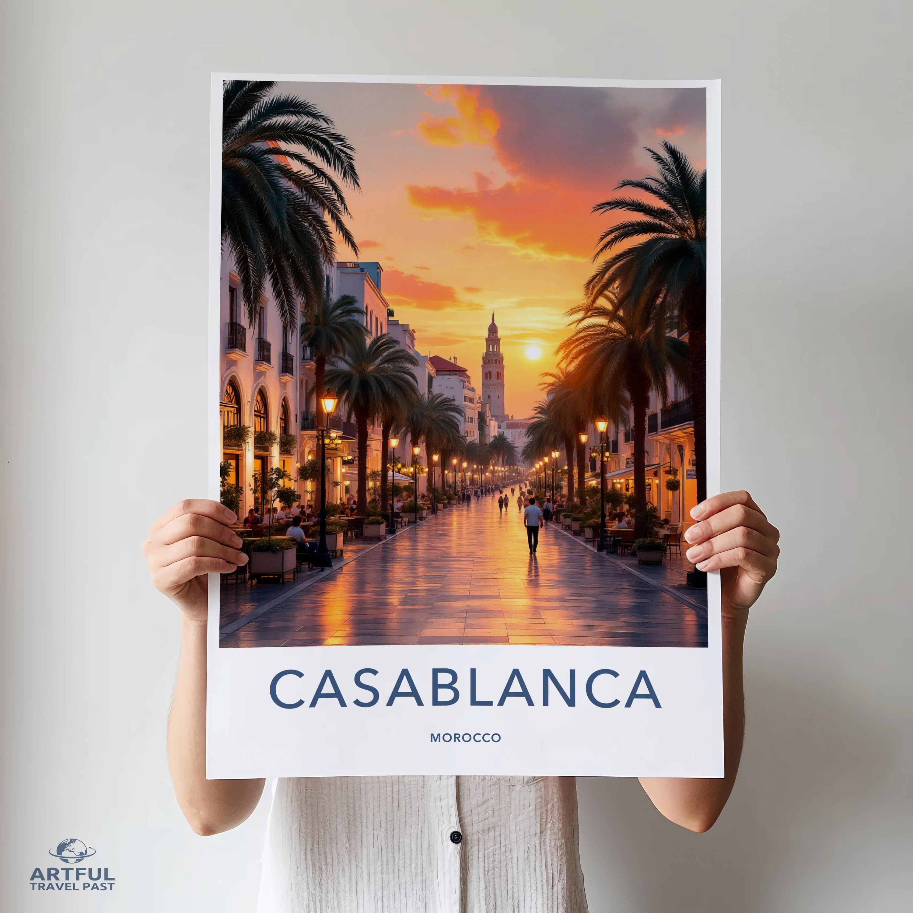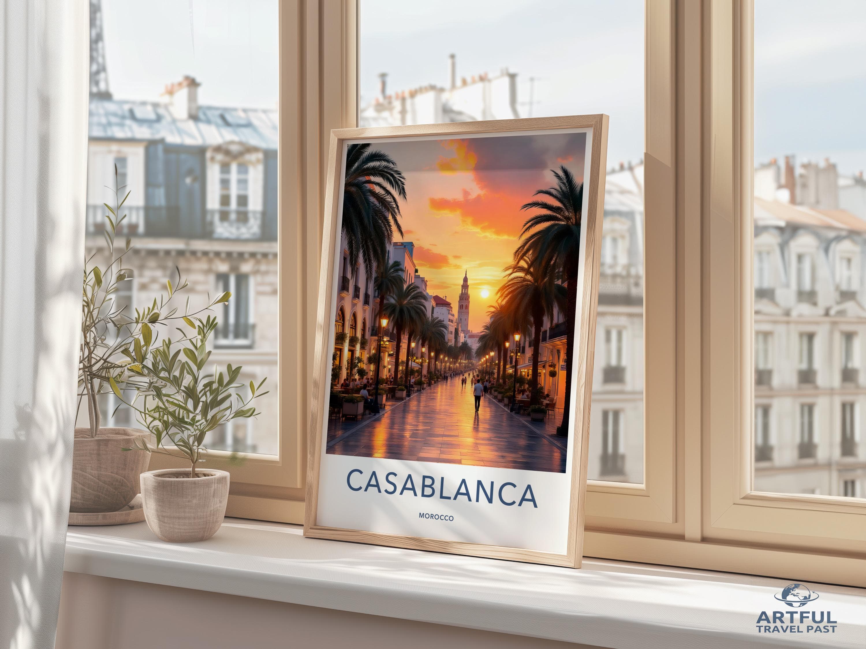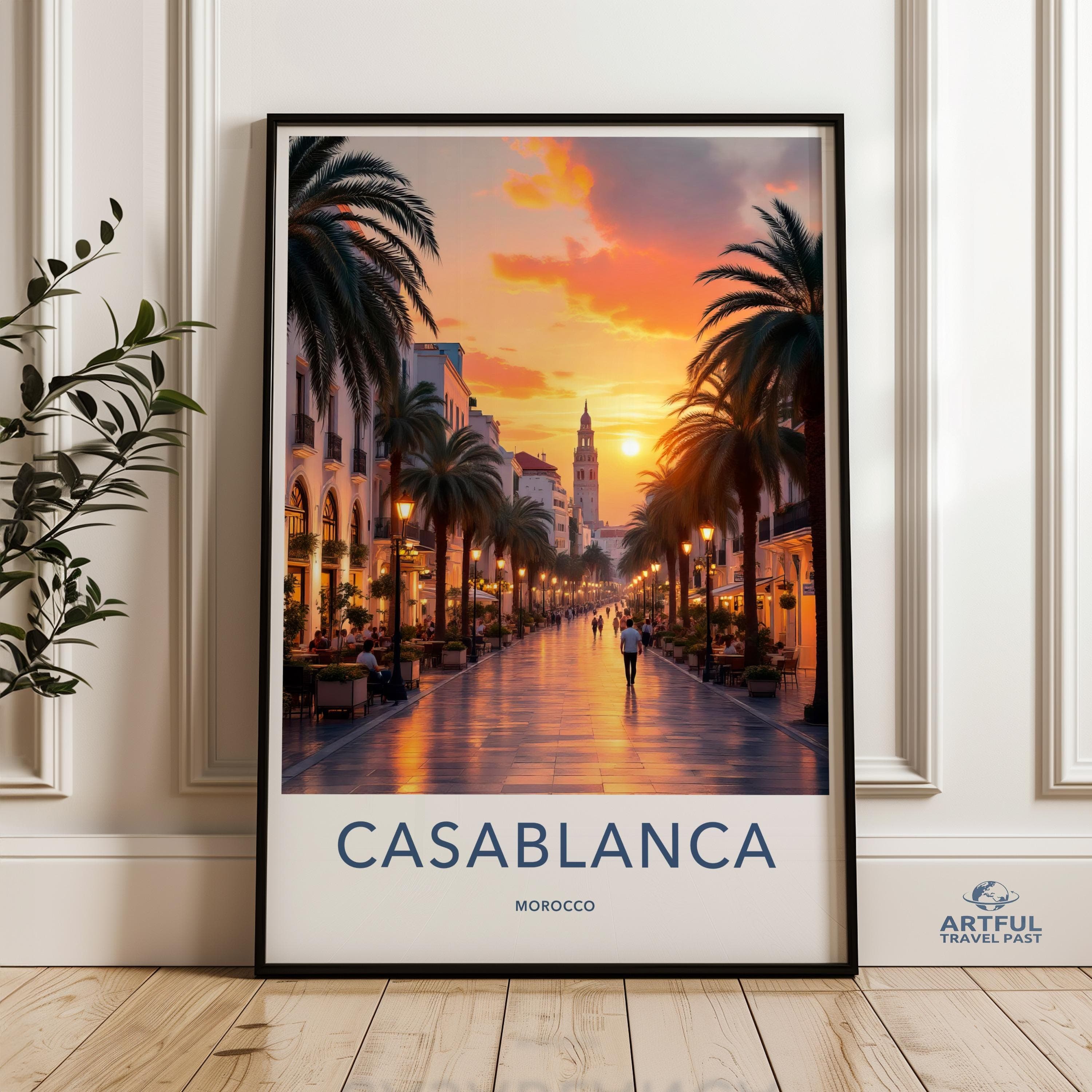 Immerse yourself in the vibrant charm of Casablanca, Morocco with this stunning wall art. This bustling city blends modernity and tradition, offering picturesque views of palm-lined boulevards and striking sunsets. Known for its rich history and French colonial heritage, Casablanca features iconic landmarks like the Hassan II Mosque. Perfect for adding a touch of exotic elegance to your space, this piece captures the enchanting beauty of Morocco's largest city.