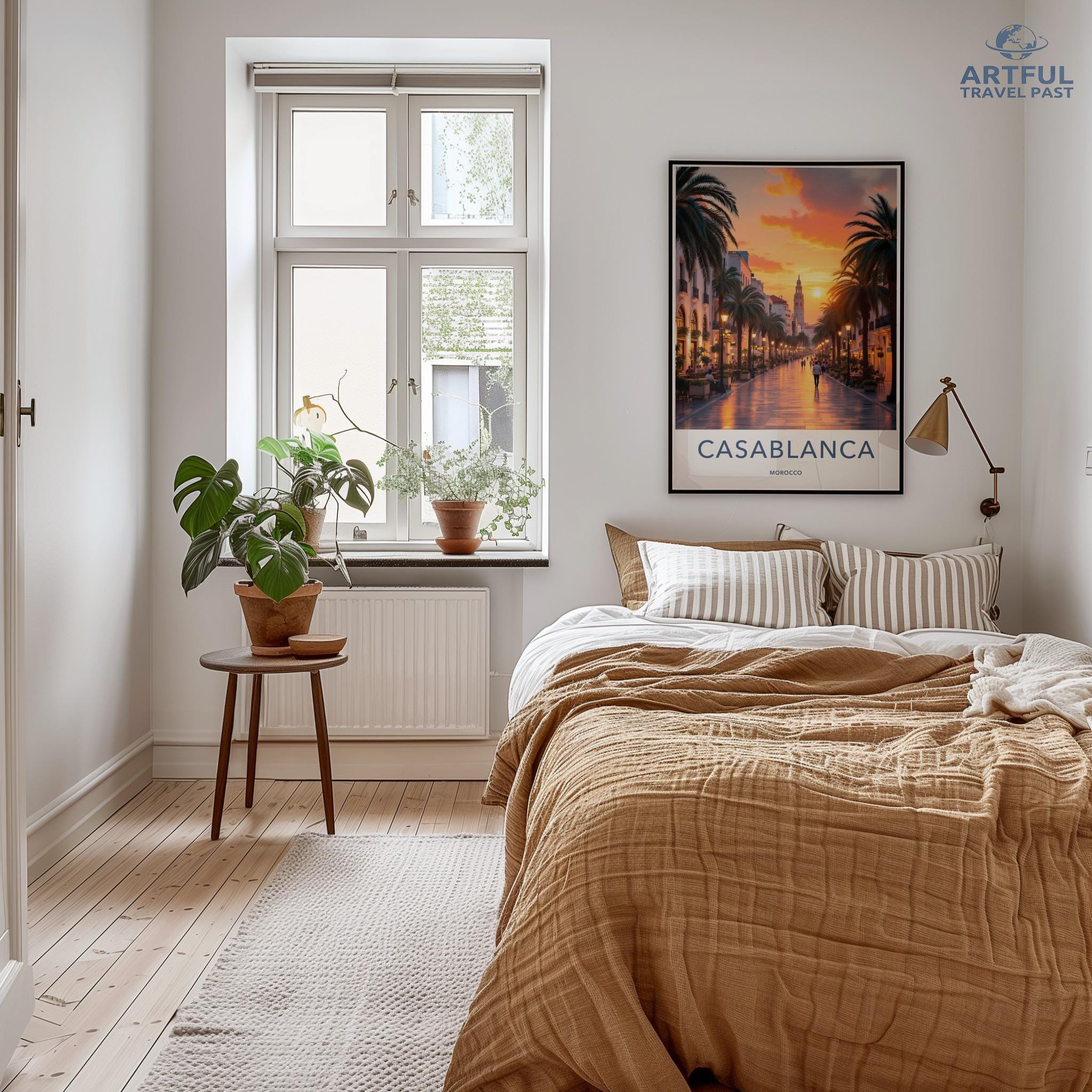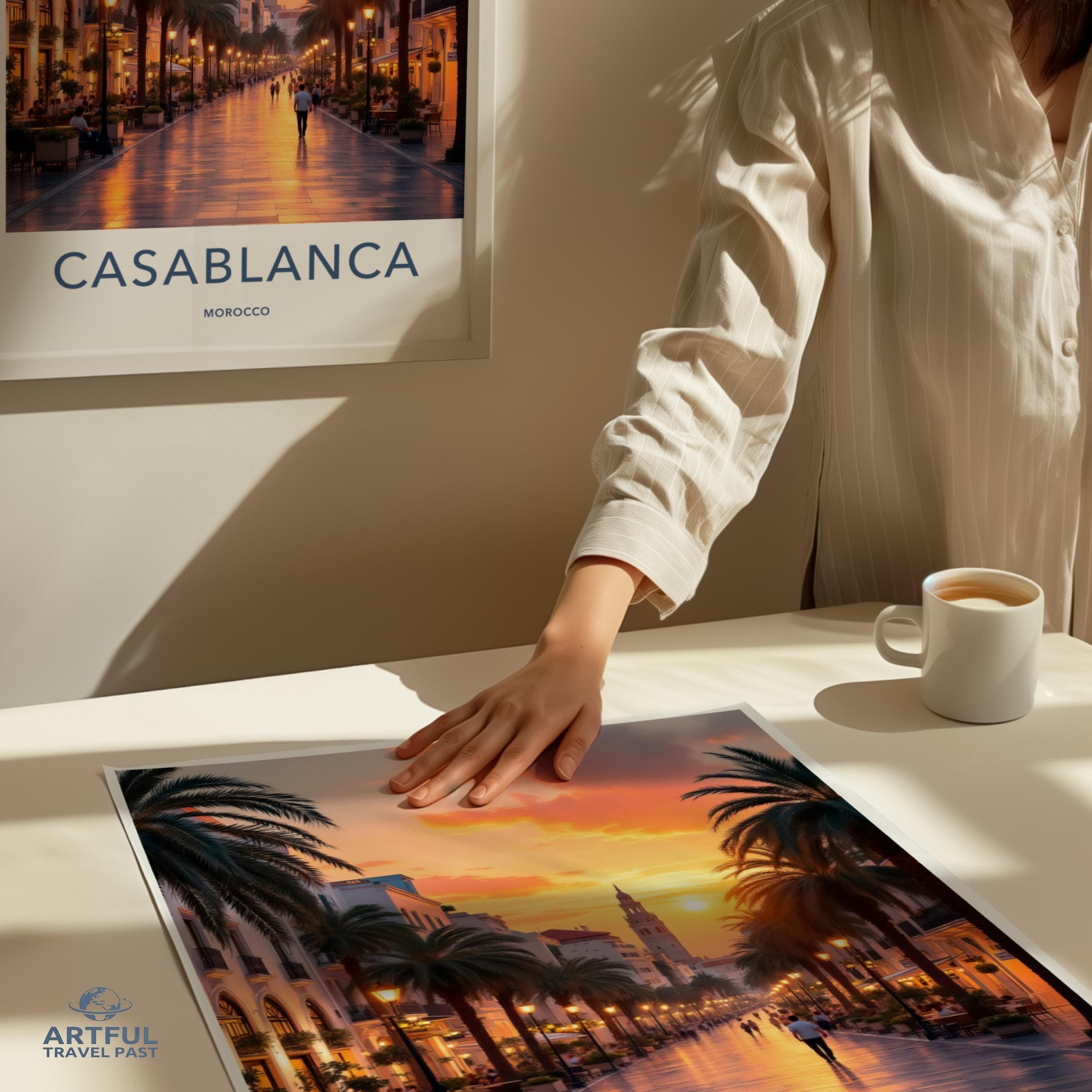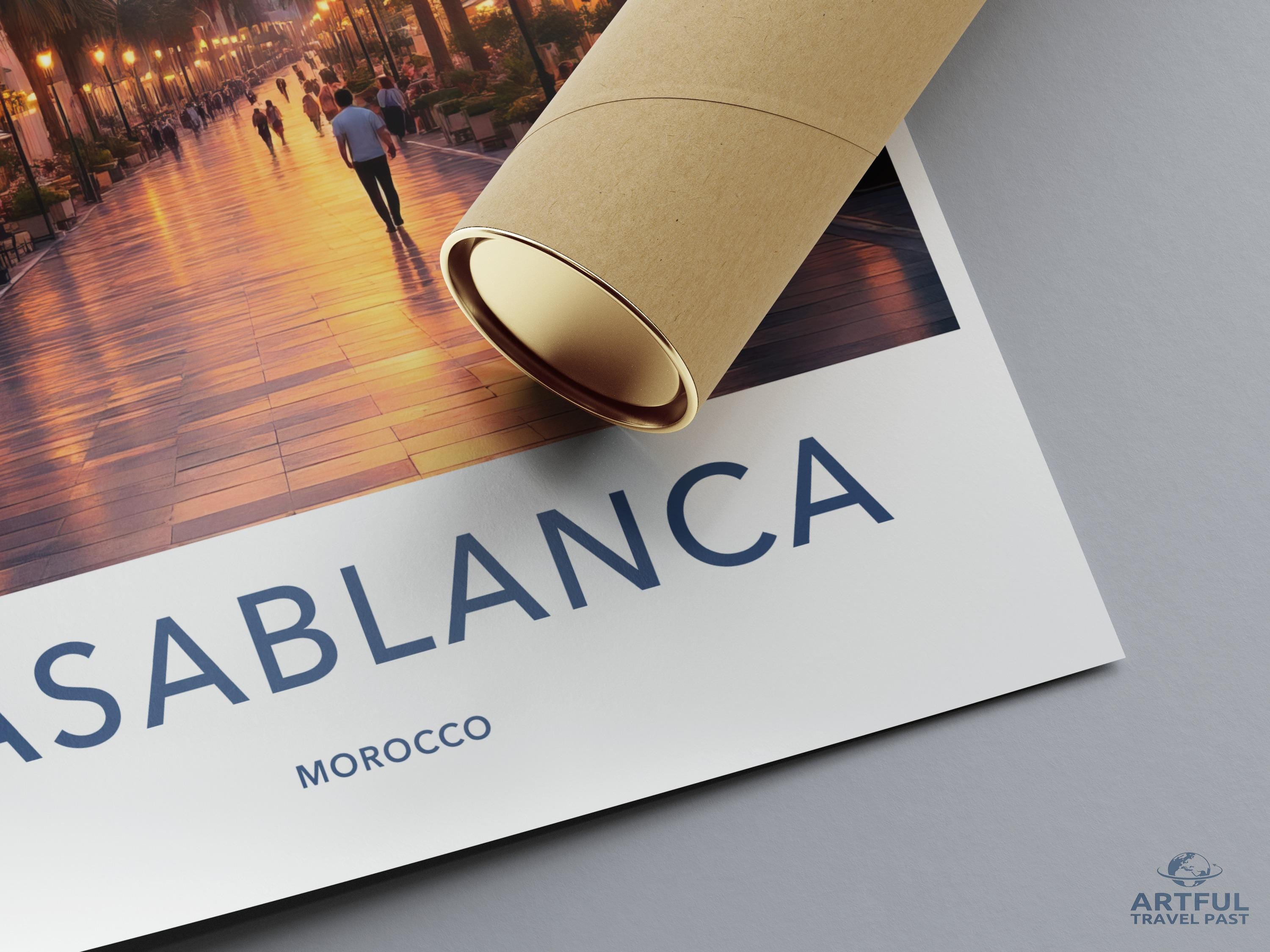 Immerse yourself in the vibrant charm of Casablanca, Morocco with this stunning wall art. This bustling city blends modernity and tradition, offering picturesque views of palm-lined boulevards and striking sunsets. Known for its rich history and French colonial heritage, Casablanca features iconic landmarks like the Hassan II Mosque. Perfect for adding a touch of exotic elegance to your space, this piece captures the enchanting beauty of Morocco's largest city.