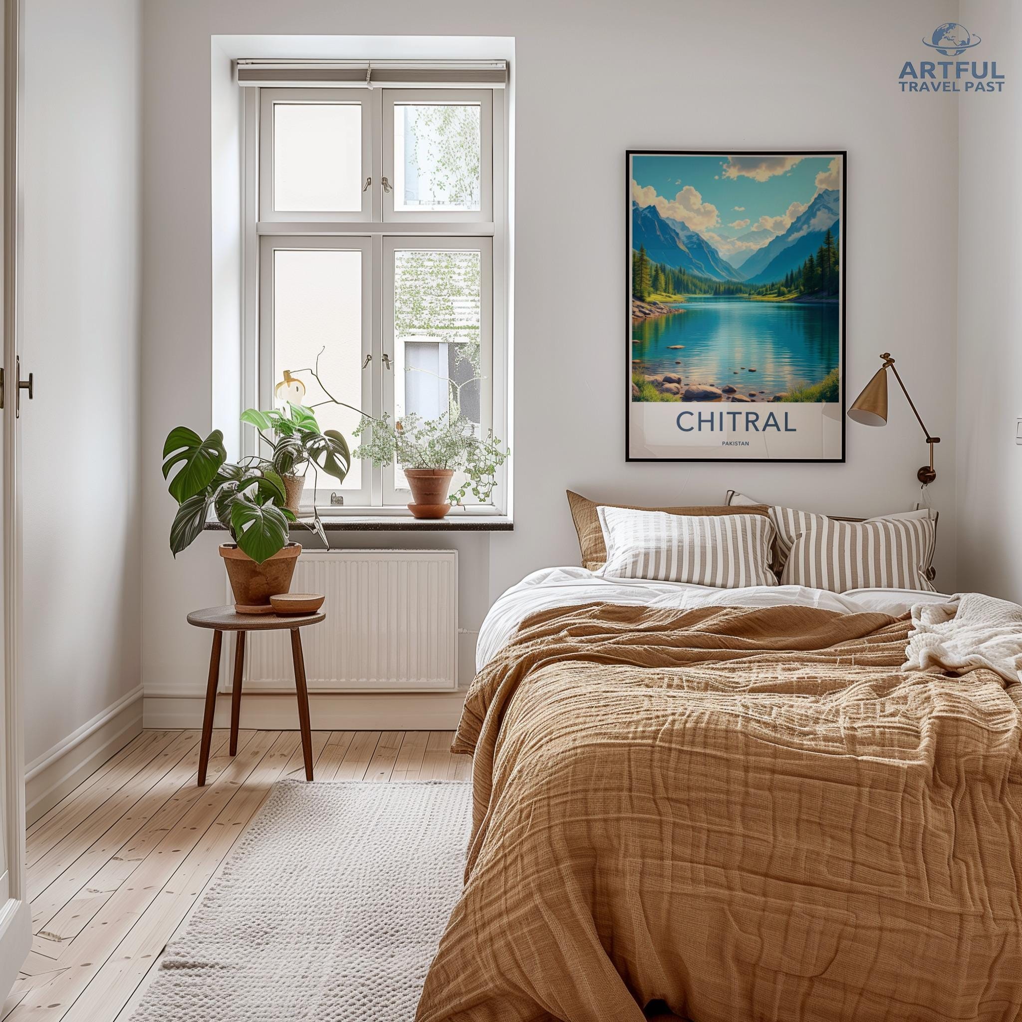 This stunning wall art captures the serene beauty of Chitral, Pakistan, nestled in the majestic Hindukush range. Known for its breathtaking landscapes, Chitral is a haven for nature lovers and adventure seekers. Highlights include the enchanting Chitral River and the historic Chitral Fort. The vibrant, lush greenery and snow-capped peaks create a captivating scene that beautifully marries natural splendor with cultural richness. Perfect for adding tranquility to any space.