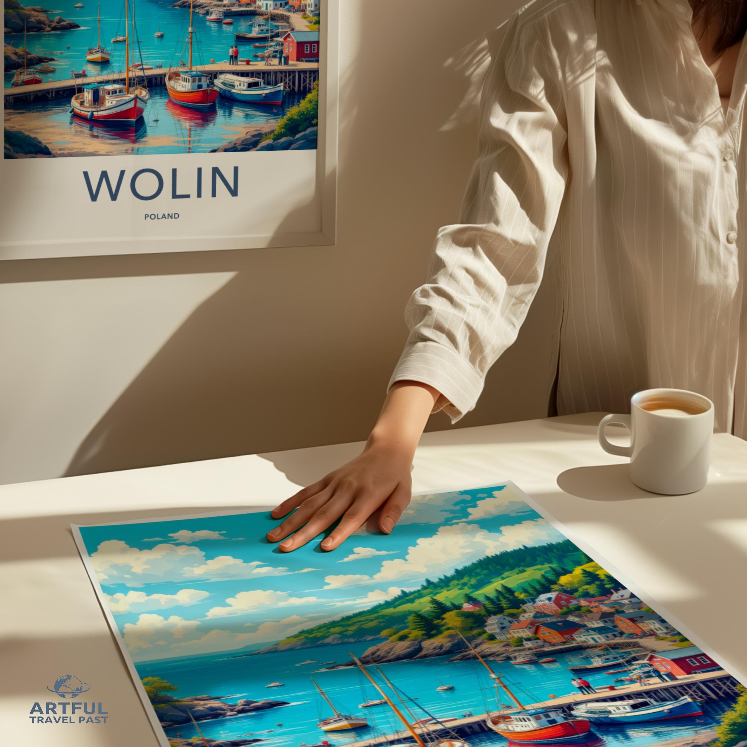 This vibrant wall art captures the picturesque charm of Wolin, a stunning island off the coast of Poland. Known for its captivating blend of lush greenery and serene waters, Wolin boasts a rich history with Viking roots. The colorful houses nestled on the hillsides, the quaint fishing boats, and the azure blue sea create a captivating scene that brings beauty and tranquility to any space.