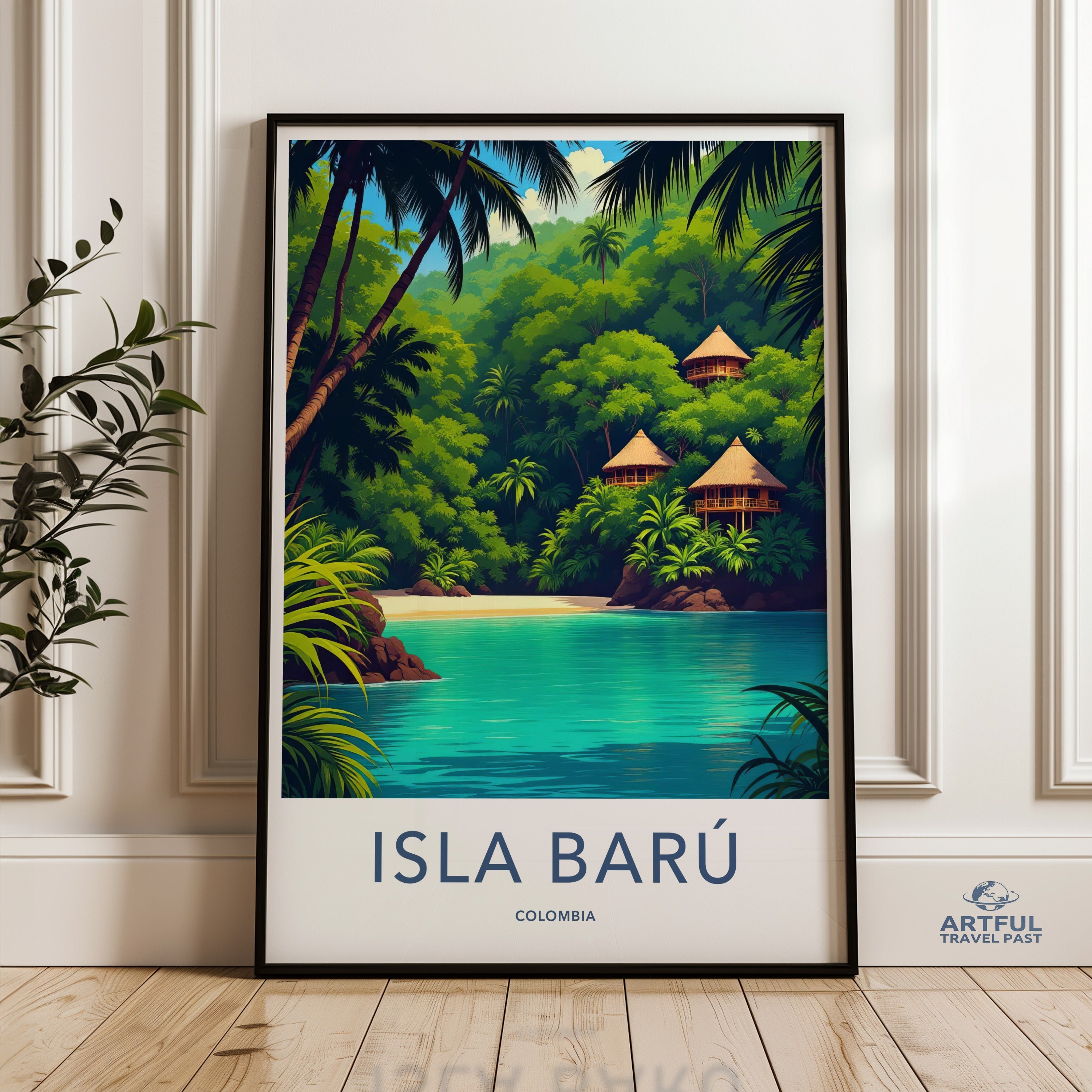Discover the serene beauty of Isla Barú in Colombia with this captivating wall art. Nestled in crystal-clear turquoise waters, Isla Barú boasts lush tropical greenery and charming thatched-roof huts that evoke a tranquil paradise. Historically a peaceful haven, it’s known for pristine beaches and vibrant marine life, making it an ideal getaway for nature lovers and adventurers alike. Add this picturesque piece to your collection and feel the escape.