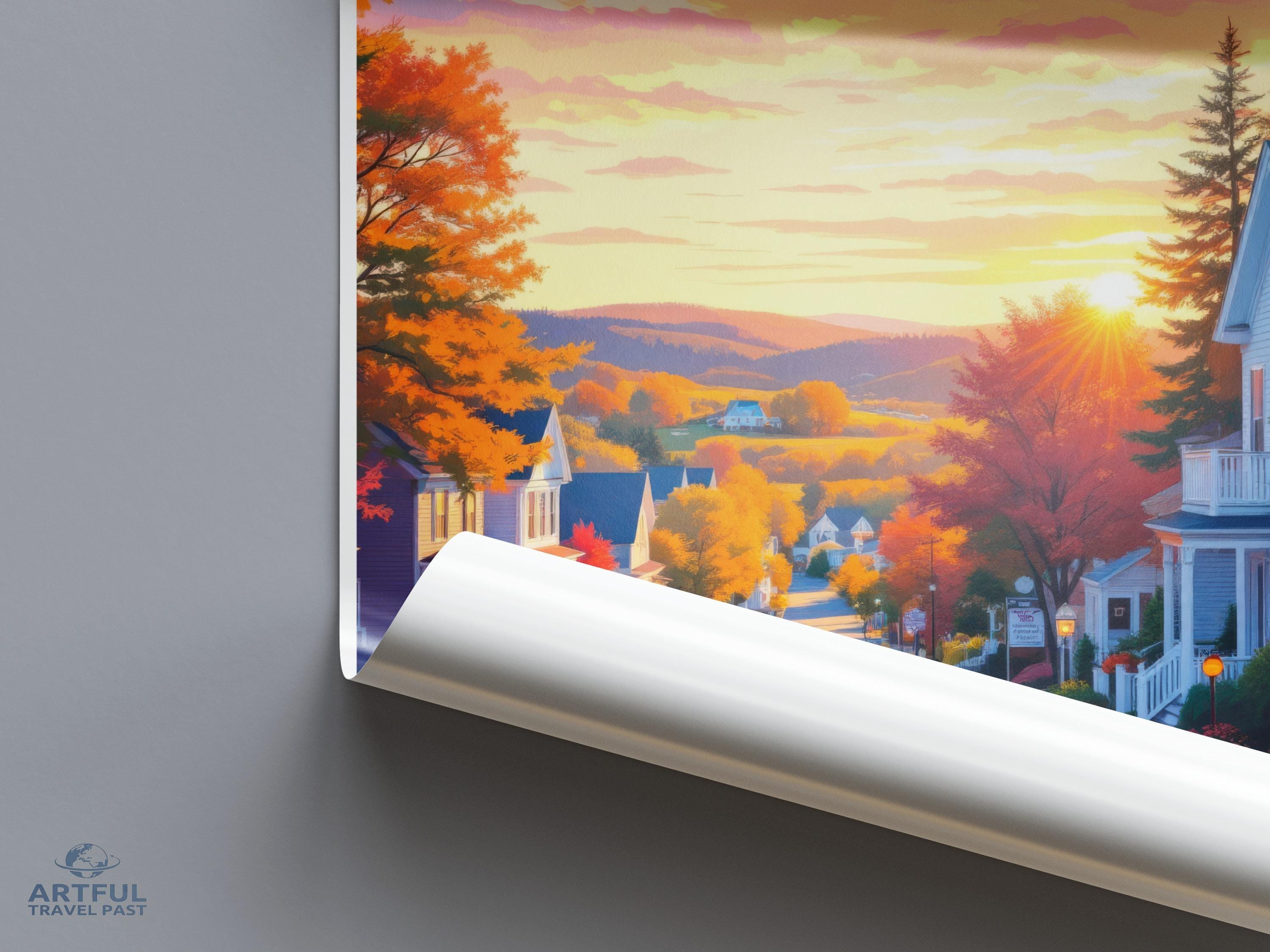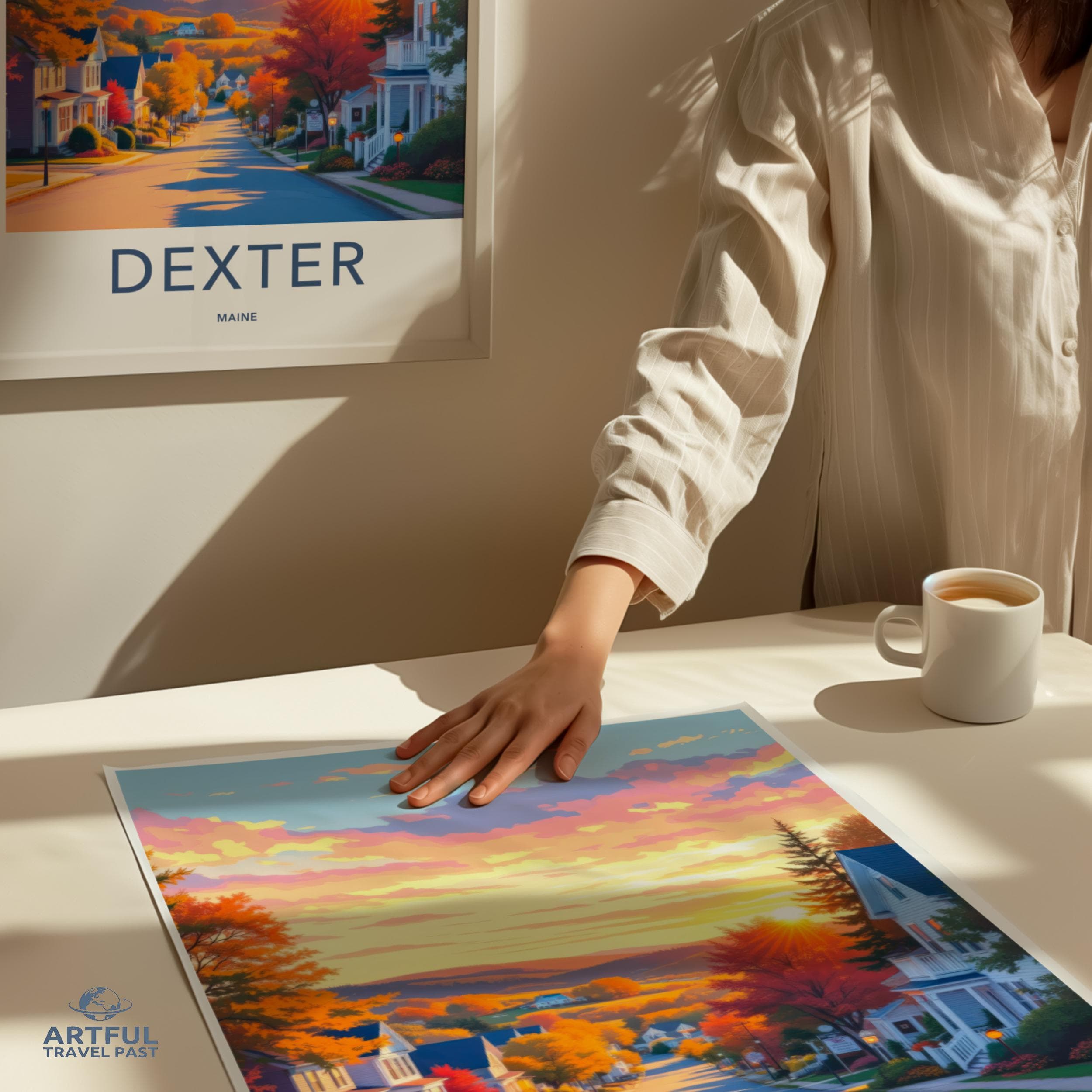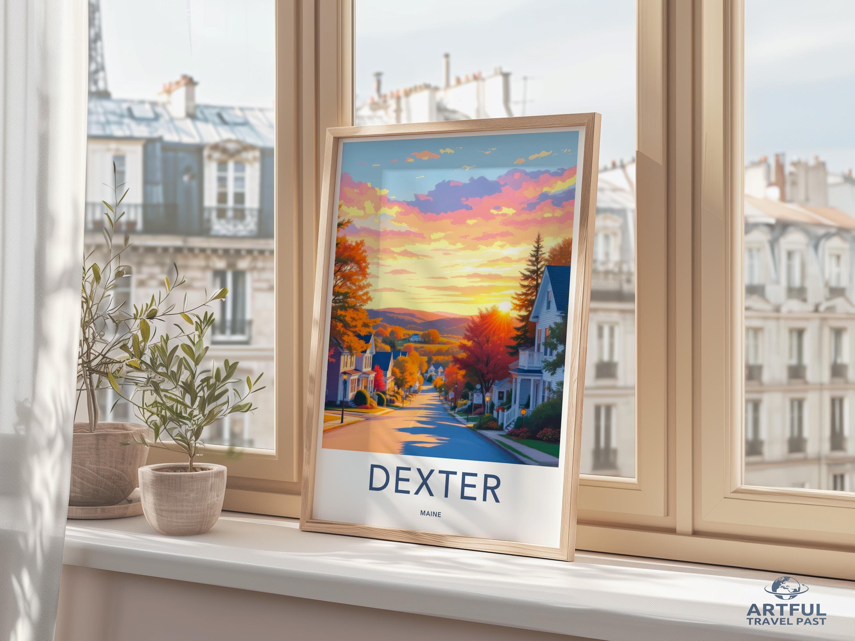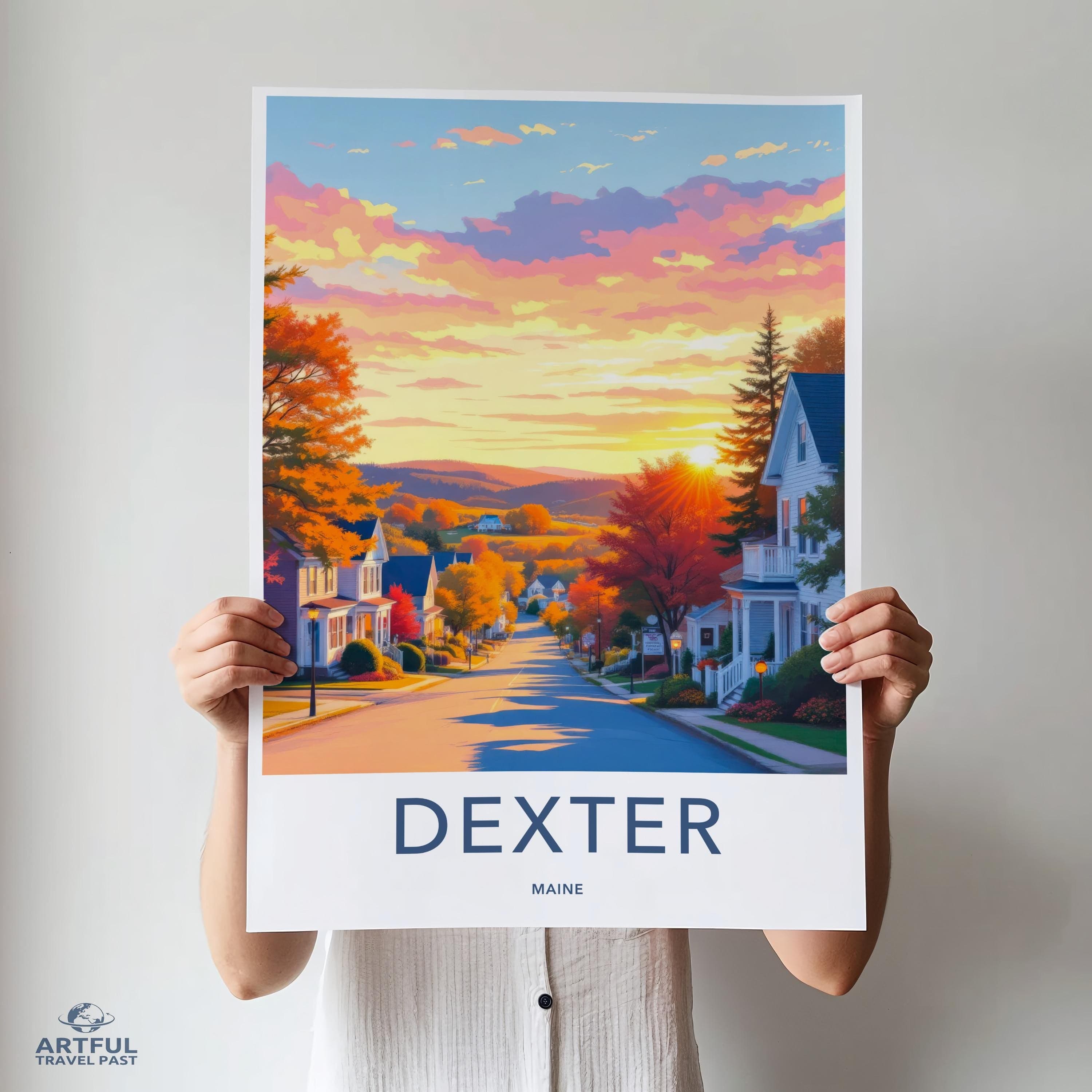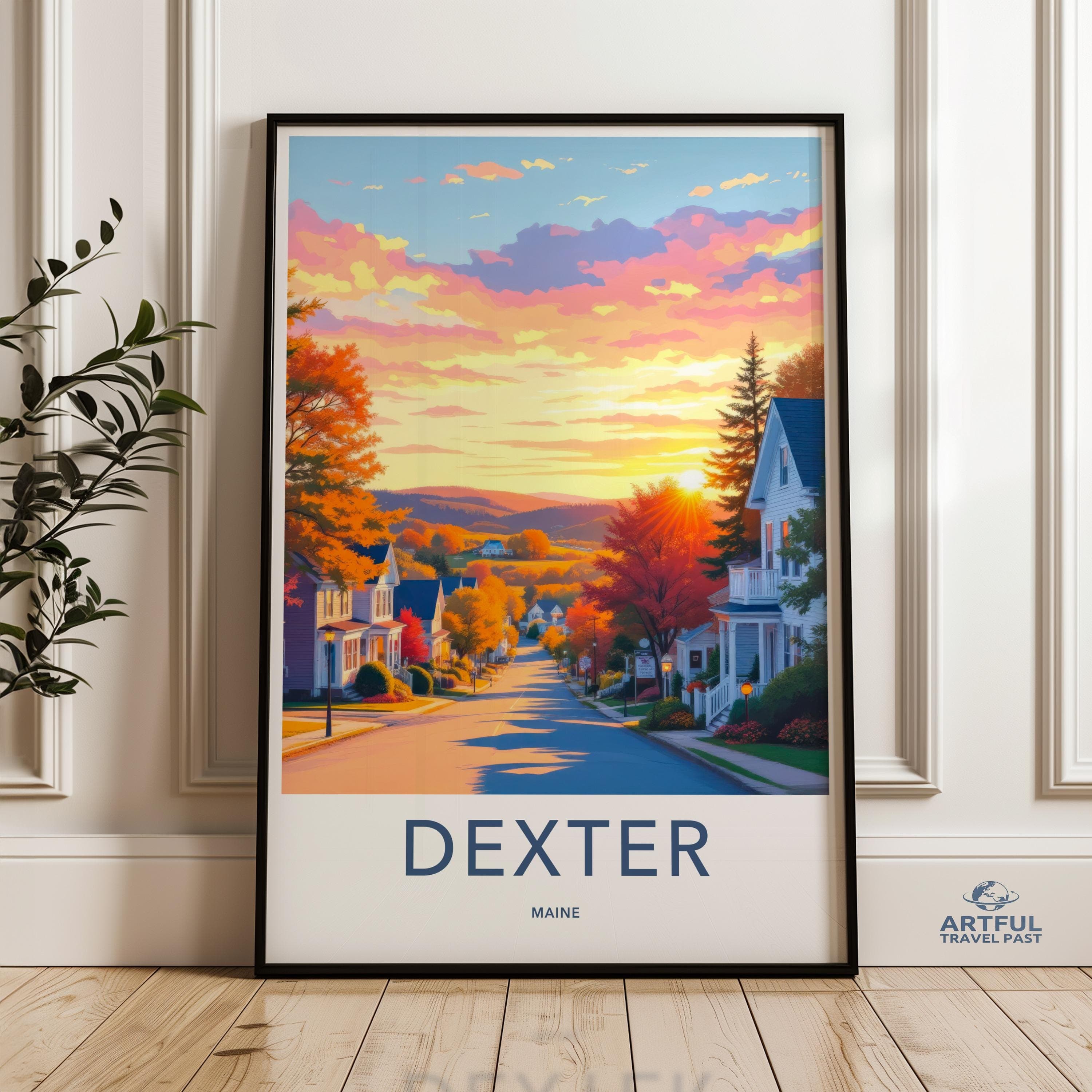 Discover the charming beauty of Dexter, Maine, captured in this stunning wall art piece. Nestled in the heart of Maine, Dexter is a picturesque town known for its tranquil streets and historic New England architecture. Established in 1816, this delightful town offers a serene escape with breathtaking sunsets, vibrant fall foliage, and cozy, inviting homes. A perfect addition to your home decor, celebrating the enchanting allure of Dexter.