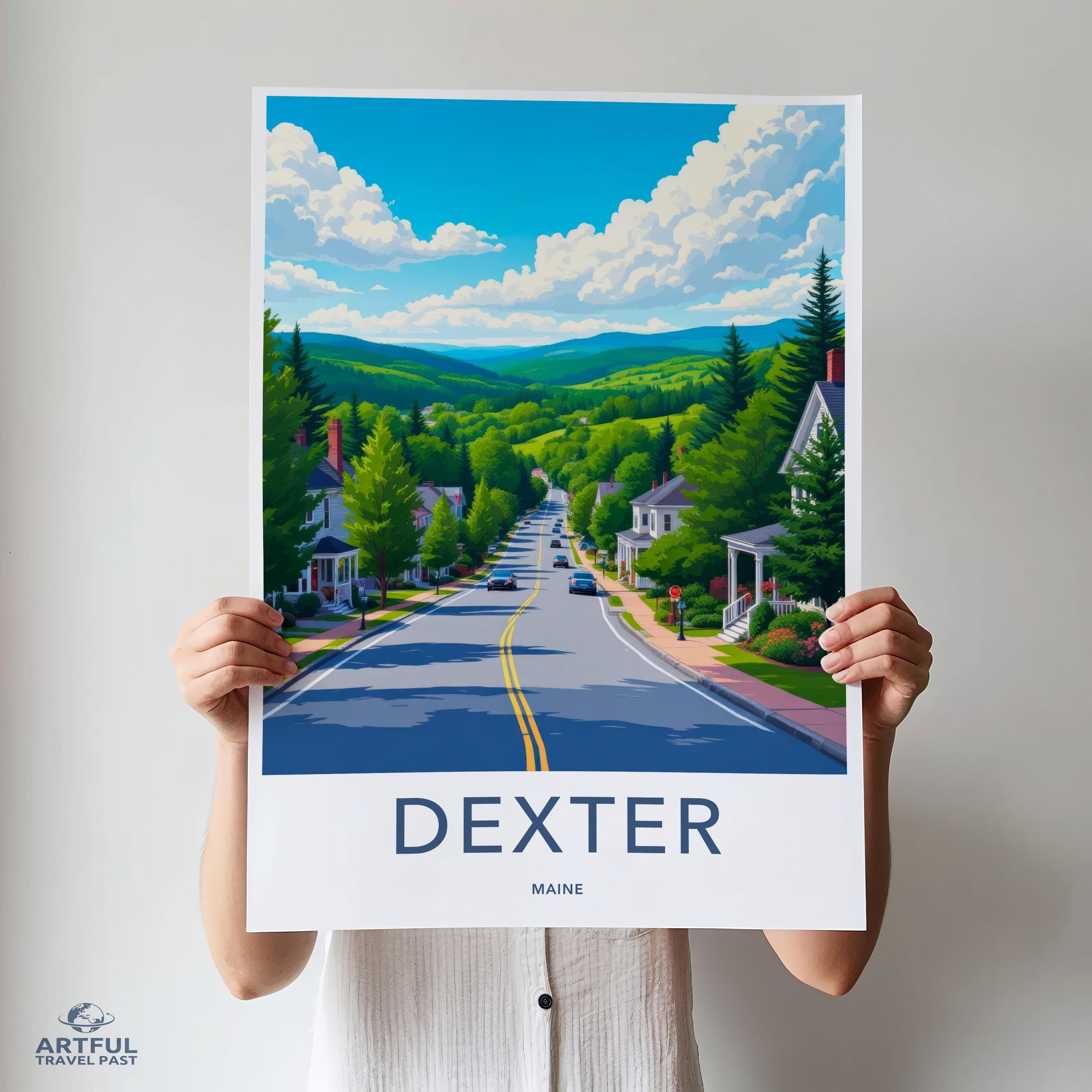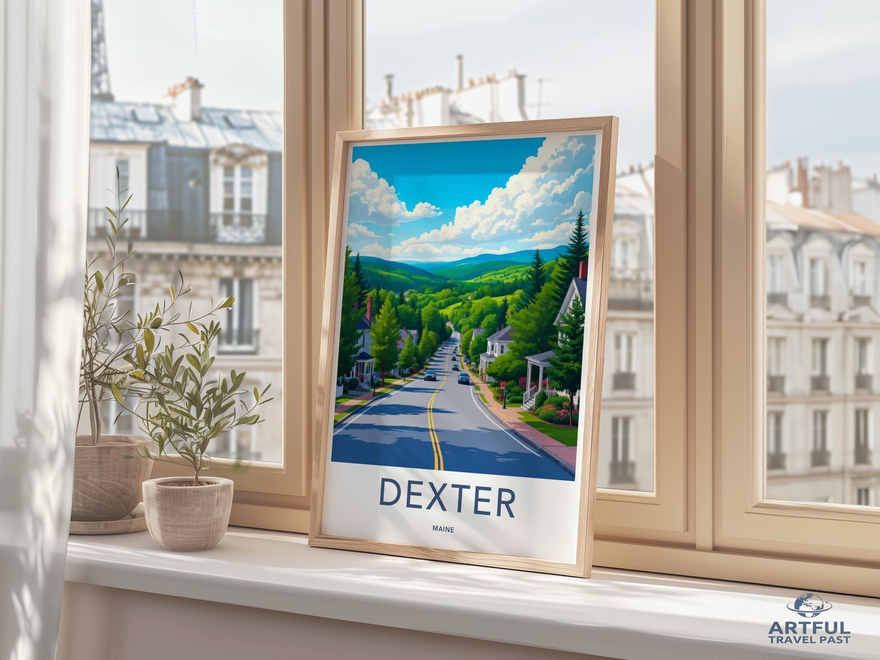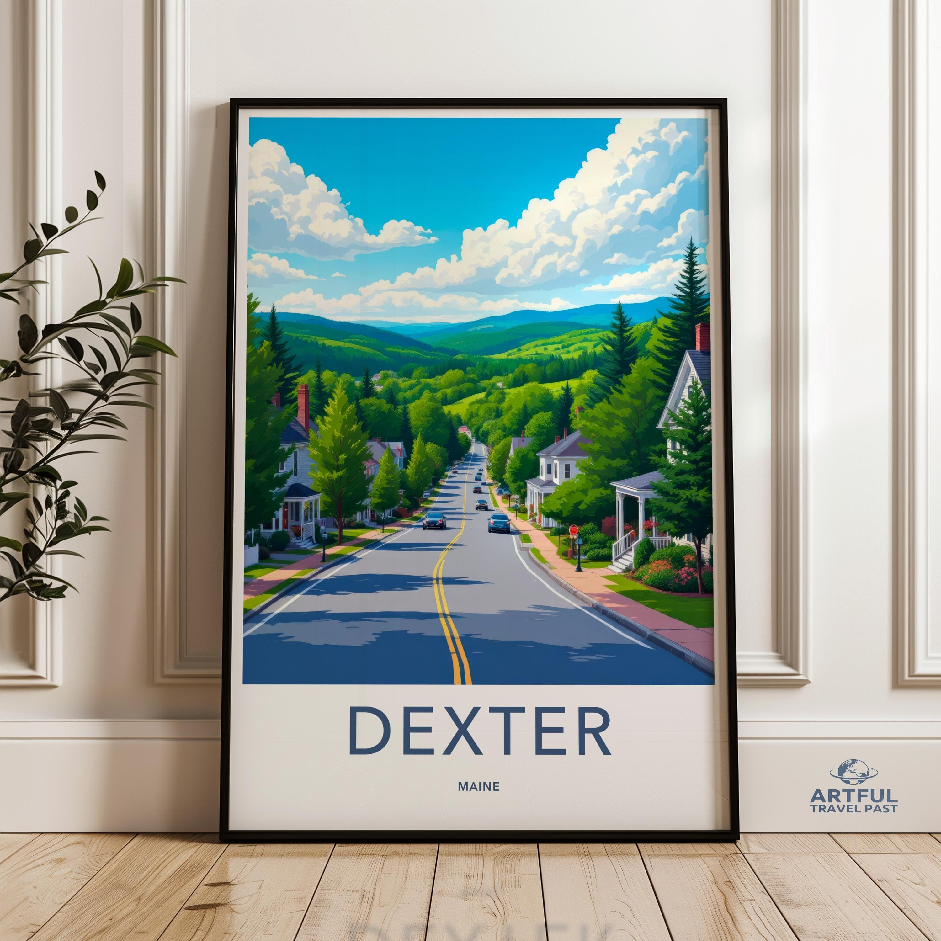 Discover the tranquil charm of Dexter, Maine with this captivating wall art. Nestled amidst lush greenery and rolling hills, Dexter boasts a picturesque downtown lined with classic New England architecture and scenic views. Known for its community spirit and annual festivals, this quaint town invites you to explore its rich history and natural beauty, making it a perfect addition to your home decor.