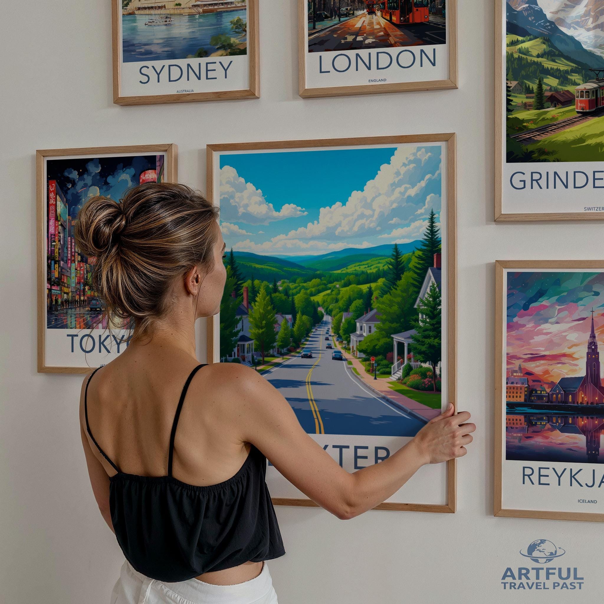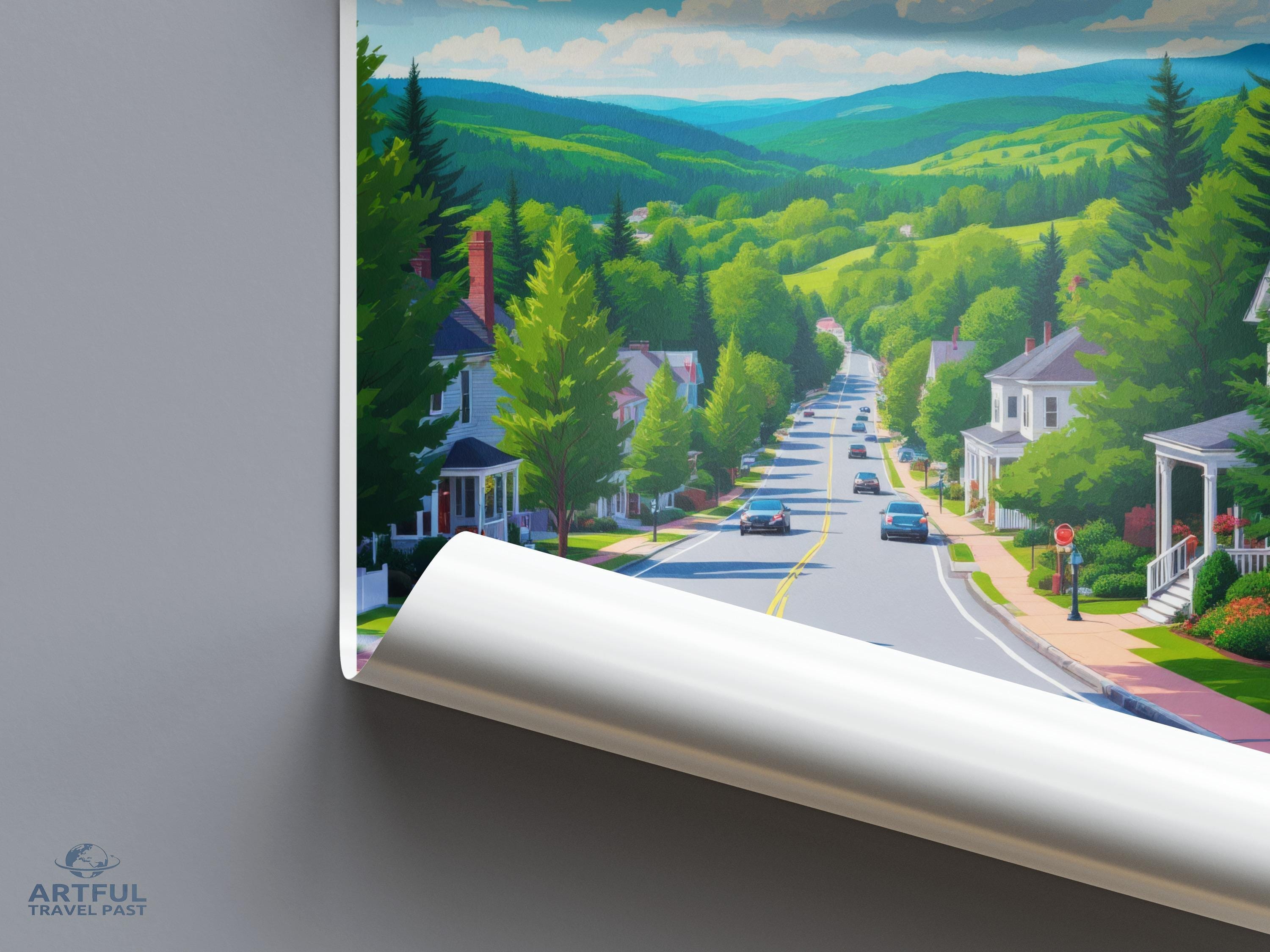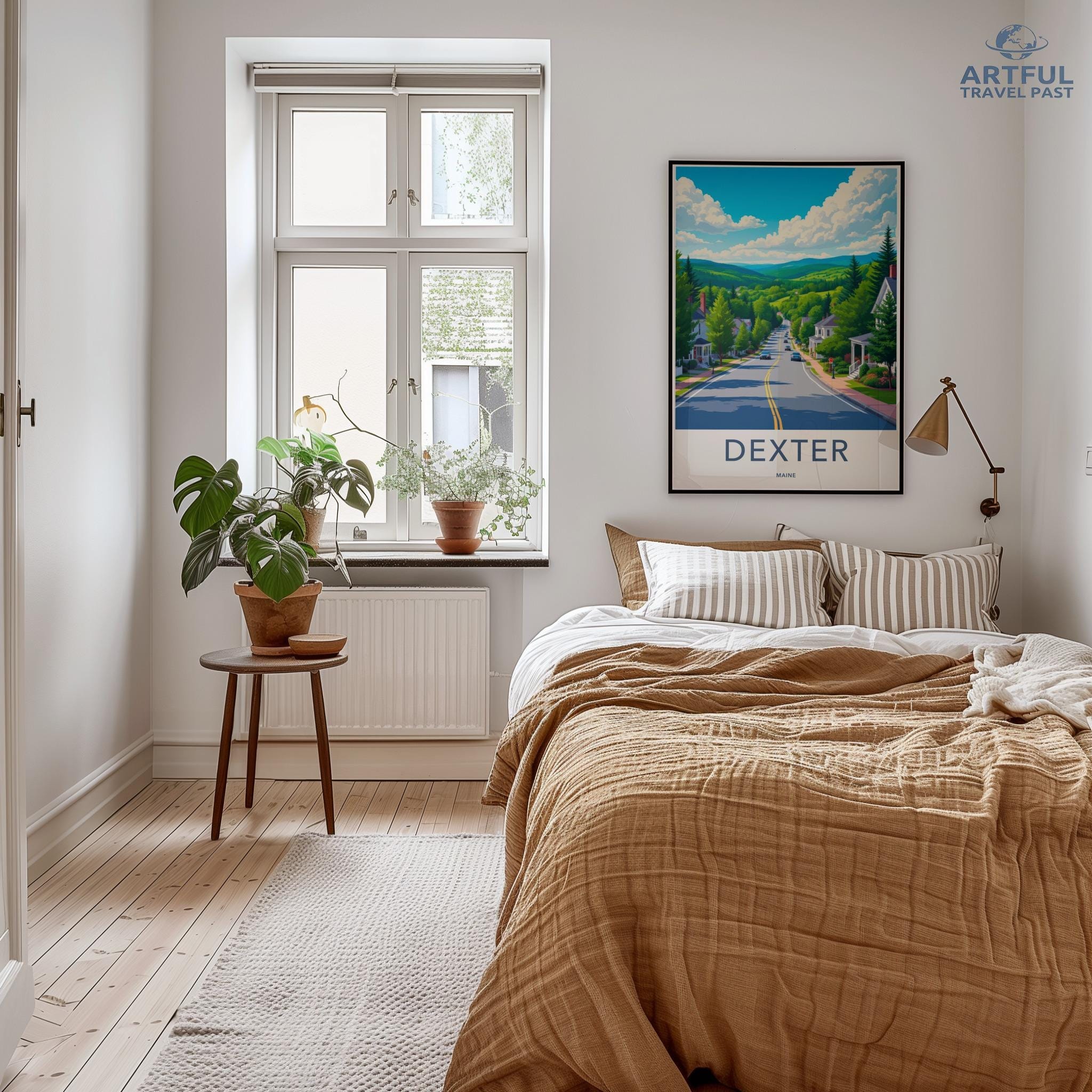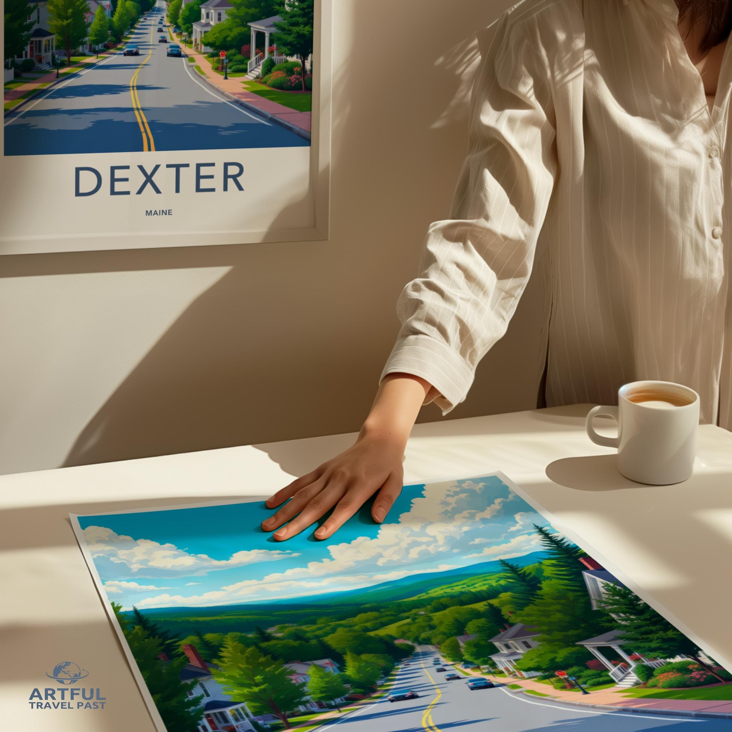 Discover the tranquil charm of Dexter, Maine with this captivating wall art. Nestled amidst lush greenery and rolling hills, Dexter boasts a picturesque downtown lined with classic New England architecture and scenic views. Known for its community spirit and annual festivals, this quaint town invites you to explore its rich history and natural beauty, making it a perfect addition to your home decor.