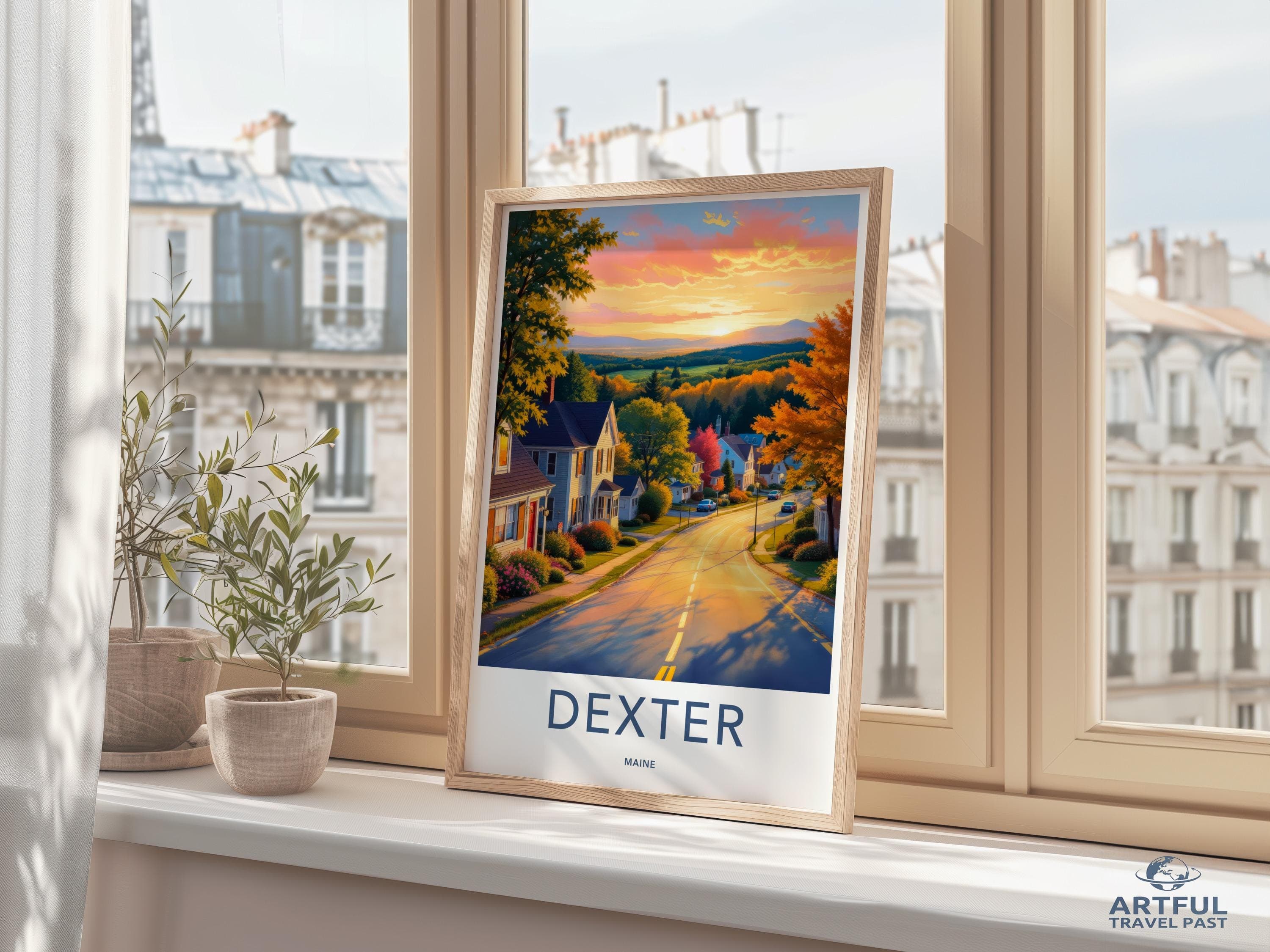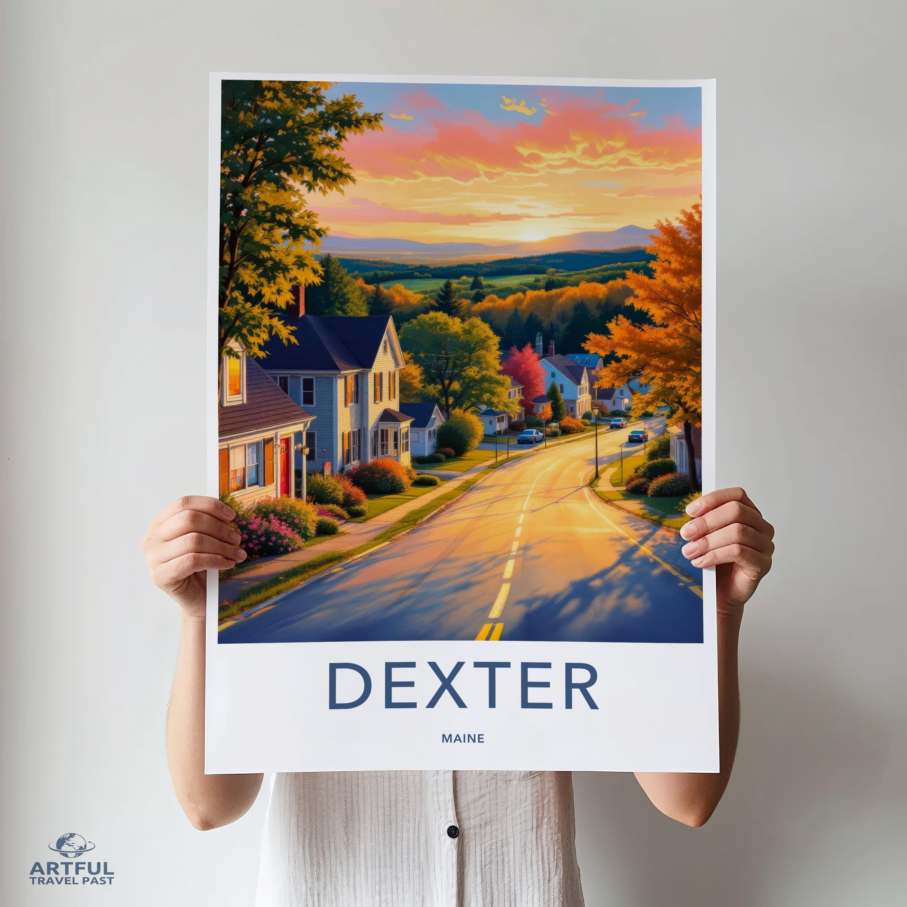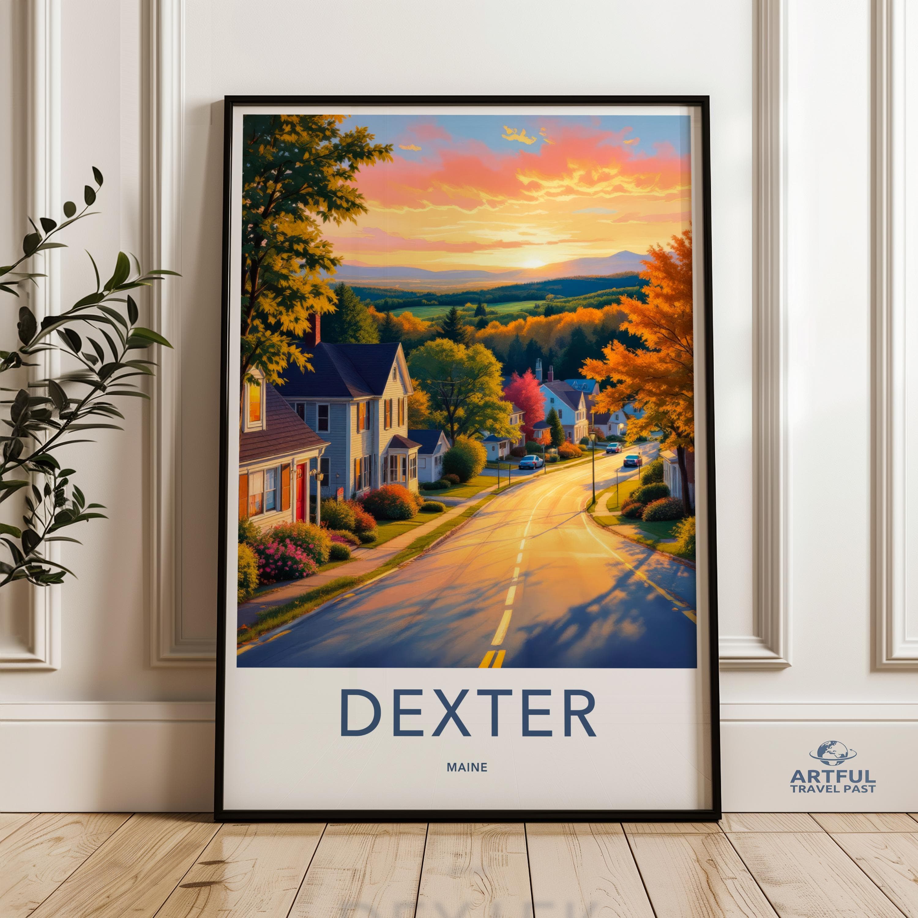 Capture the essence of Dexter, Maine with this stunning wall art piece. Nestled in the heart of New England, Dexter boasts picturesque streets lined with charming homes and vibrant foliage, especially enchanting during autumn. Founded in the early 19th century, this quaint town is known for its rich history and welcoming community. The beautiful landscapes and serene ambiance make Dexter an ideal representation of small-town Americana.