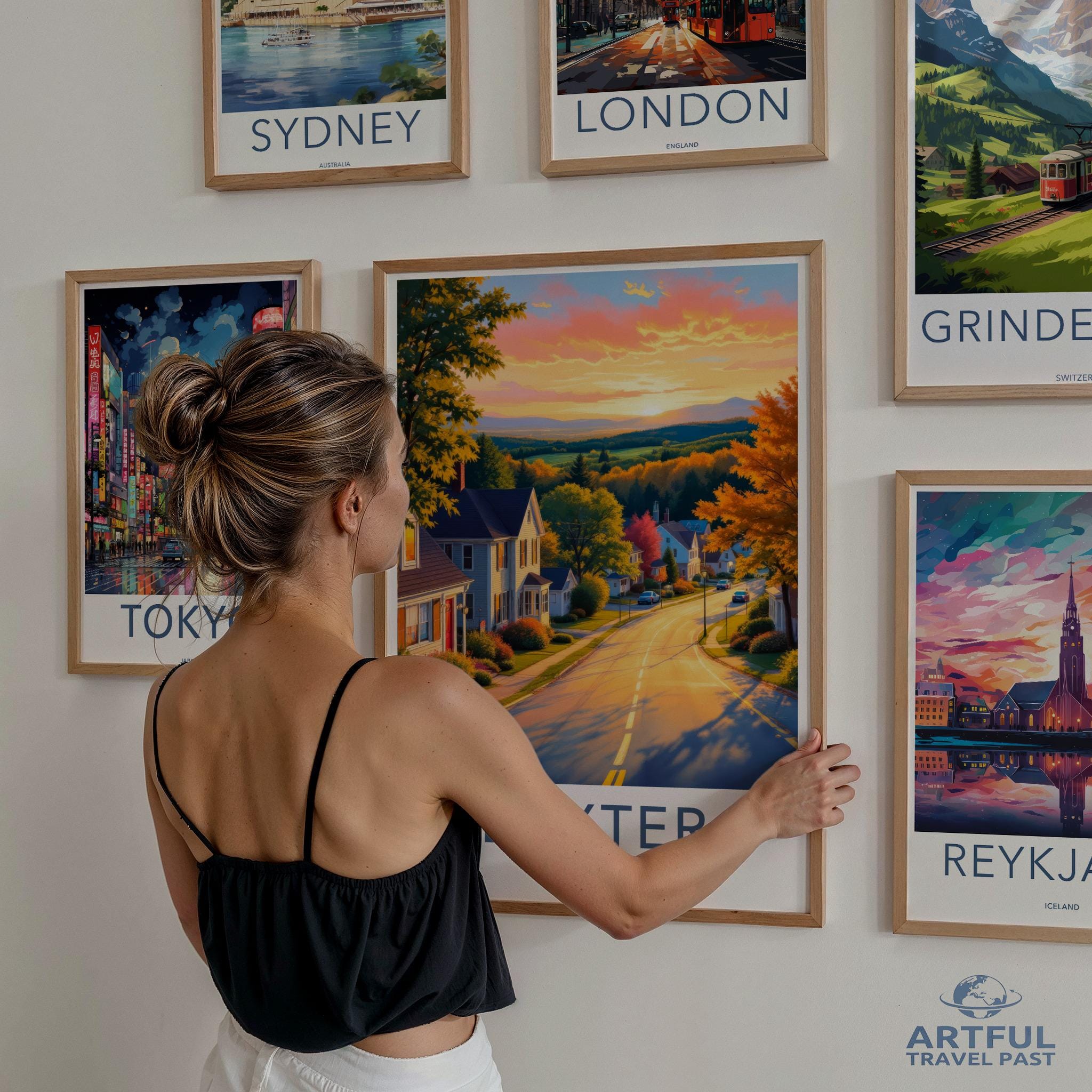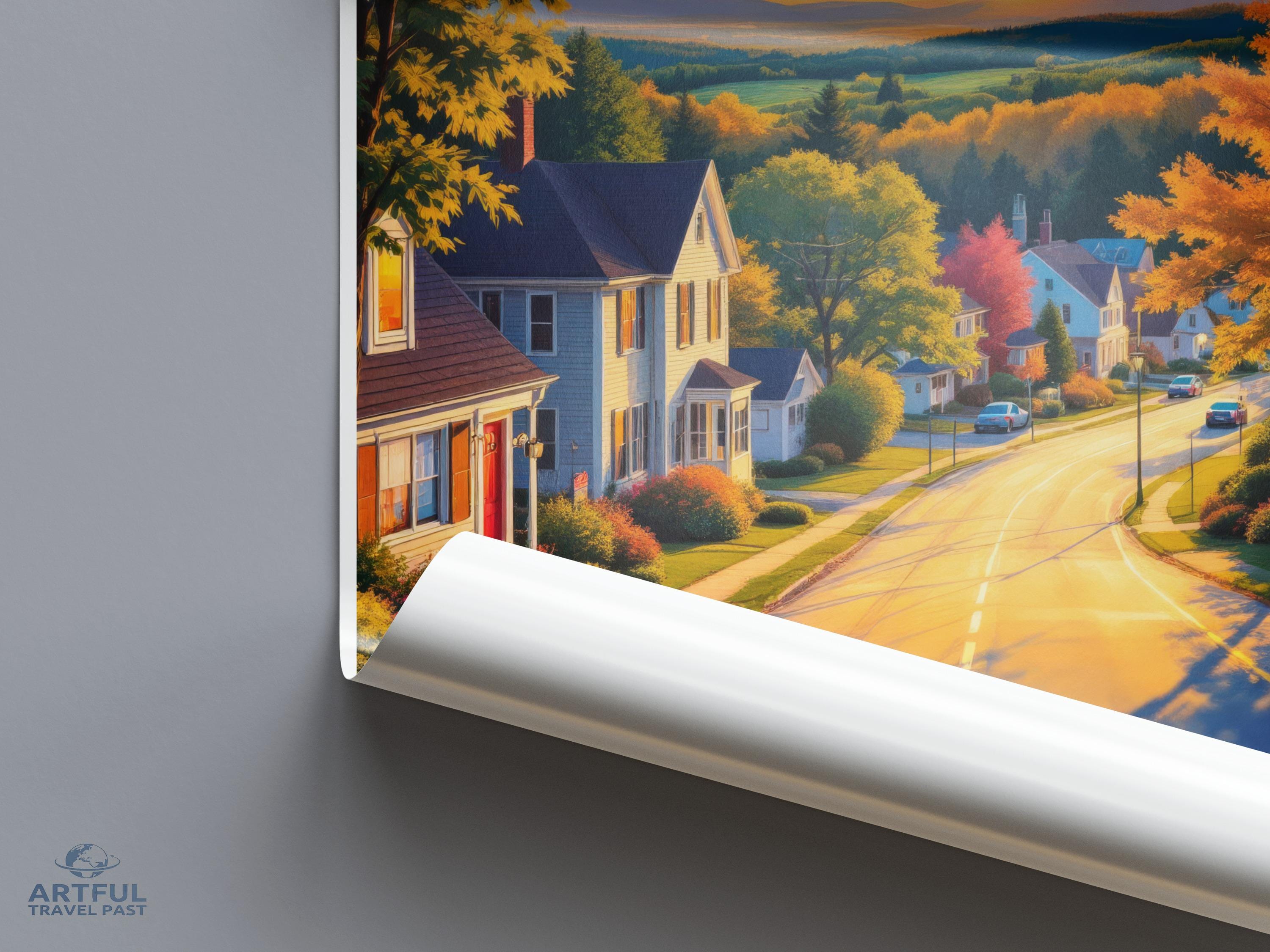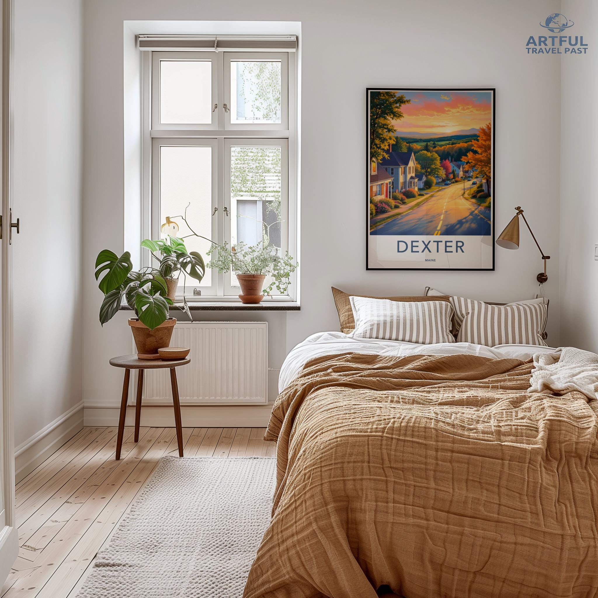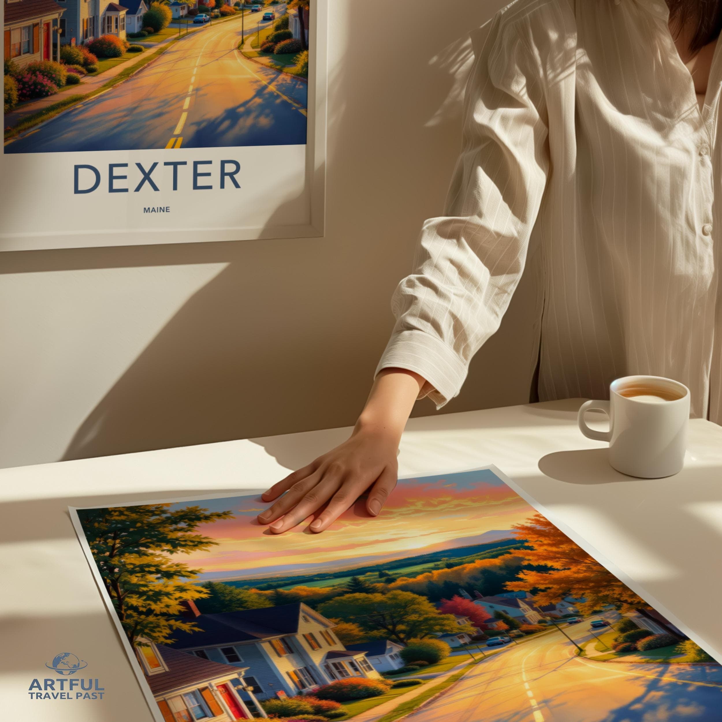 Capture the essence of Dexter, Maine with this stunning wall art piece. Nestled in the heart of New England, Dexter boasts picturesque streets lined with charming homes and vibrant foliage, especially enchanting during autumn. Founded in the early 19th century, this quaint town is known for its rich history and welcoming community. The beautiful landscapes and serene ambiance make Dexter an ideal representation of small-town Americana.