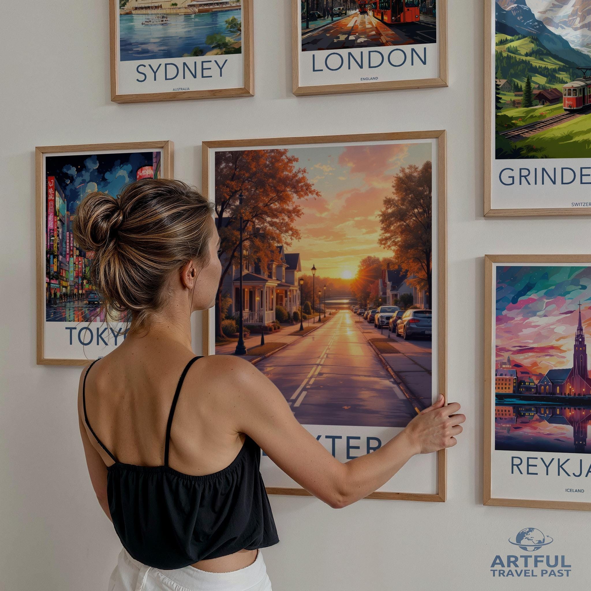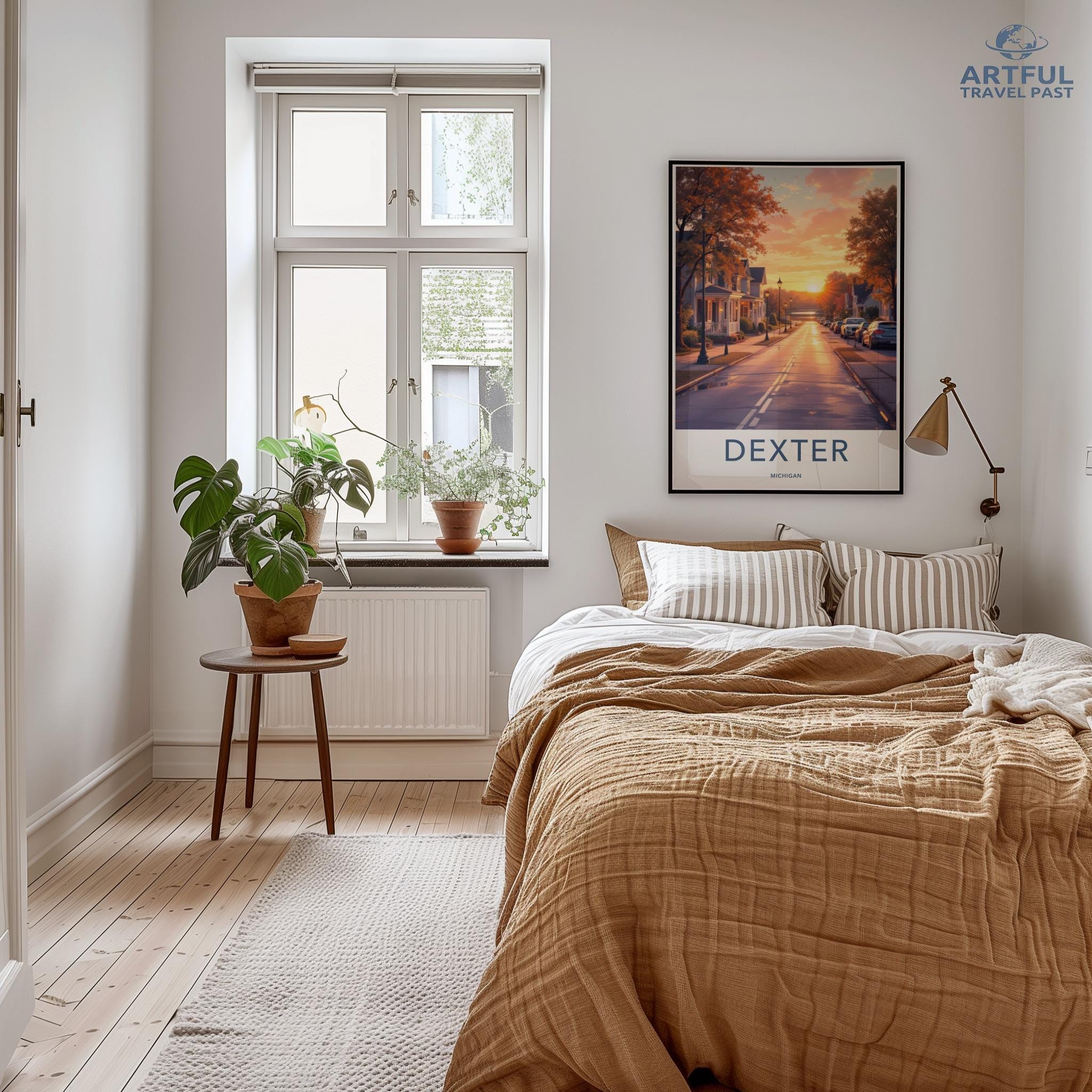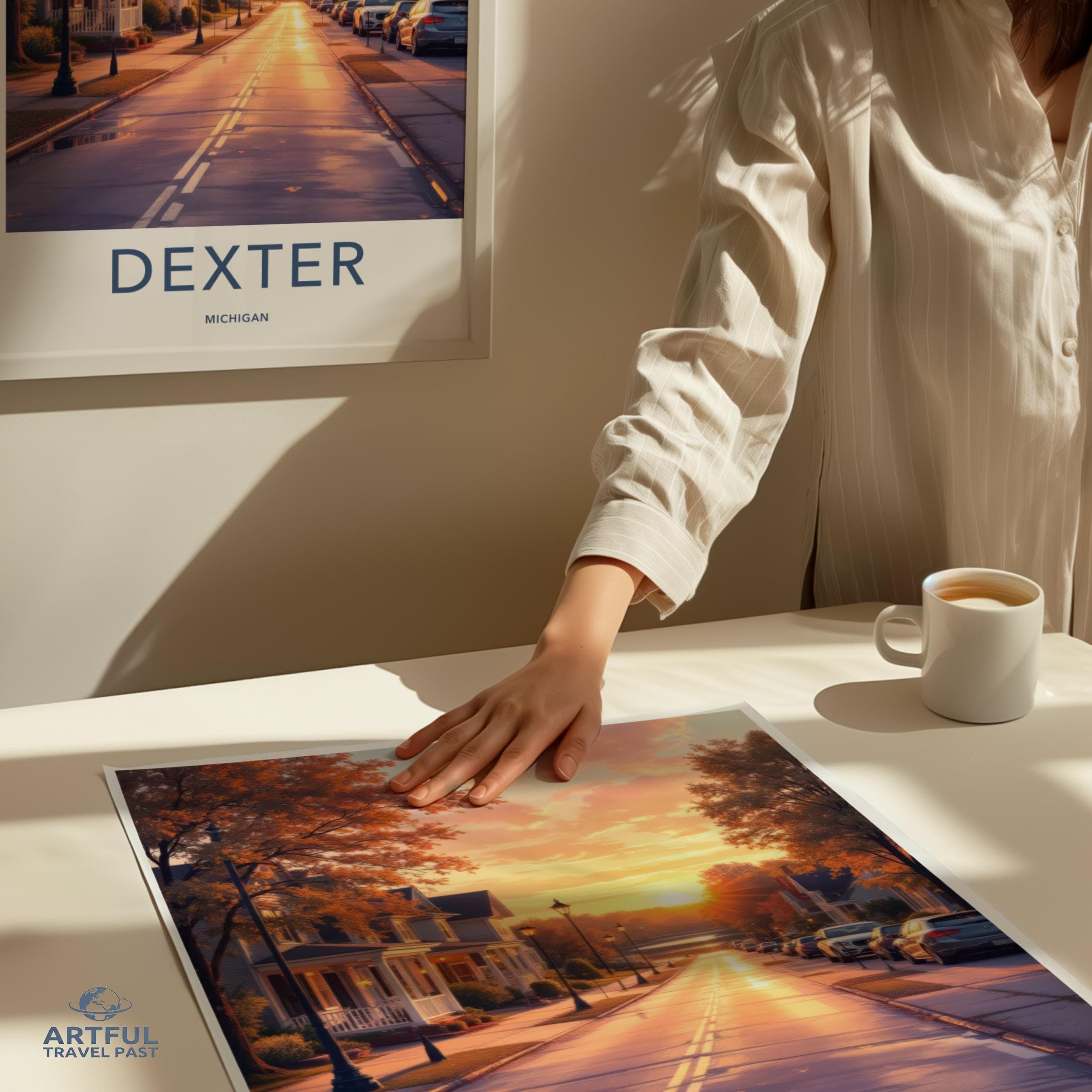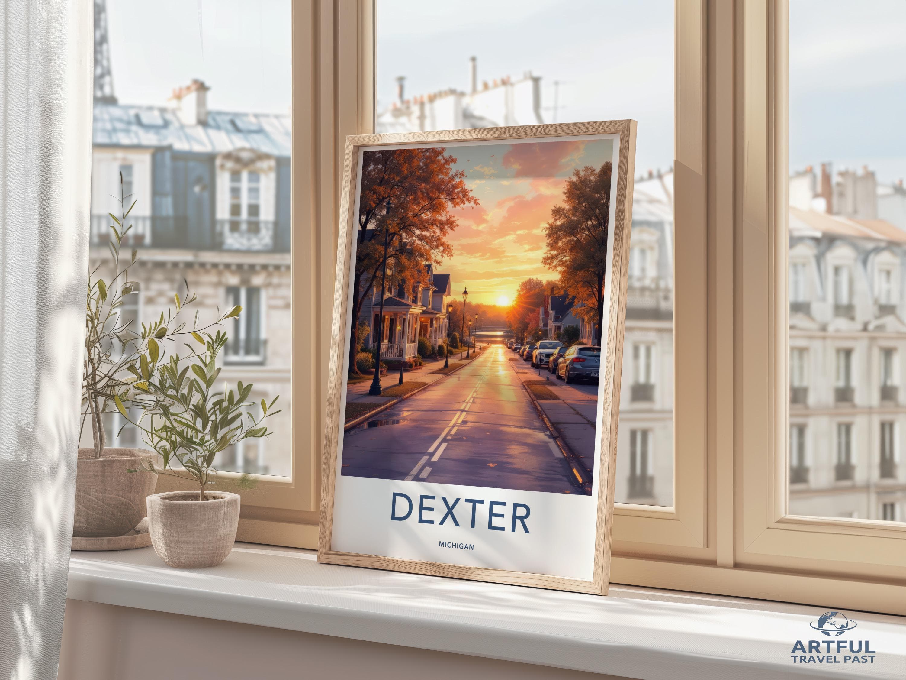 Capture the serene beauty of Dexter, Michigan with this stunning wall art! Nestled along the scenic Huron River, Dexter boasts charming historic architecture, cozy local shops, and tree-lined streets, especially vibrant in autumn. With roots tracing back to the early 19th century, Dexter combines rich history with picturesque landscapes, making it a perfect representation of small-town America. This piece brings warm, nostalgic vibes to any space.