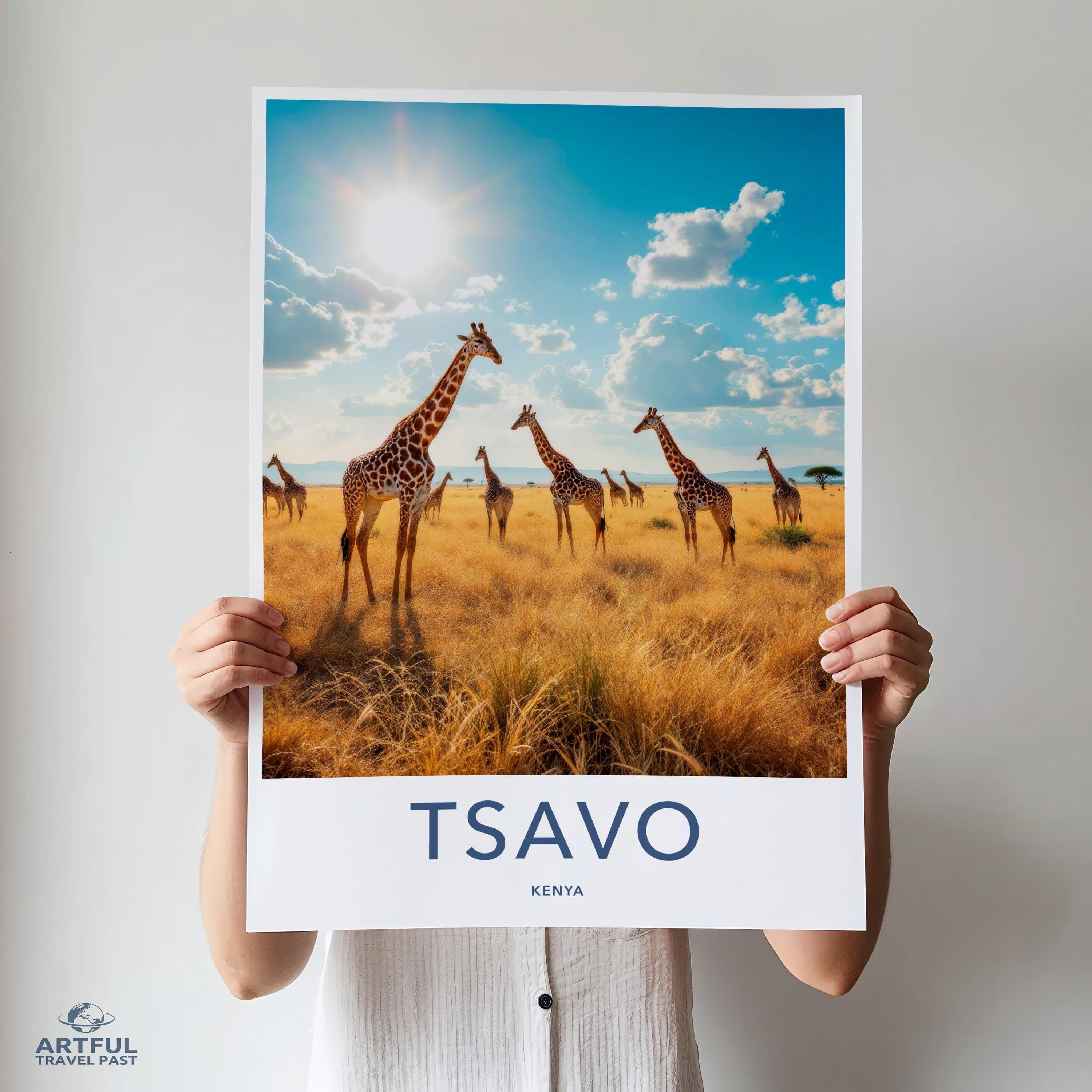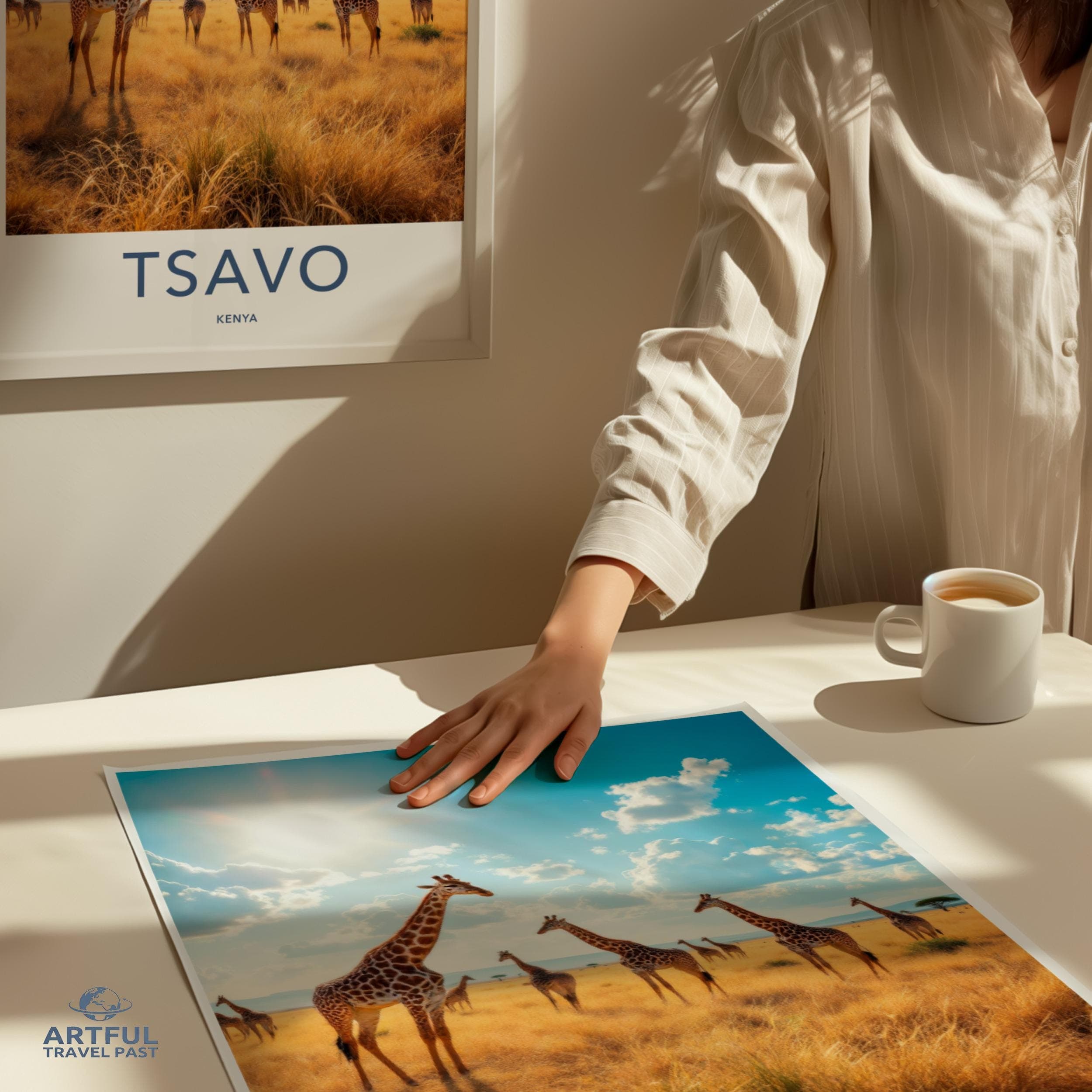 Capture the wild beauty of Tsavo, Kenya with this stunning wall art, featuring majestic giraffes against a breathtaking savannah. Home to one of the largest national parks in the world, Tsavo boasts diverse wildlife and sweeping landscapes. Its sun-drenched plains and vibrant skies create a sense of adventure and serenity, making it a perfect piece for those who appreciate nature and exotic destinations.