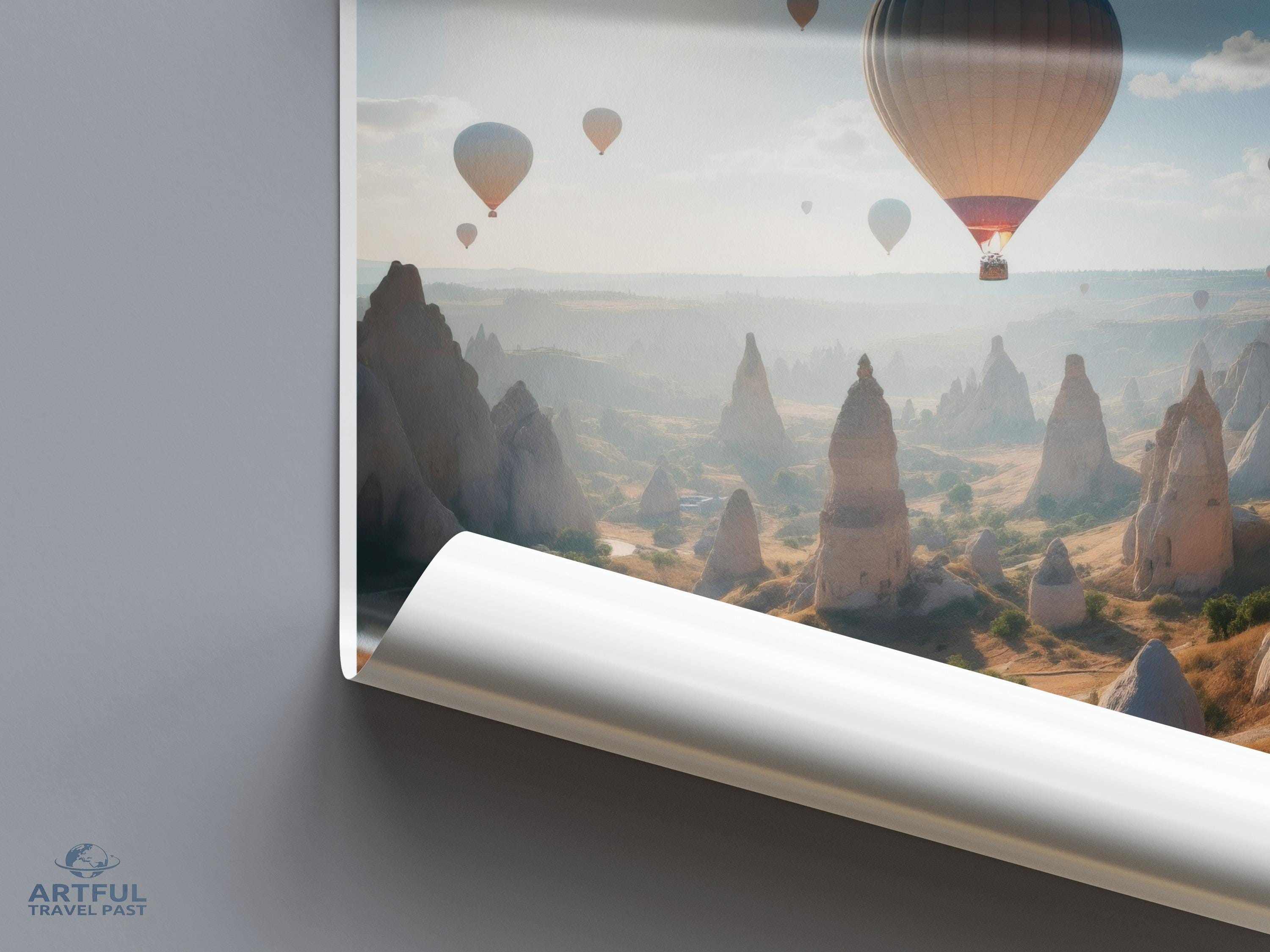 Transport yourself to the enchanting region of Cappadocia in Türkiye! Famous for its surreal landscape dotted with whimsical rock formations known as "fairy chimneys", this locale is steeped in history and natural beauty. Experience the breathtaking sight of hot air balloons drifting over ancient valleys and craggy cliffs at sunrise. Cappadocia’s unique geological, historic, and cultural features make it a truly magical destination worthy of any wall art collection.