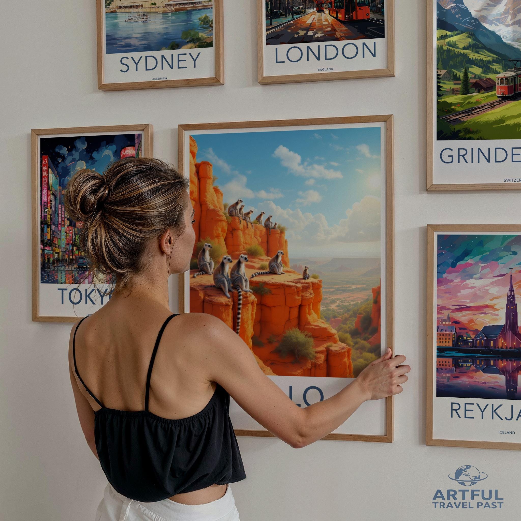 Experience the breathtaking beauty of Isalo National Park with this stunning wall art. Known for its dramatic sandstone formations, deep canyons, and lush oasis, Isalo is a haven for nature lovers. Located in Madagascar, this park offers a glimpse into the island’s unique ecosystem, home to the iconic ring-tailed lemurs. Originally a sacred burial ground for the Bara people, its mysterious allure adds to its captivating charm.