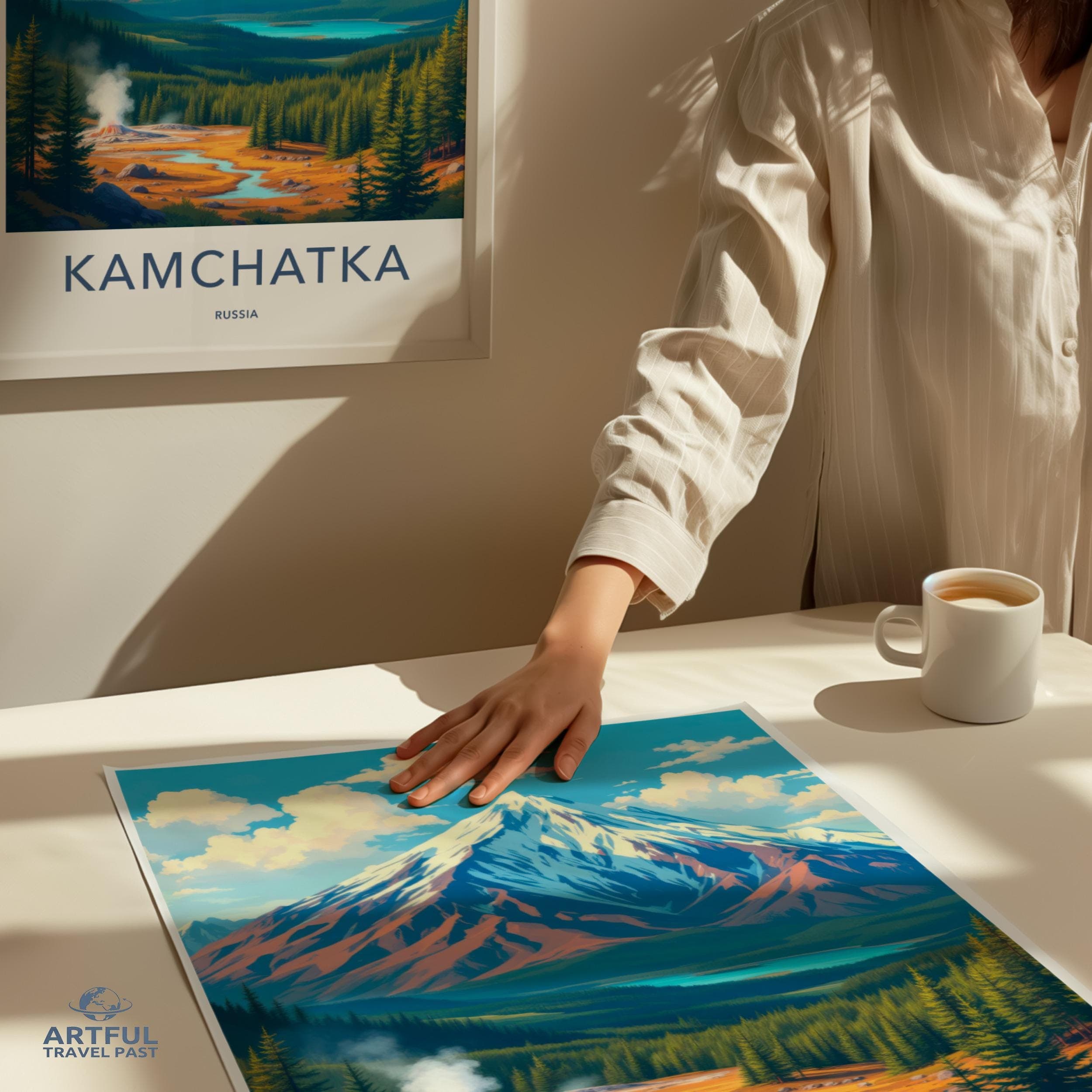 Immerse yourself in the breathtaking beauty of Kamchatka, Russia with this stunning wall art. Nestled in the Far East, Kamchatka is renowned for its dramatic landscapes, featuring majestic snow-capped volcanoes, lush forests, and vibrant geothermal springs. This remote peninsula is a land of untouched wilderness and awe-inspiring natural wonders, making it a perfect addition to any home or office decor. Experience the allure of Kamchatka every day with this enchanting piece.