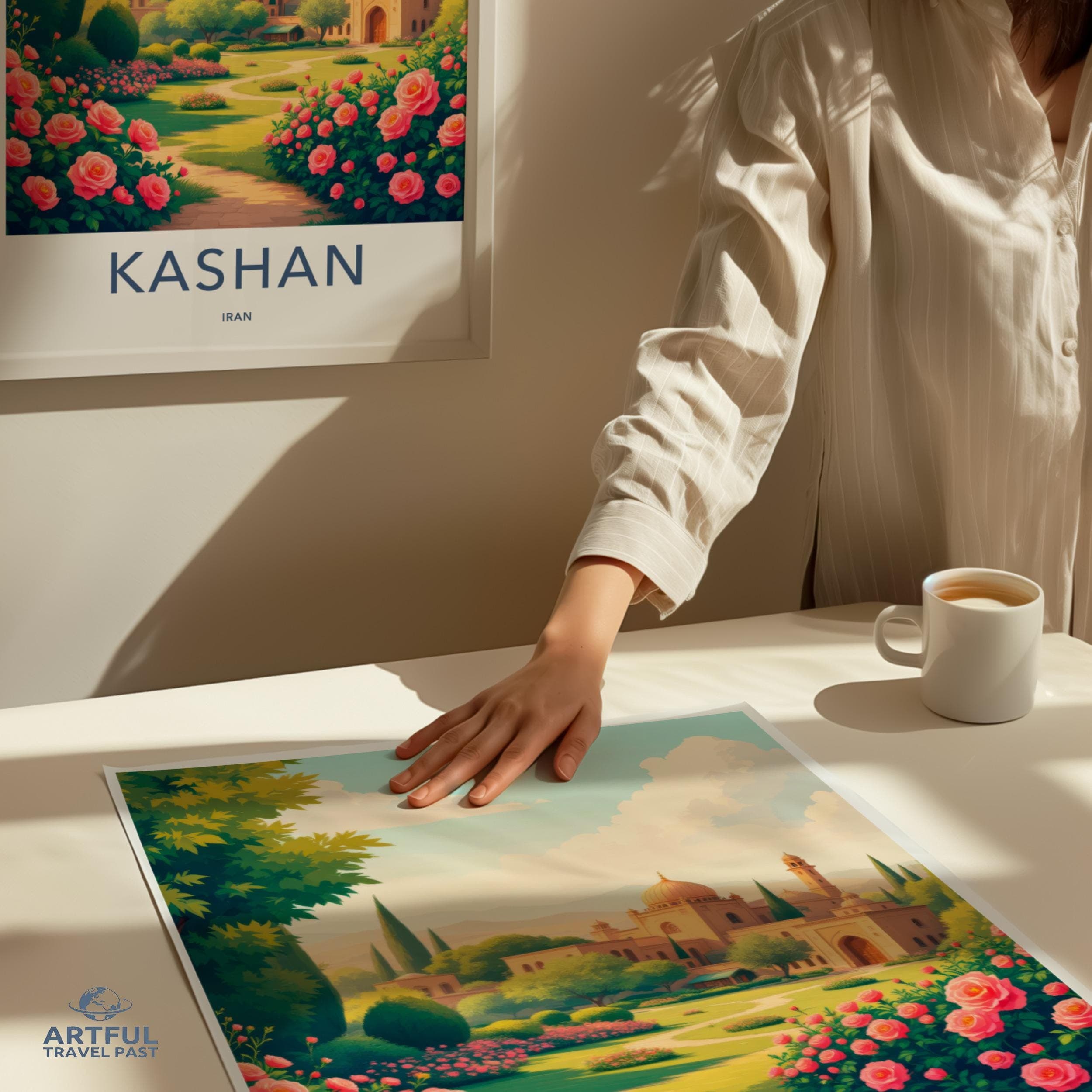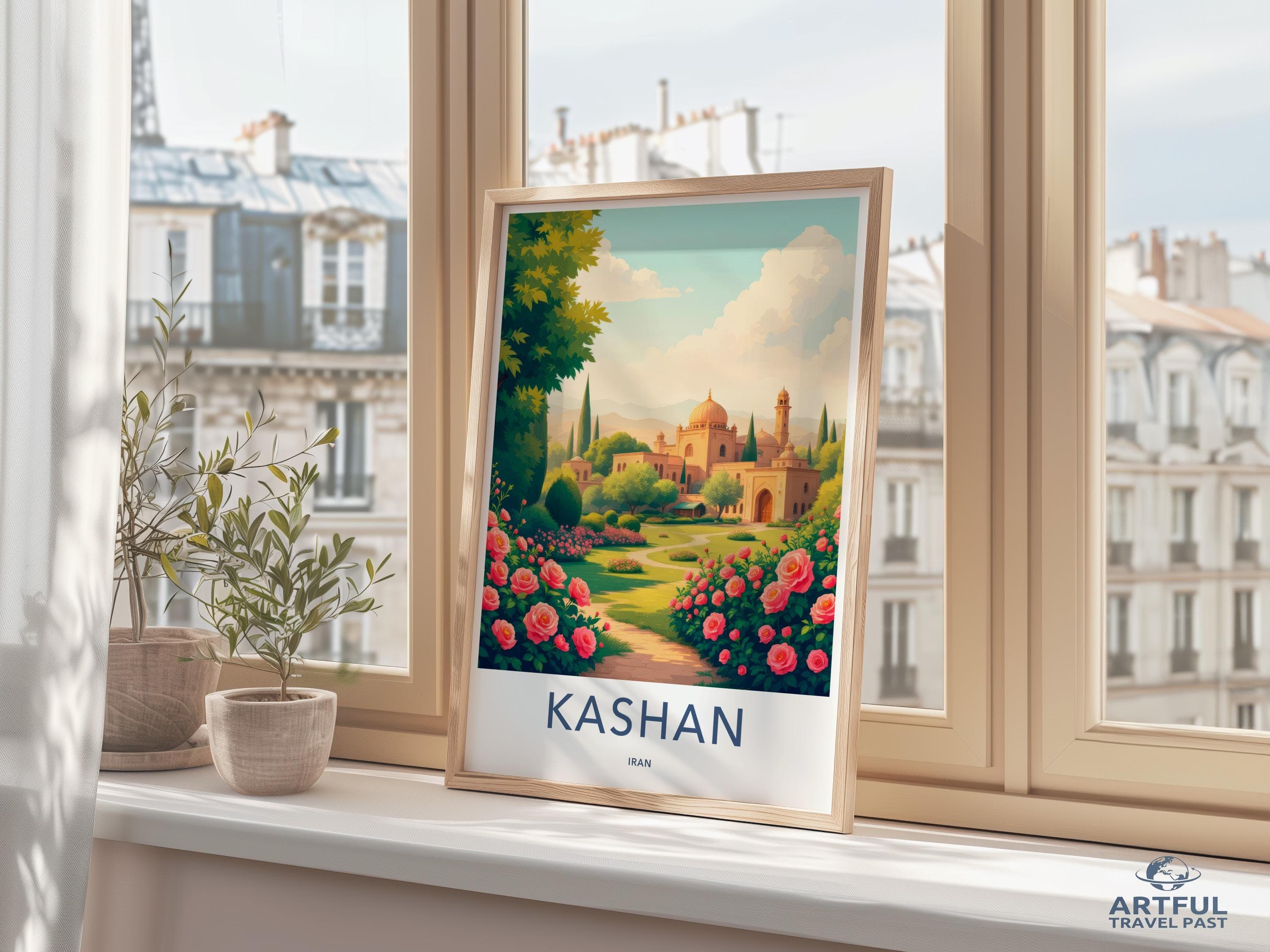 Kashan, Iran - Bring the allure of Kashan into your home with this exquisite wall art. Known for its mesmerizing Persian gardens, like the UNESCO-listed Fin Garden, Kashan offers a slice of paradise with its lush greenery, blooming roses, and historic architecture. The city's skyline is punctuated by charming domes and minarets, reflecting its rich cultural heritage and timeless beauty. Perfect for adding a touch of elegance and history to any space.