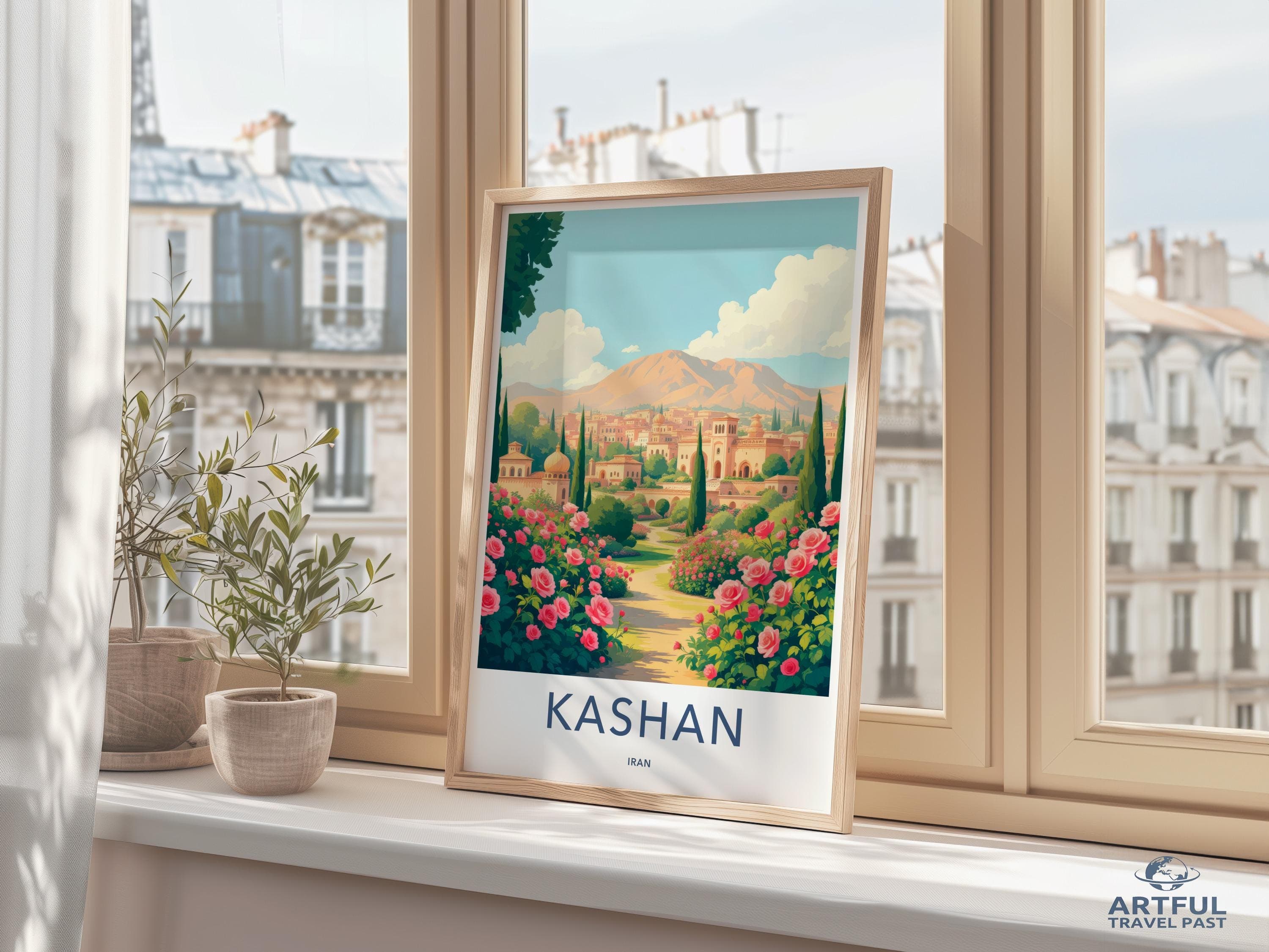 Transform your space with this stunning wall art featuring the charming cityscape of Kashan, Iran. Known for its rich history and vibrant architecture, Kashan is a jewel of traditional Persian culture. Wander through the serene Persian gardens, admire historical mansions, and marvel at the beauty of its rose-filled landscapes. This captivating artwork brings a touch of Kashan's timeless beauty and elegance to any room.