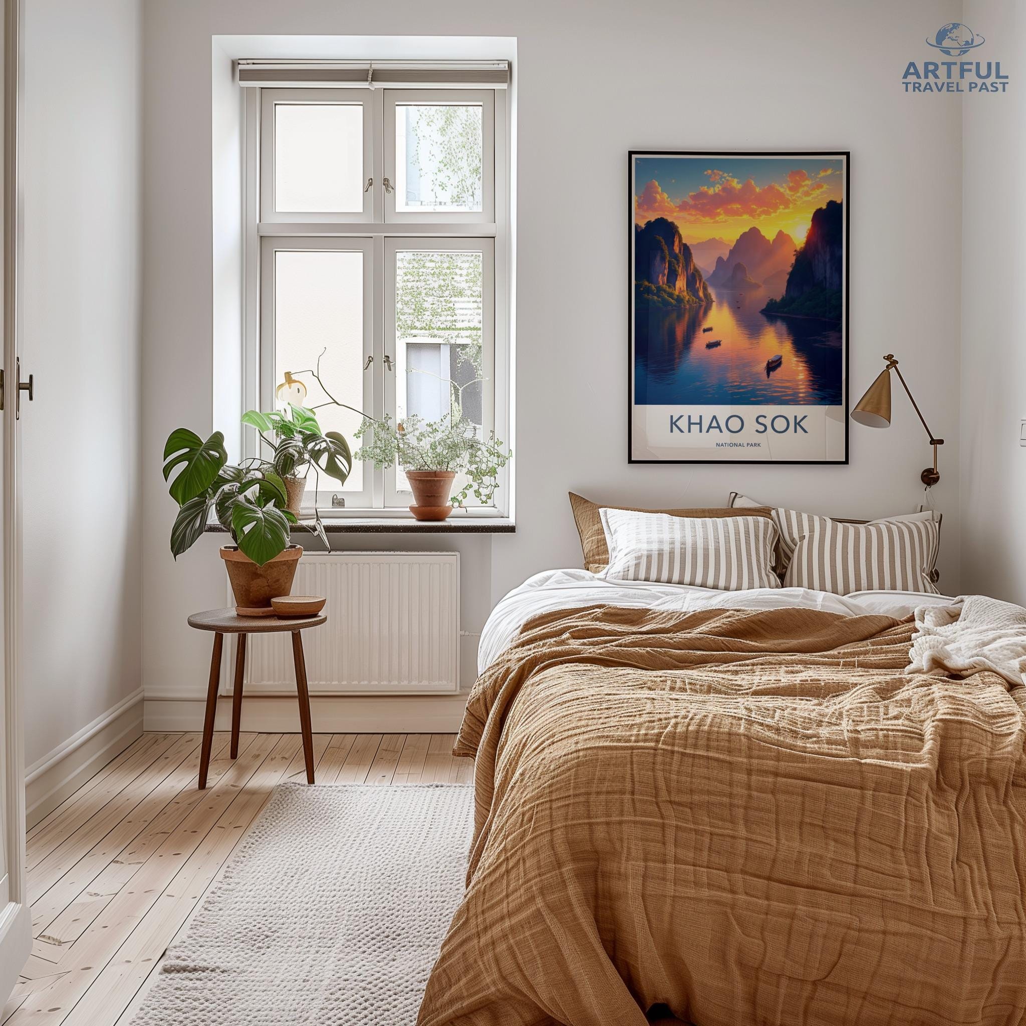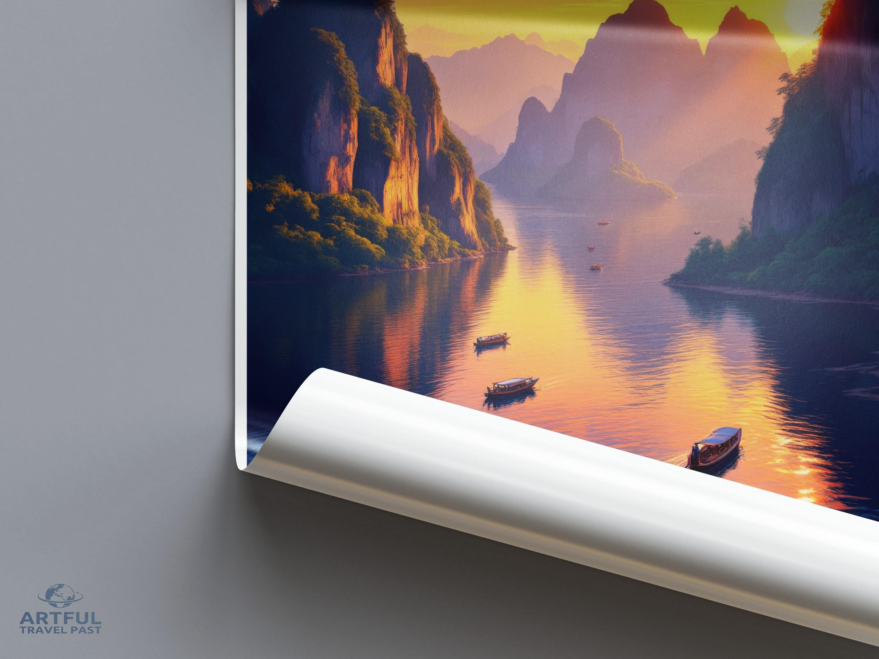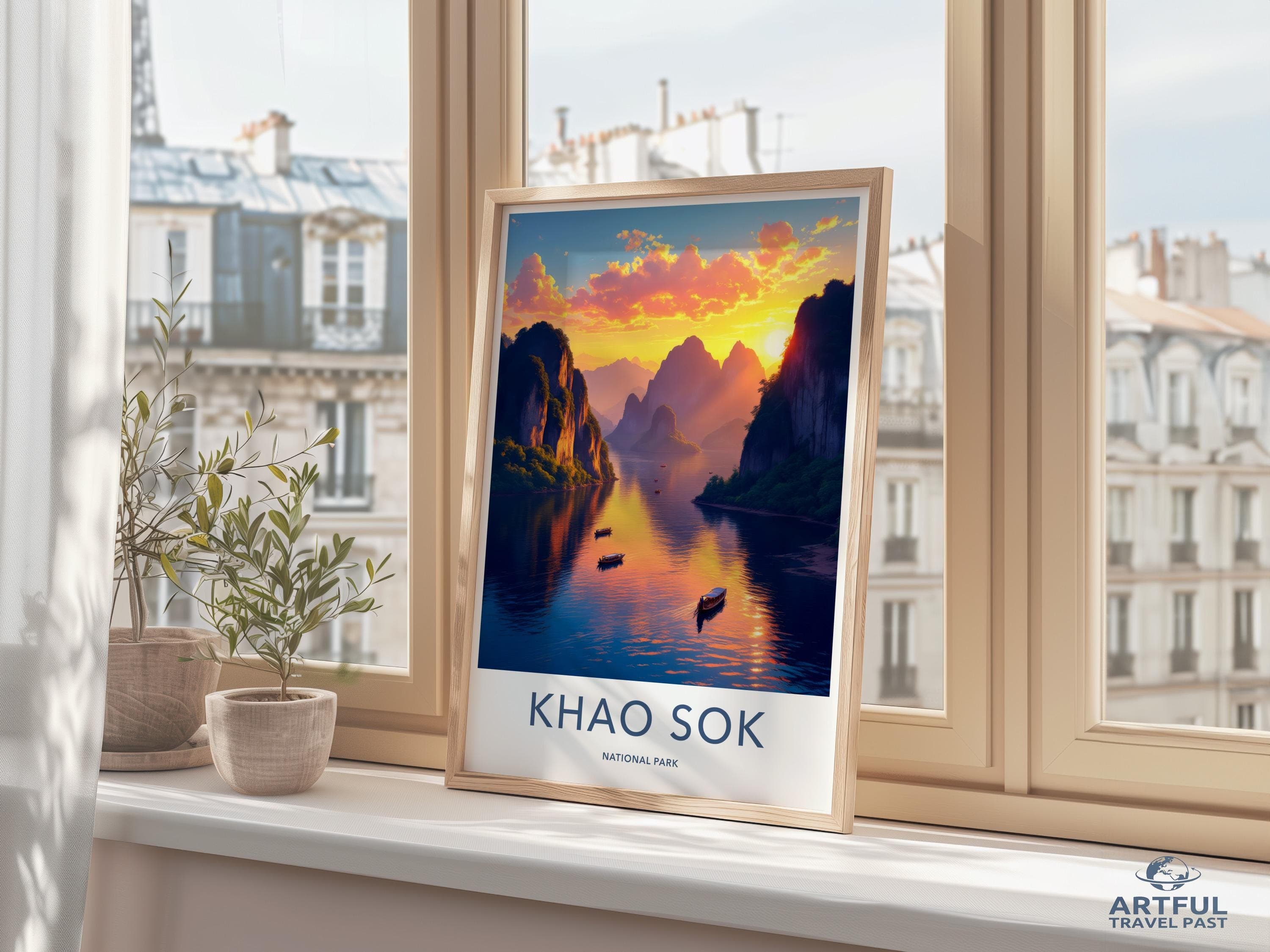 Khao Sok National Park wall art captures the breathtaking beauty of one of Thailand's most stunning landscapes. This remarkable park, adorned with towering limestone cliffs and vibrant jungle foliage, boasts ancient rainforest atmospheres dating back over 160 million years. Known for its serene lakes and exotic wildlife, Khao Sok is a paradise for nature enthusiasts and adventure seekers alike. Adorn your space with this vivid piece and bring the allure of Thailand's natural wonder into your home.