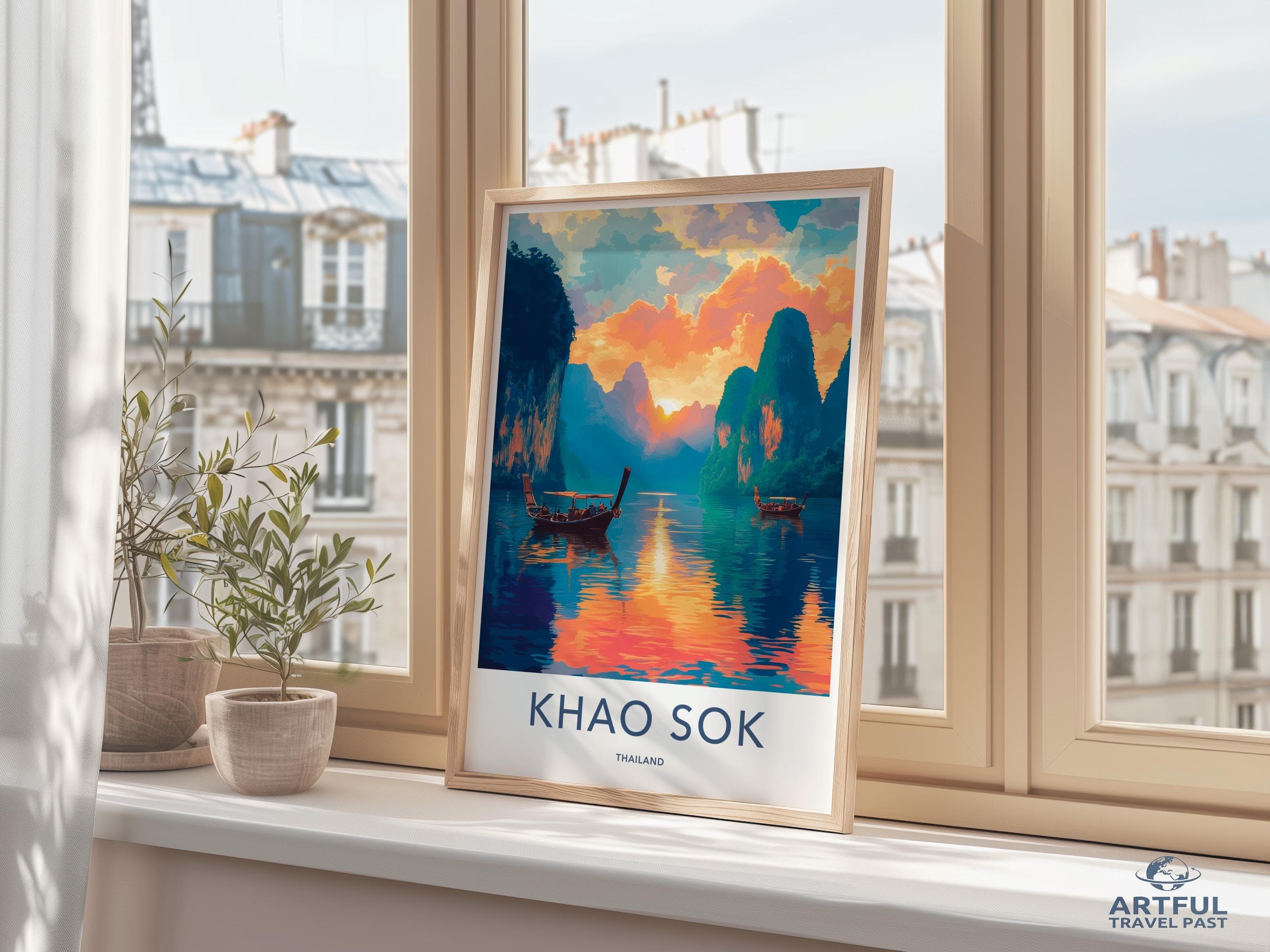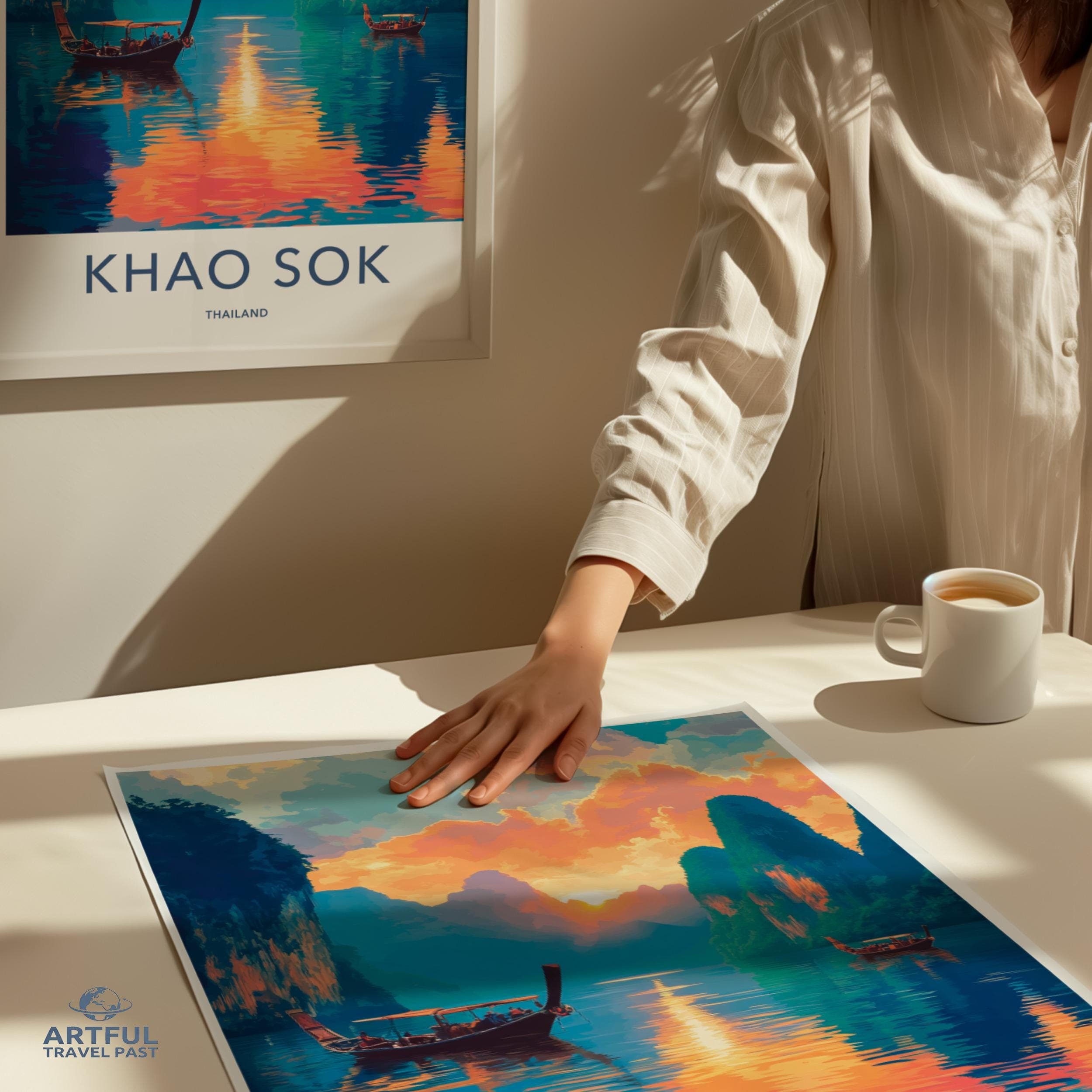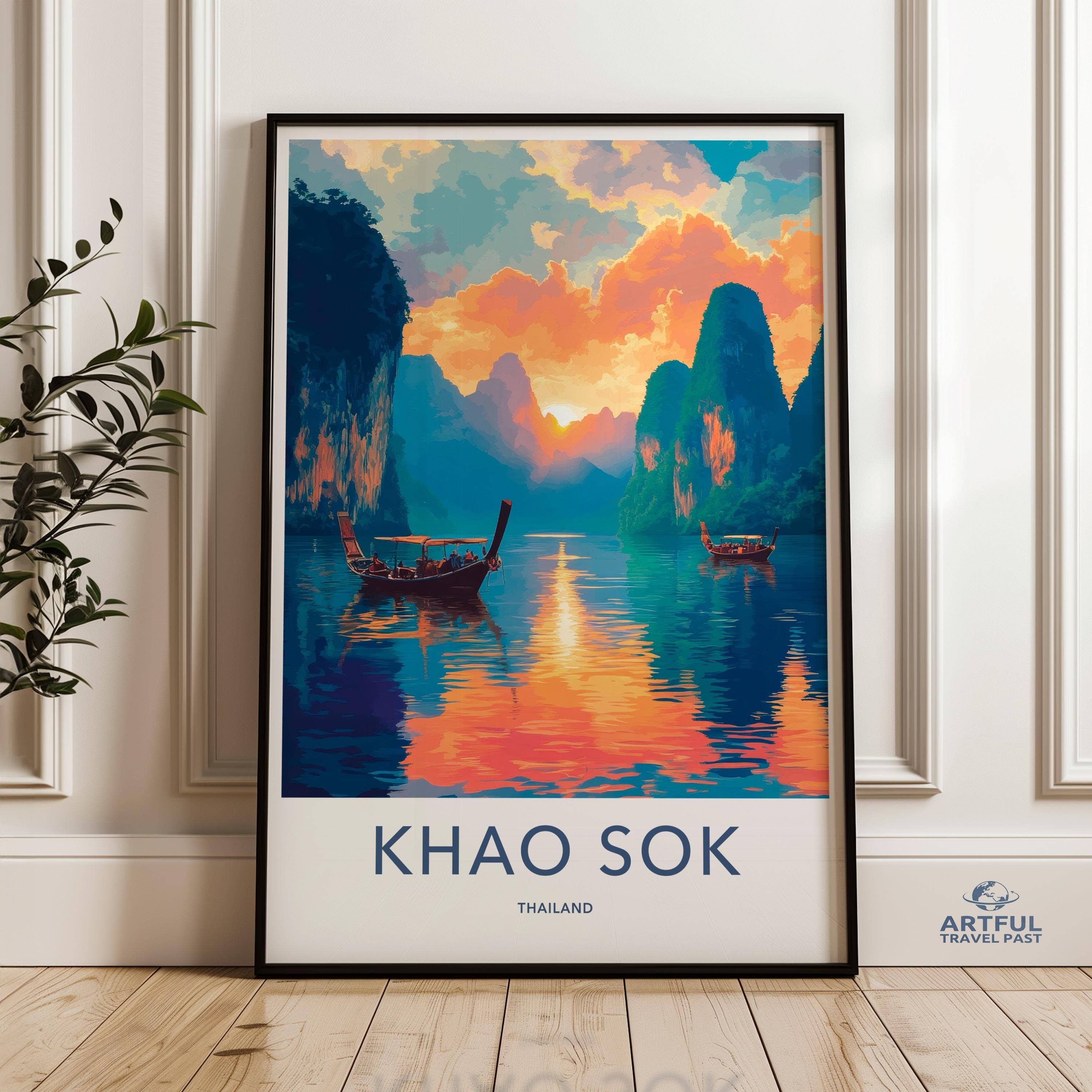 Immerse yourself in the breathtaking beauty of Khao Sok, Thailand, captured in this stunning wall art piece. Known for its lush rainforests, towering limestone cliffs, and serene lakes, Khao Sok is a paradise for nature lovers. Established as a national park in 1980, it boasts one of the world's oldest rainforests, rich with exotic wildlife and vibrant flora. Let this artwork bring a touch of tropical enchantment to your space.