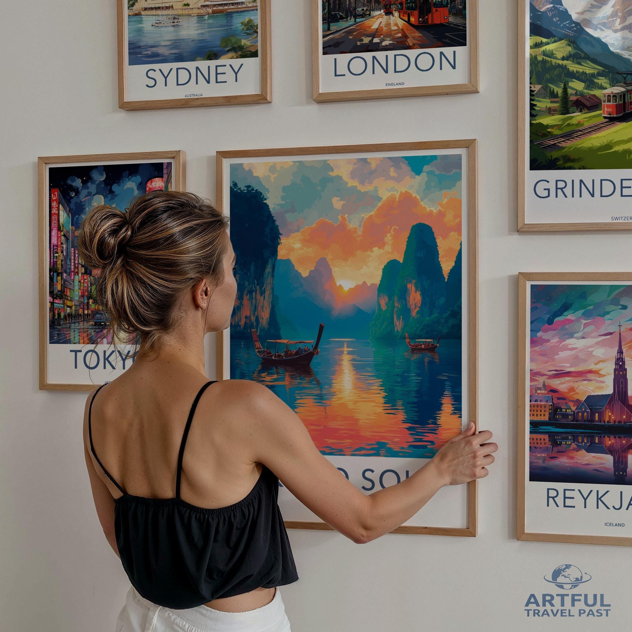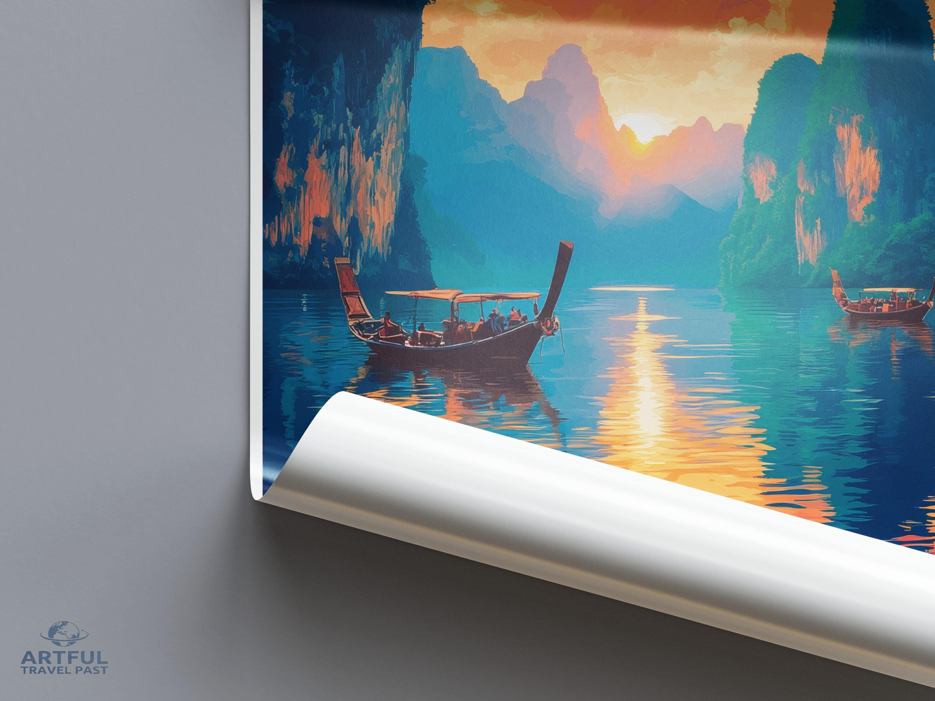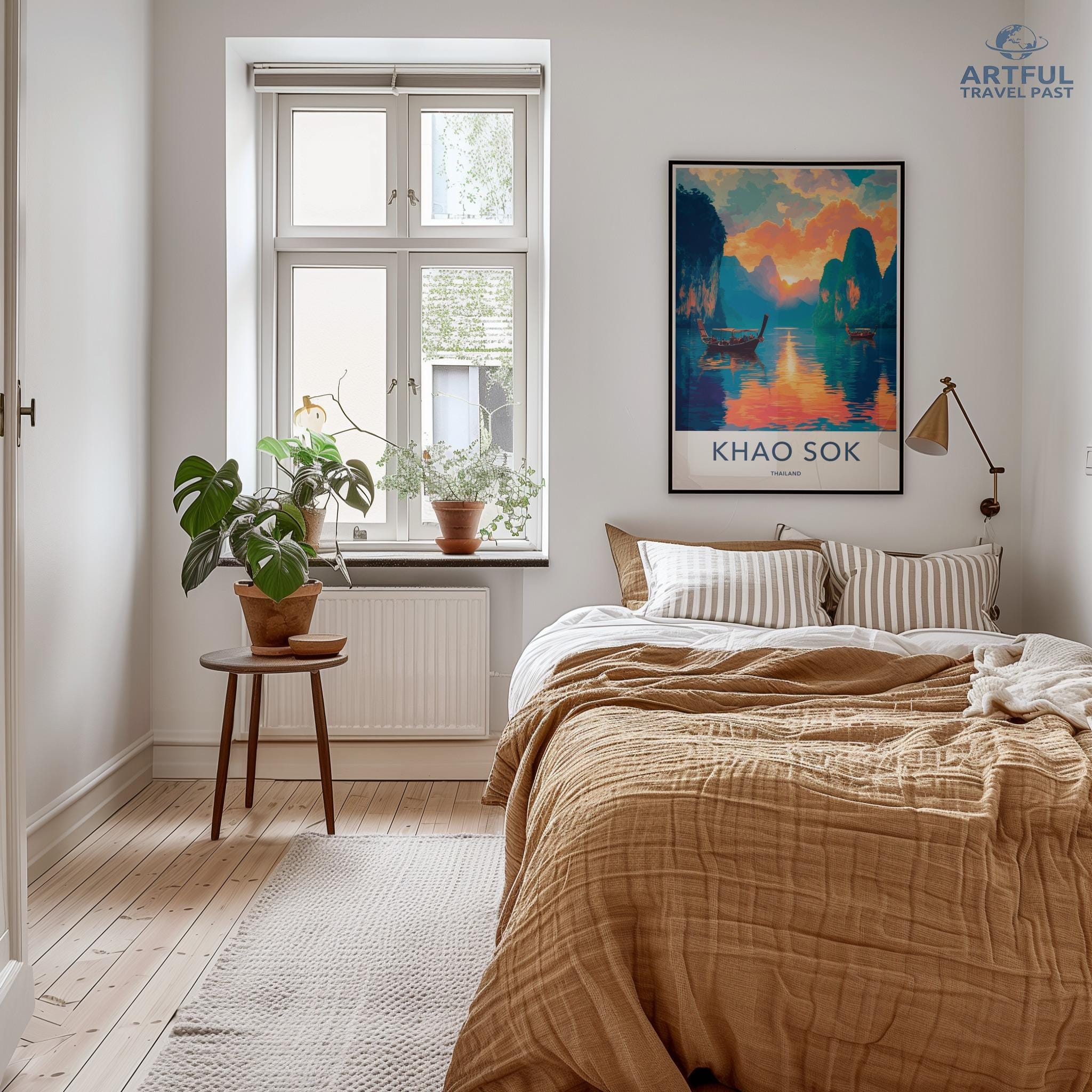Immerse yourself in the breathtaking beauty of Khao Sok, Thailand, captured in this stunning wall art piece. Known for its lush rainforests, towering limestone cliffs, and serene lakes, Khao Sok is a paradise for nature lovers. Established as a national park in 1980, it boasts one of the world's oldest rainforests, rich with exotic wildlife and vibrant flora. Let this artwork bring a touch of tropical enchantment to your space.