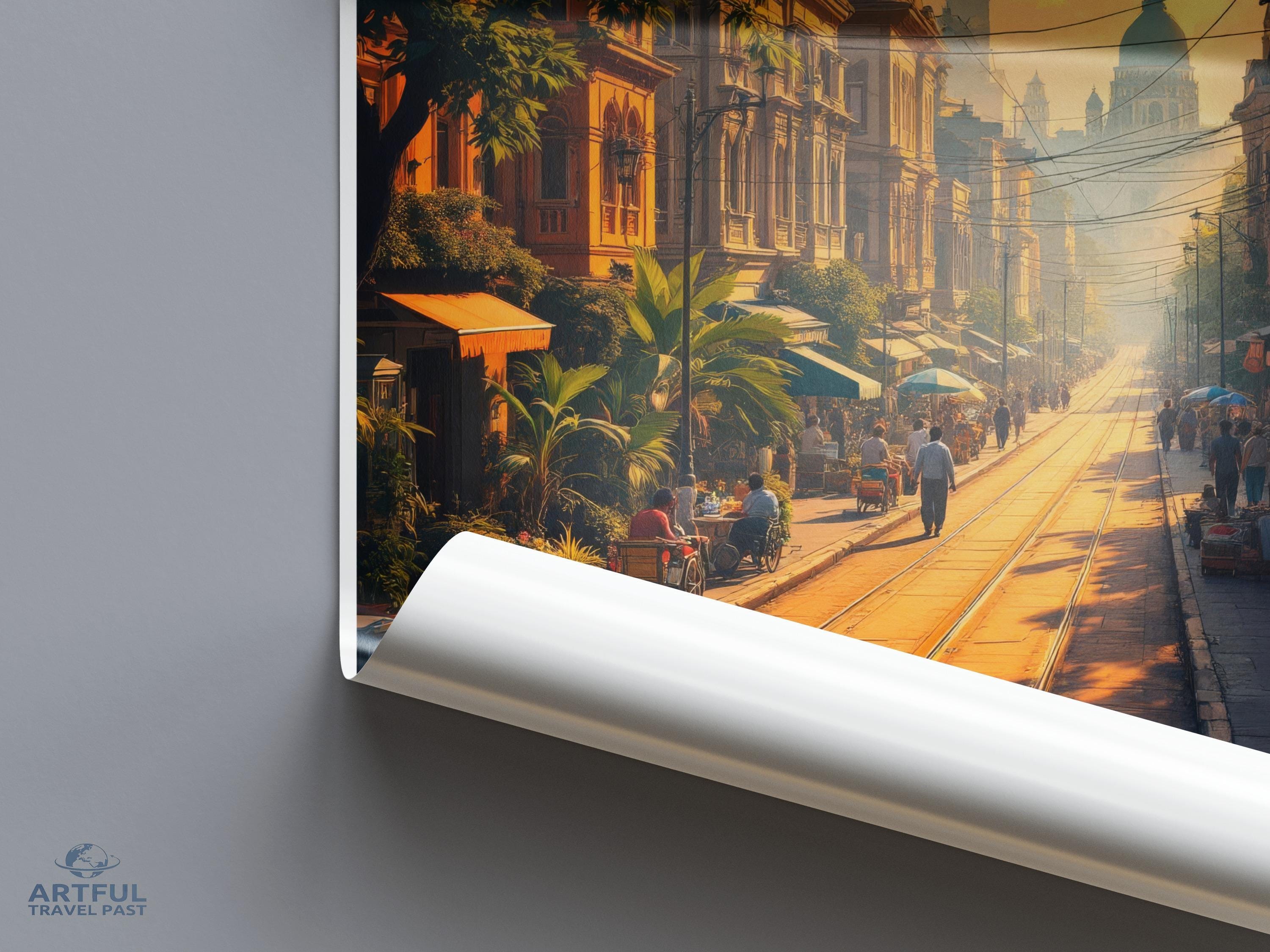 Capture the timeless allure of Kolkata, India with this exquisite wall art. Known as the "City of Joy," Kolkata brims with colonial history and rich cultural heritage. The stunning architecture of Victoria Memorial and the tram tracks weaving through bustling streets capture the city's unique blend of old-world charm and modern vibrancy. This piece perfectly encapsulates the soul and spirit of one of India's most enchanting cities.