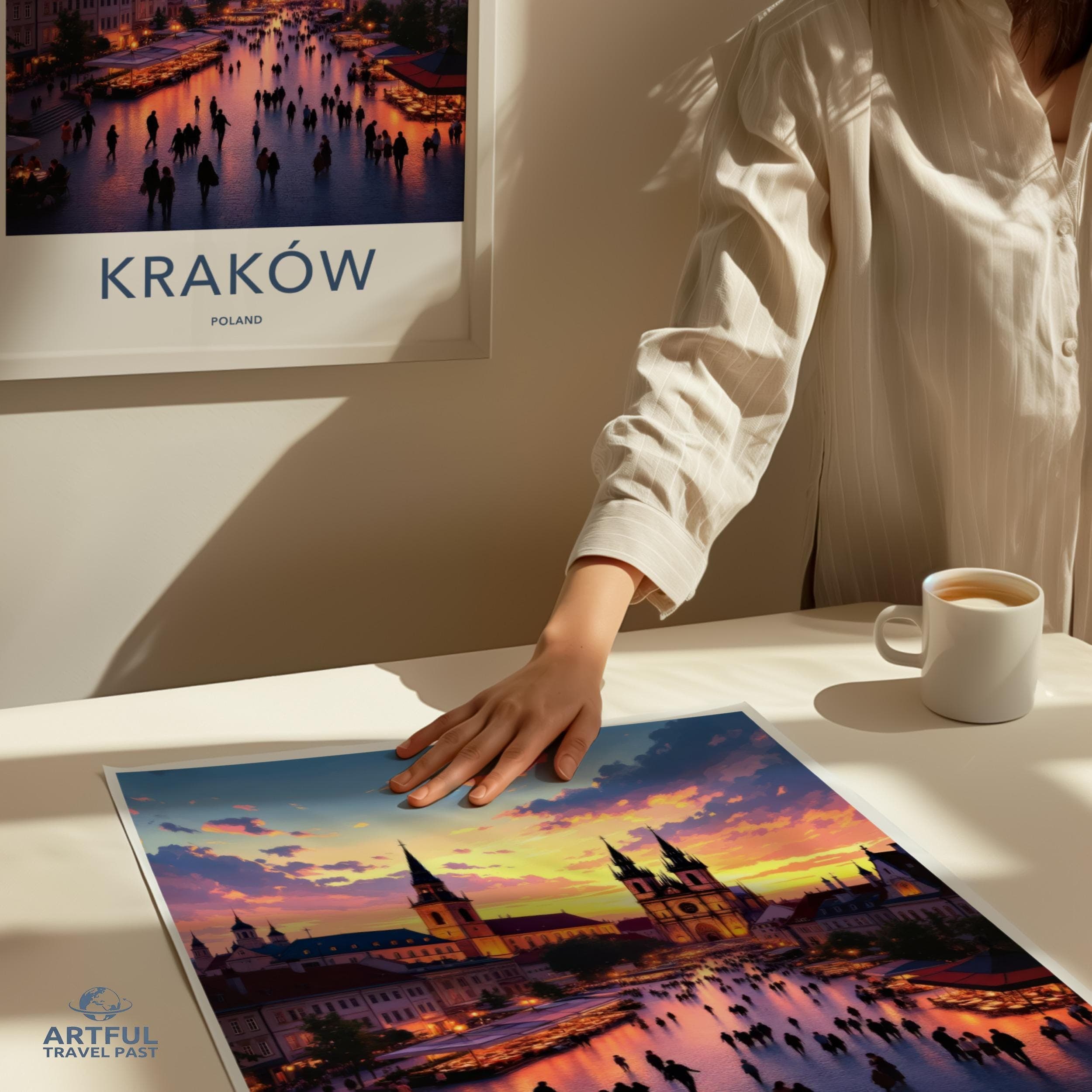Discover the captivating charm of Kraków, Poland, with this stunning wall art. Known for its medieval architecture, vibrant squares, and rich history, Kraków's old town is a UNESCO World Heritage Site. Experience the enchanting Market Square at sunset, where Gothic and Renaissance buildings glow under the evening sky. This piece beautifully captures the essence of one of Europe's most picturesque and historically significant cities.