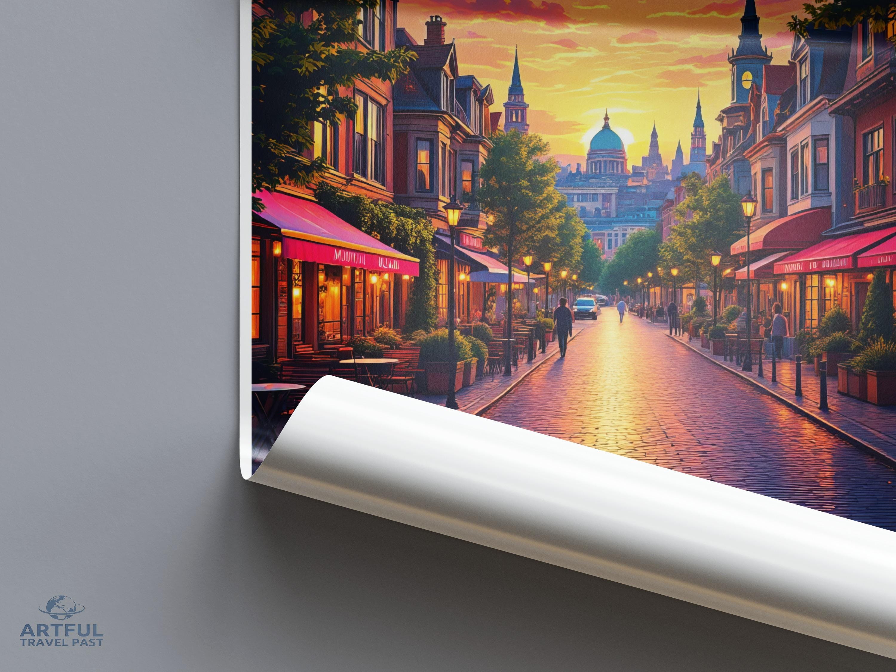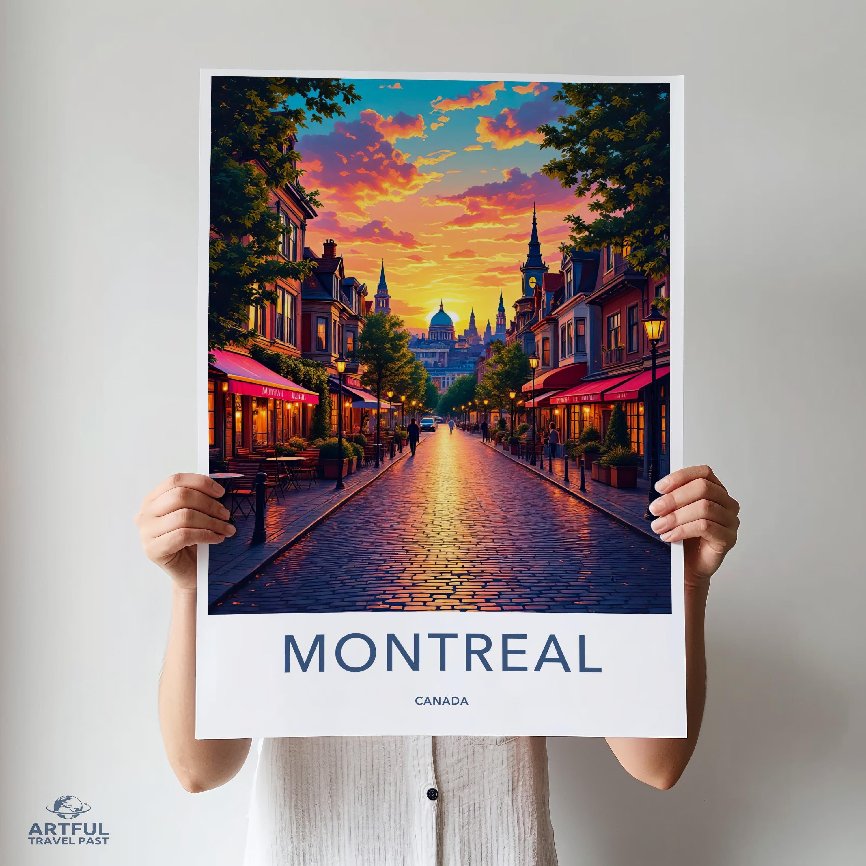 Capture the vibrant charm of Montreal, Canada's cultural capital, with this stunning wall art. Featuring a picturesque street bathed in the warm hues of an enchanting sunset, this piece highlights Montreal’s unique blend of historic architecture and modern flair. Known for its cobblestone streets, lively cafés, and the iconic domed skyline of St. Joseph's Oratory, Montreal offers a mesmerizing journey through both history and contemporary allure.