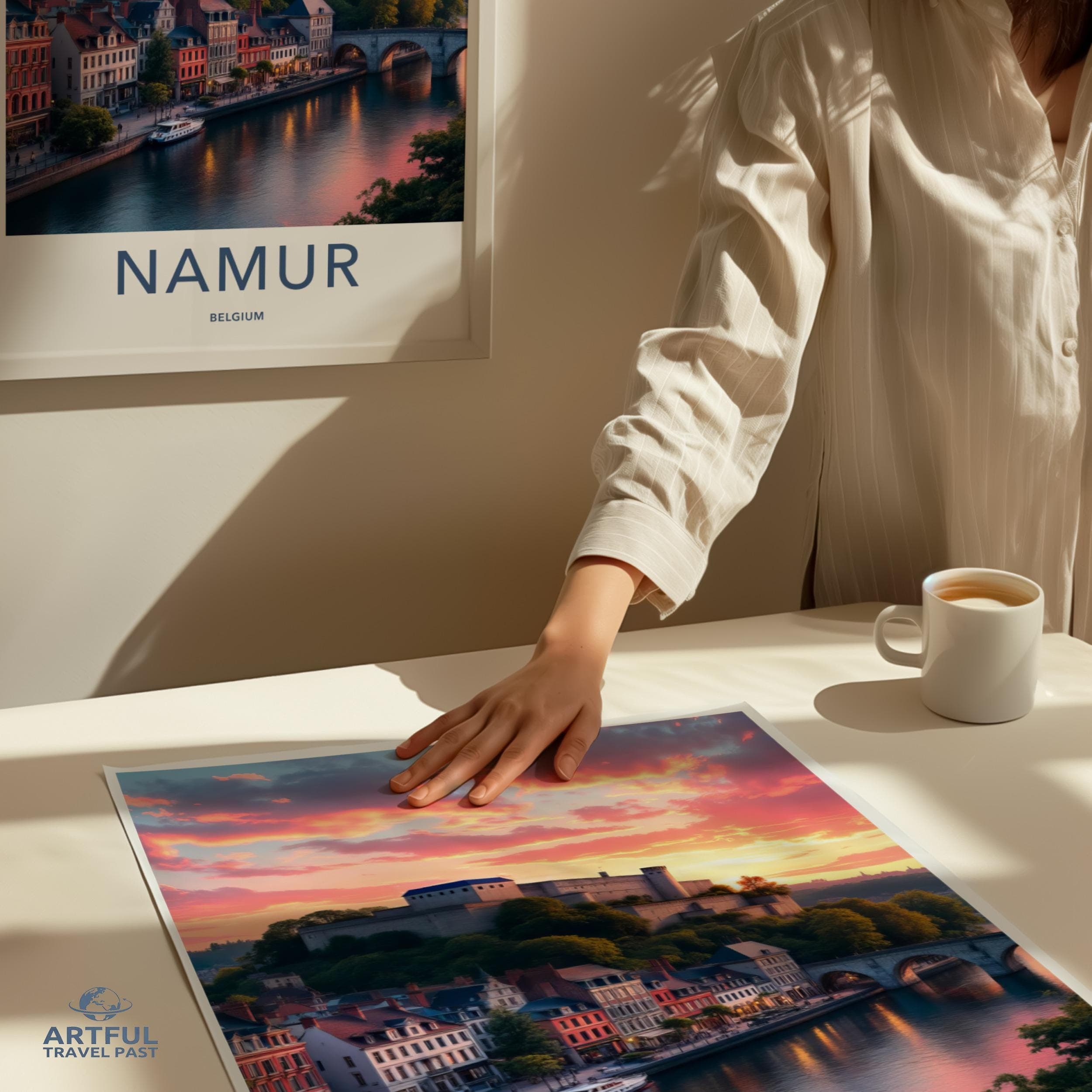 Experience the enchanting beauty of Namur, Belgium with this stunning wall art. Nestled where the Sambre and Meuse rivers meet, Namur is famous for its historic Citadel overlooking charming, colorful homes and picturesque waterways. This vibrant city was a strategic military site, earning a rich historical legacy. Amidst its cobbled streets and lush greenery, Namur's allure lies in its mix of serene nature and captivating architecture. Perfect for adding a touch of European charm to any space!