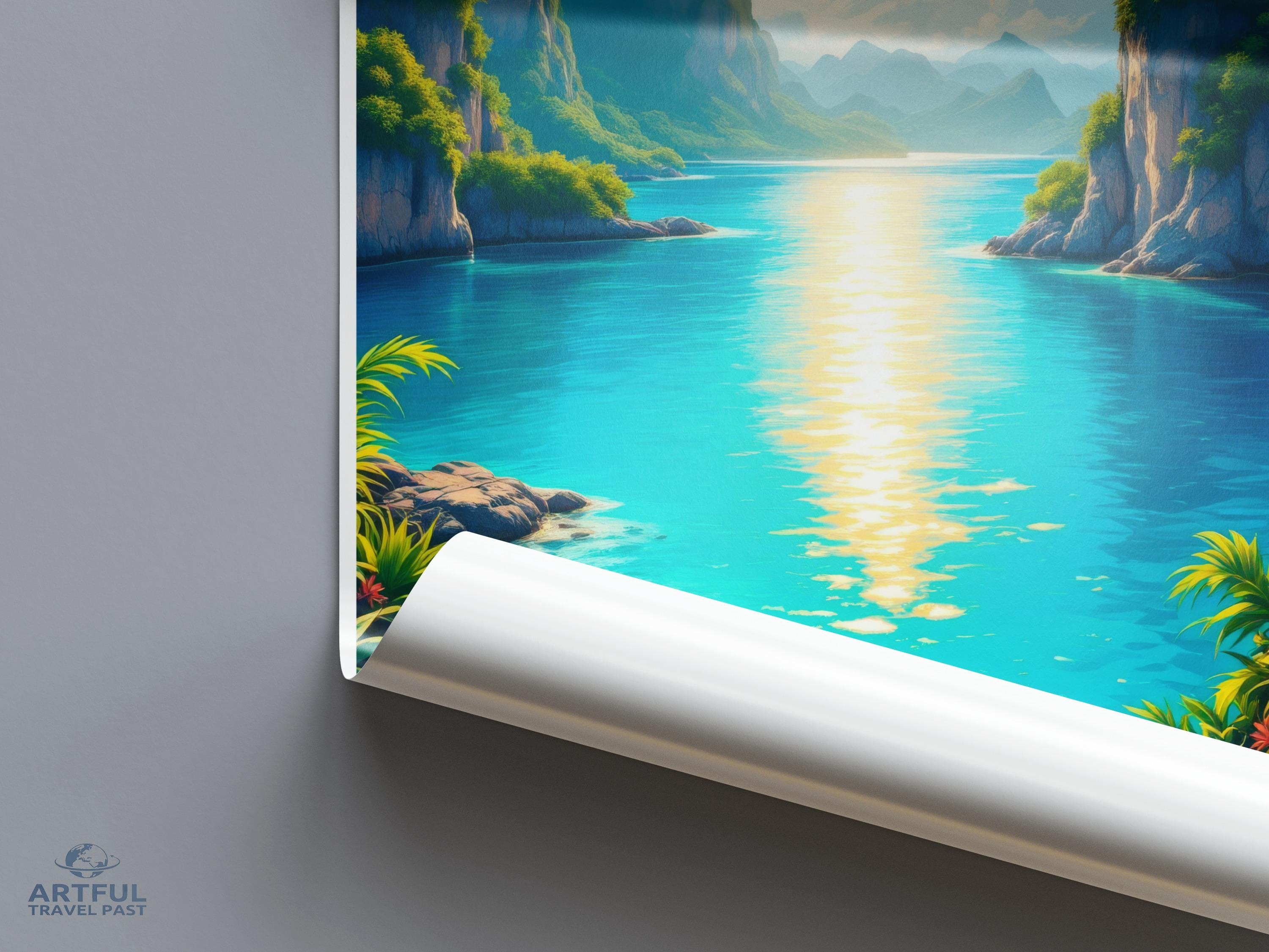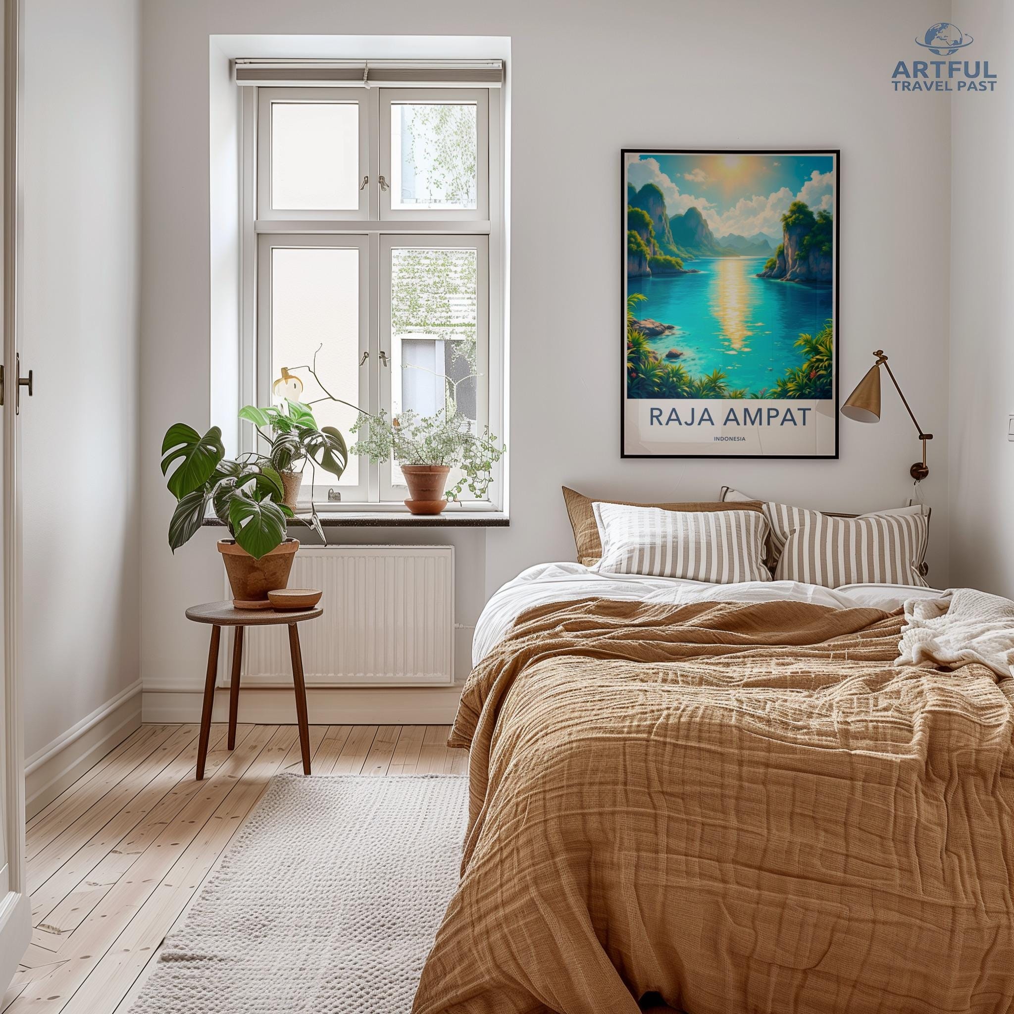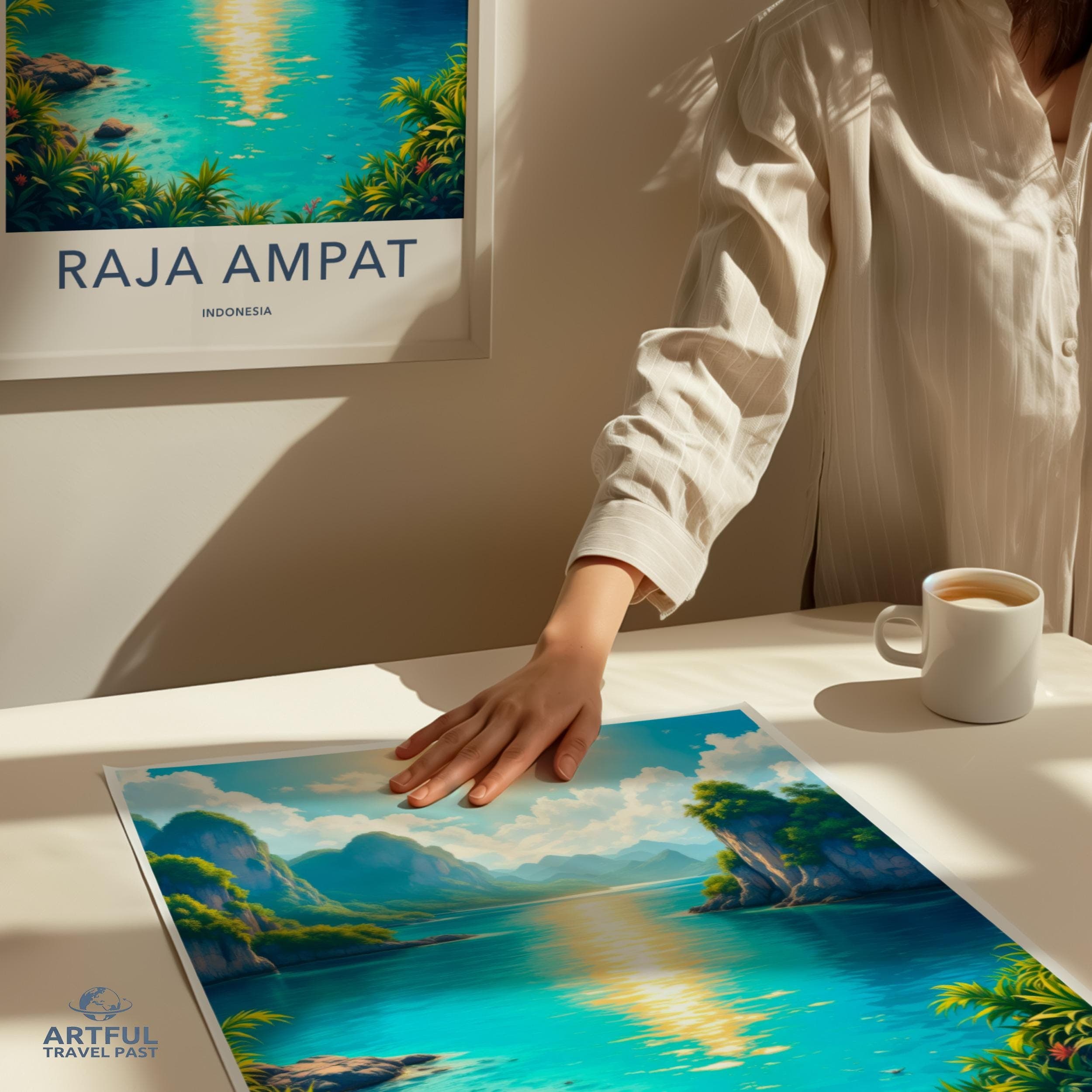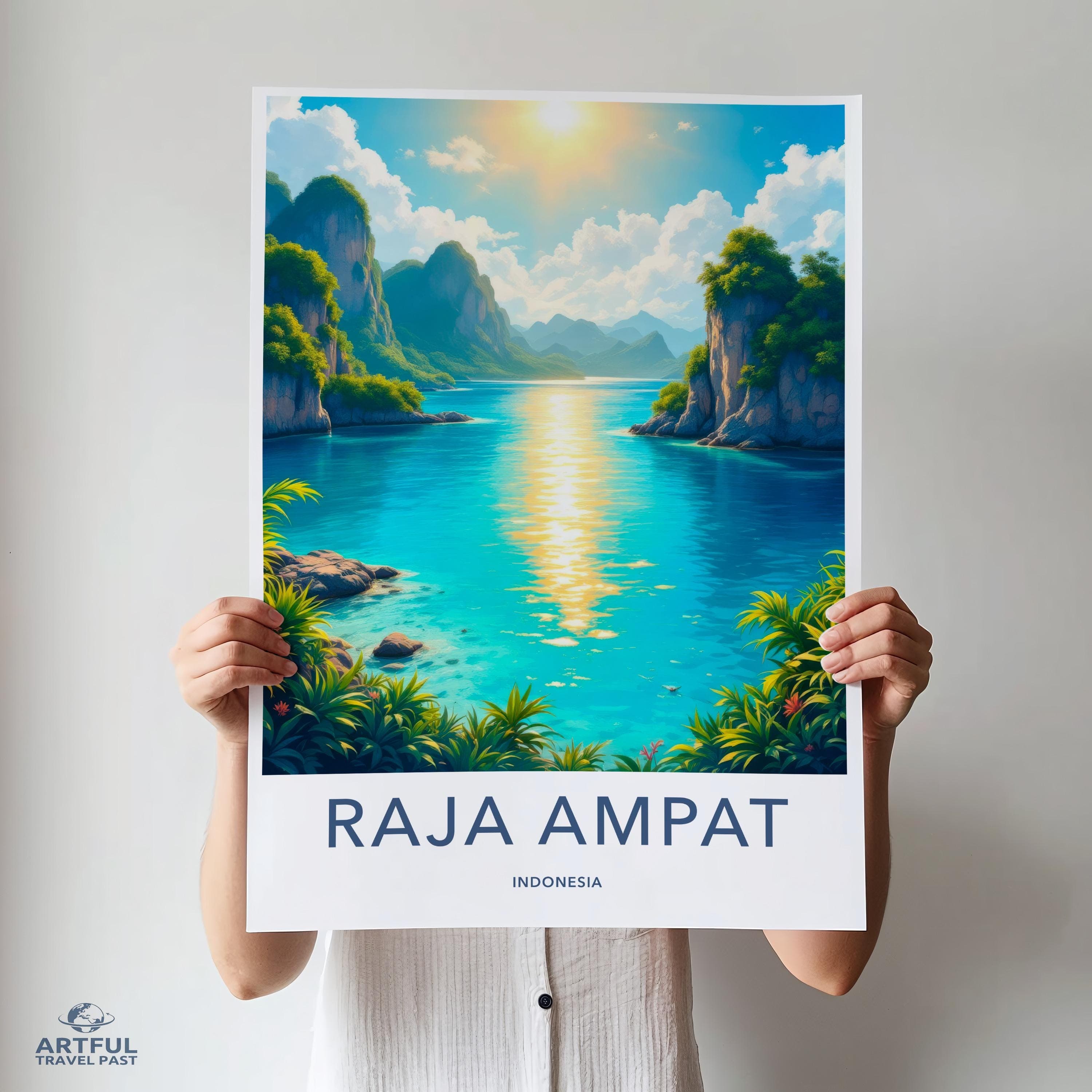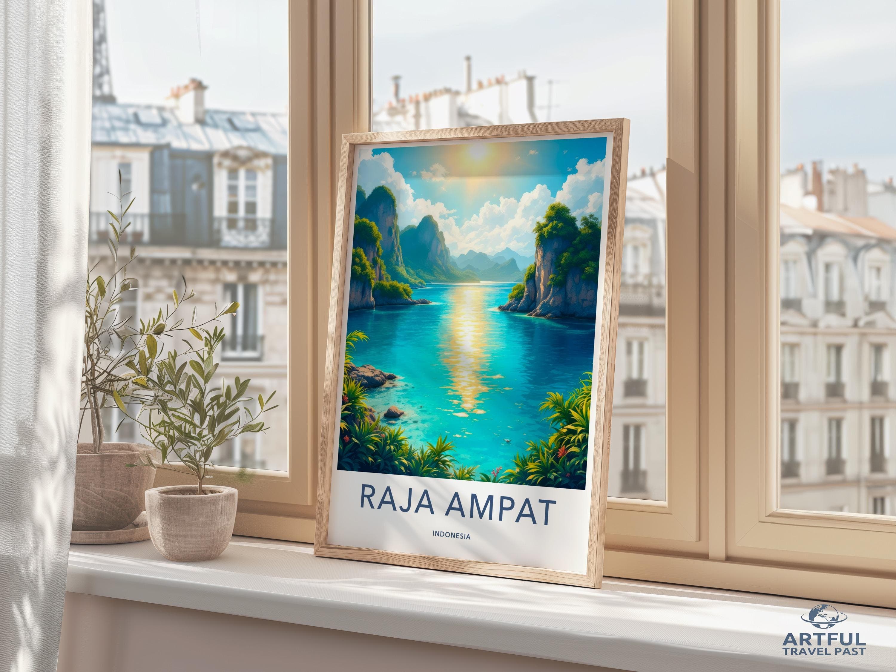 Experience the breathtaking beauty of Raja Ampat, Indonesia, through this stunning wall art. Known for its rich marine biodiversity, Raja Ampat comprises over 1,500 small islands, cays, and shoals. Its lush greenery and crystal-clear turquoise waters create a tropical paradise, perfect for nature lovers and adventurers. Explore vibrant coral reefs, hidden lagoons, and ancient limestone cliffs in this magical UNESCO World Heritage site, capturing the essence of serenity and natural splendor.