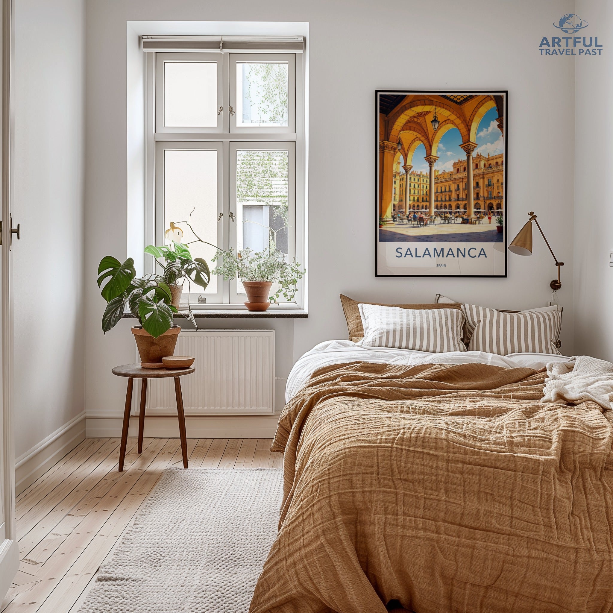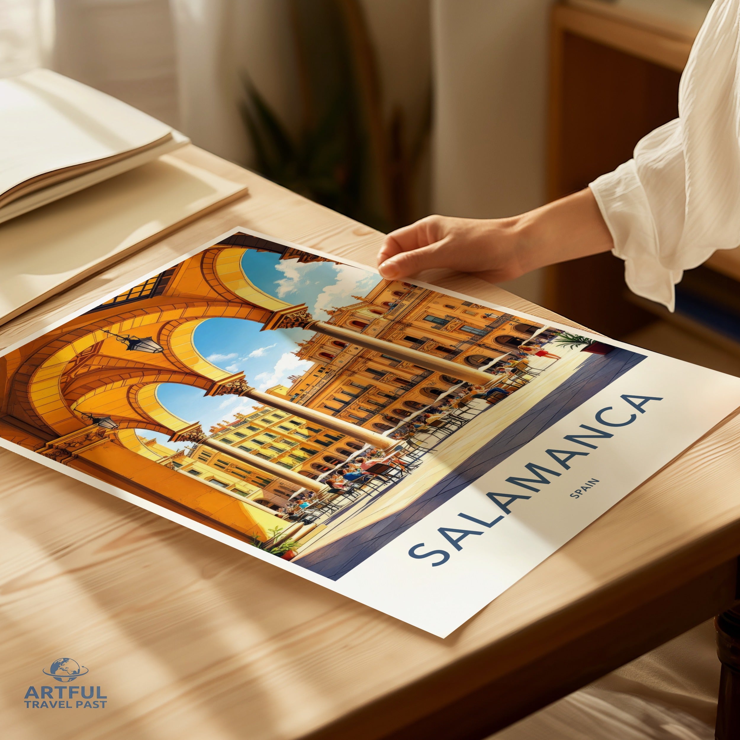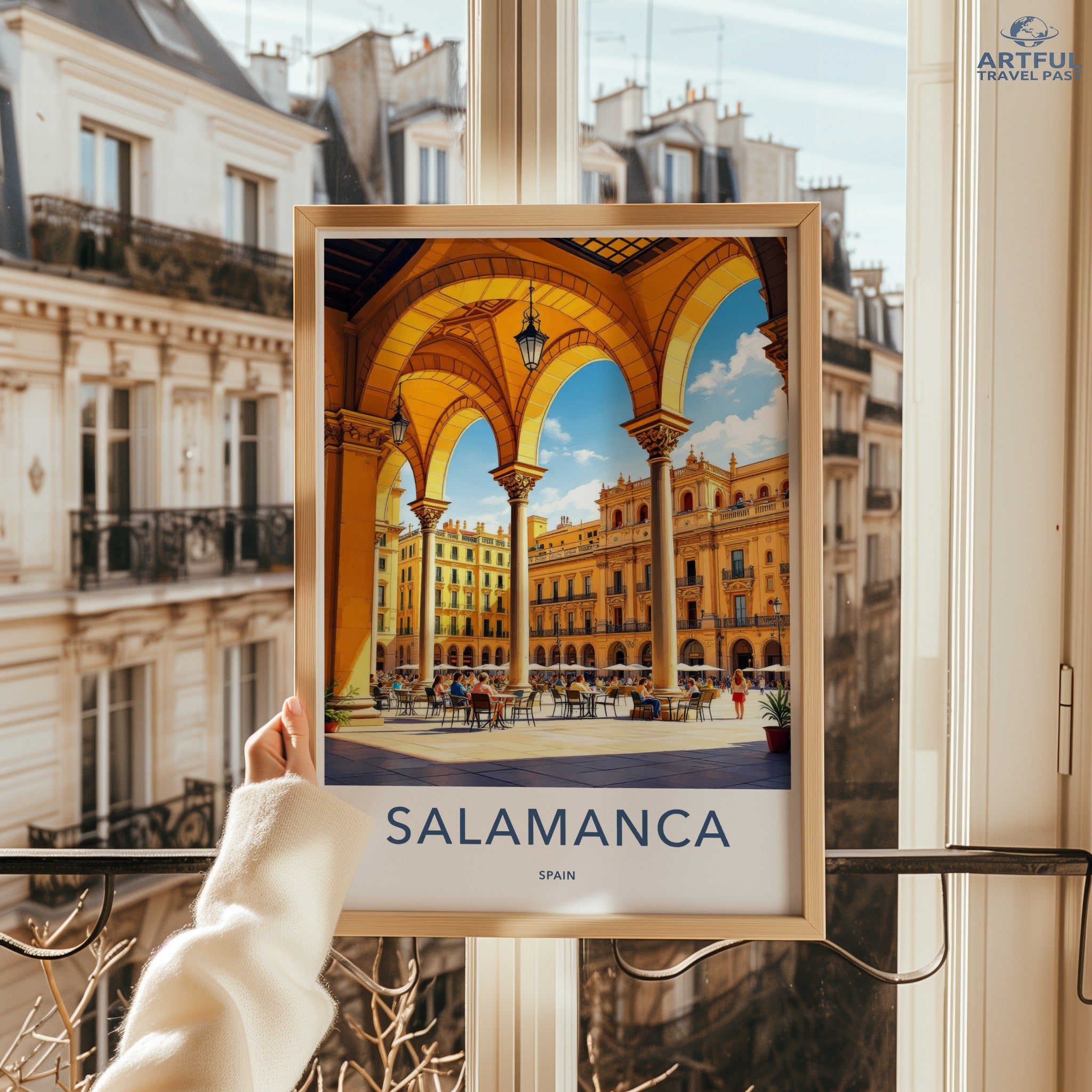 Discover the enchanting city of Salamanca, Spain, captured in this stunning wall art piece. Known for its golden sandstone architecture, Salamanca is home to one of the oldest universities in Europe, the Universidad de Salamanca, founded in 1218. The majestic Plaza Mayor, an 18th-century Baroque square, serves as the heart of the city, bustling with lively cafés and rich cultural heritage. This artwork beautifully portrays the city's vibrant atmosphere and historical significance.