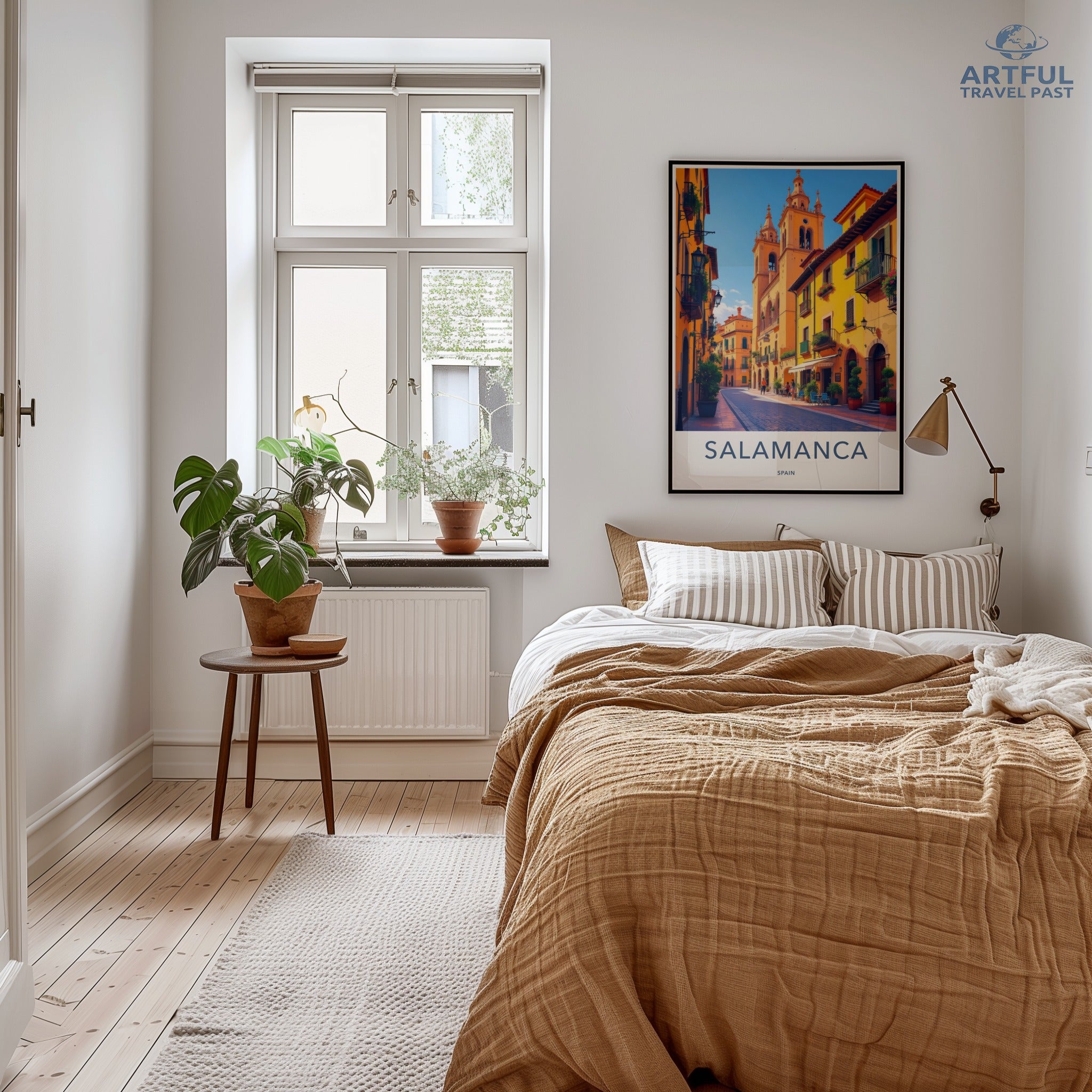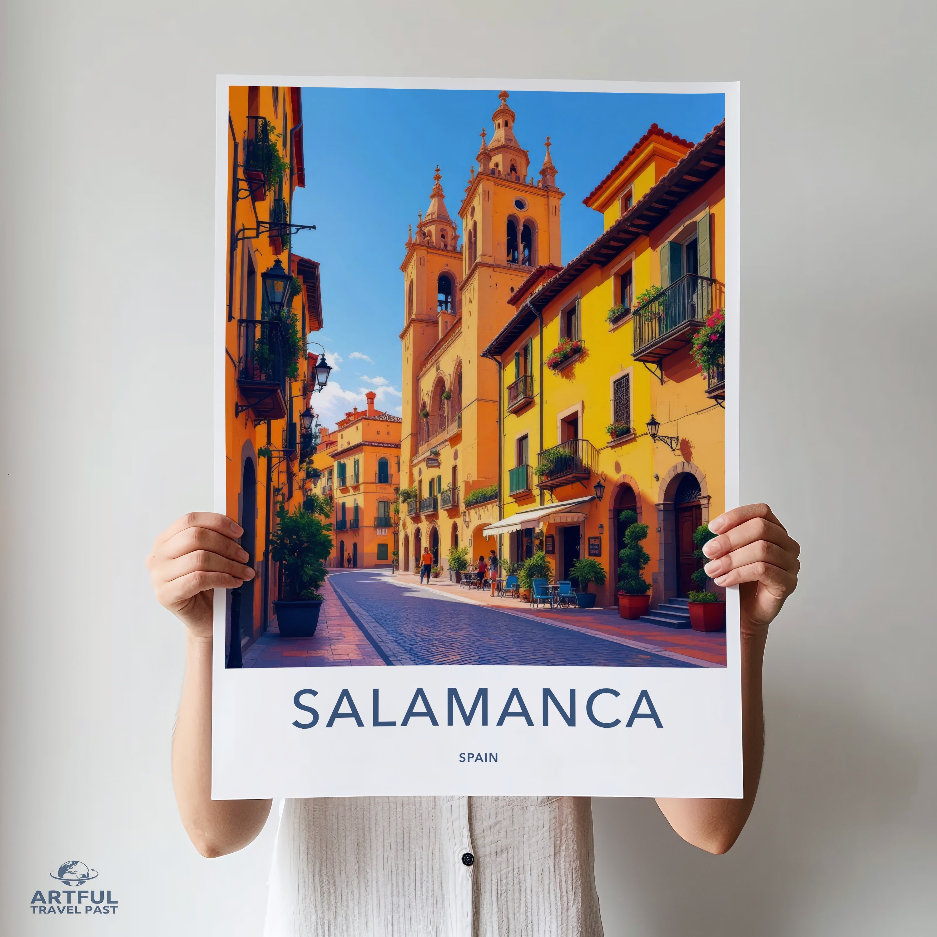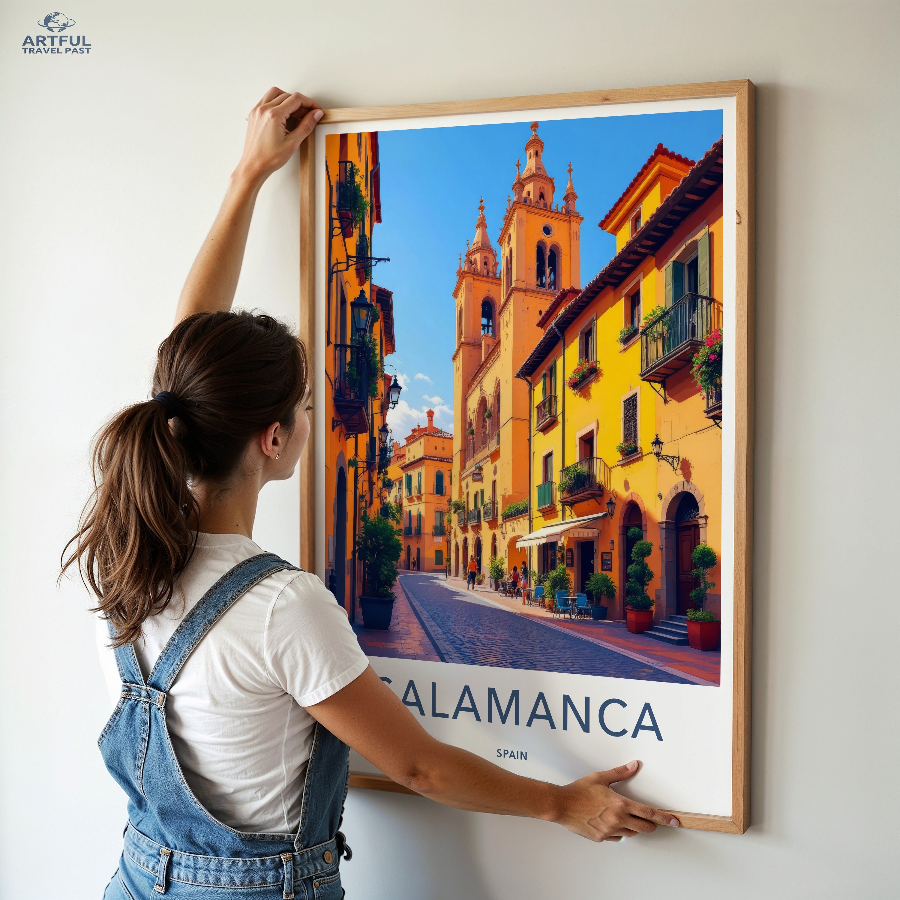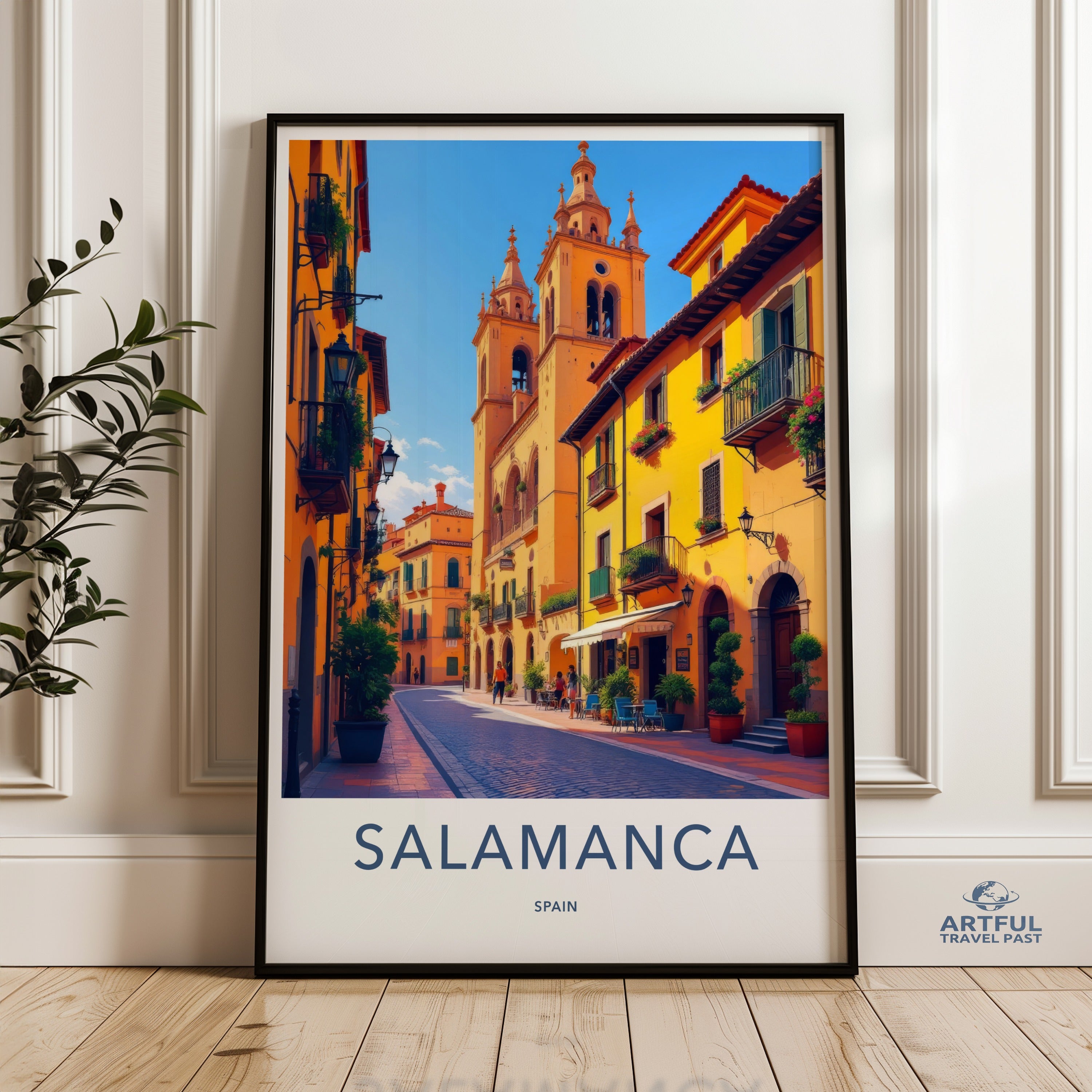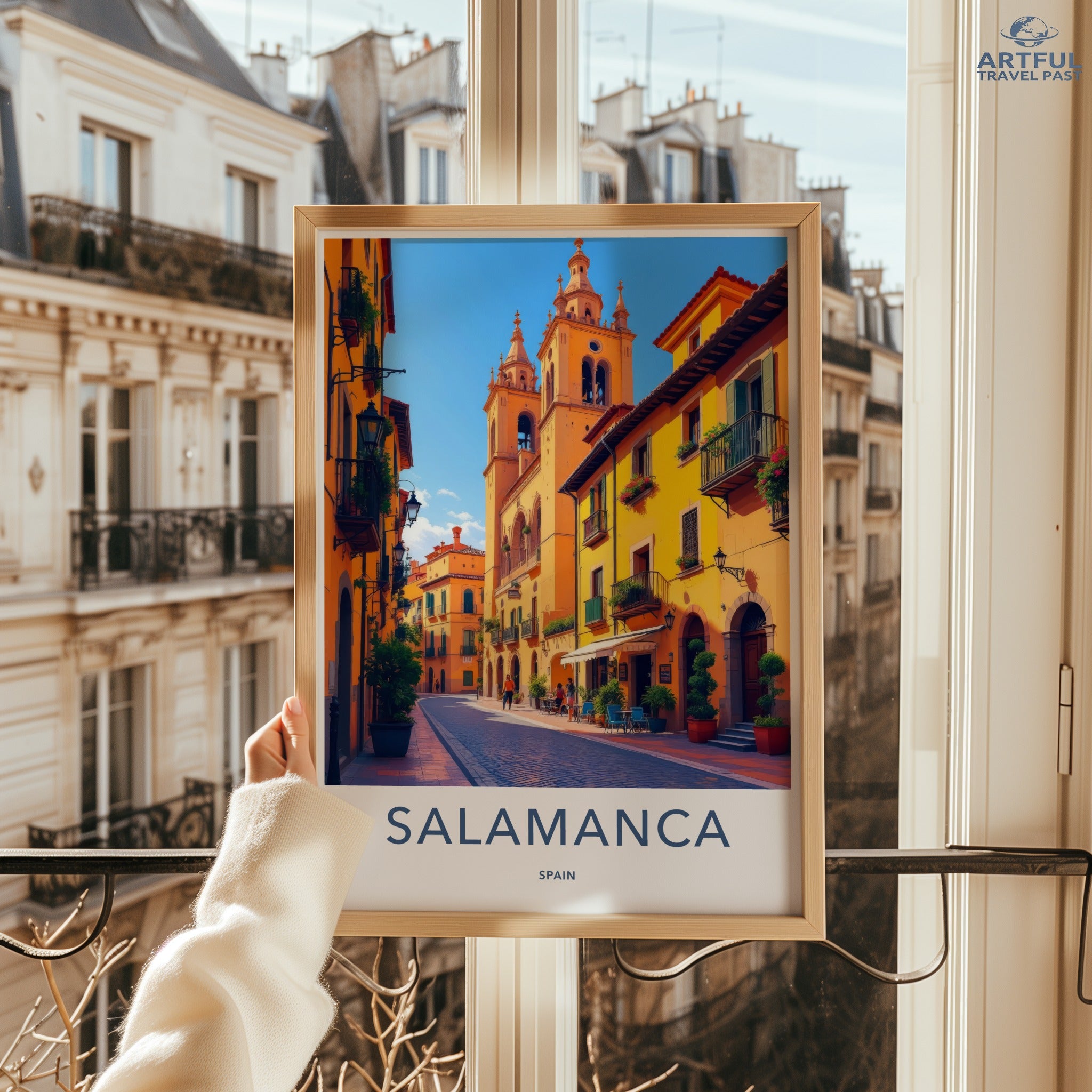 Discover the picturesque beauty of Salamanca, Spain with this stunning wall art. Renowned for its breathtaking medieval architecture and vibrant university culture, Salamanca's charm lies in its golden sandstone buildings that glow in the sunlight. A UNESCO World Heritage site, the city boasts remarkable landmarks such as the illustrious Plaza Mayor and the majestic twin spires of the New Cathedral, making it a must-visit gem in the heart of Spain.