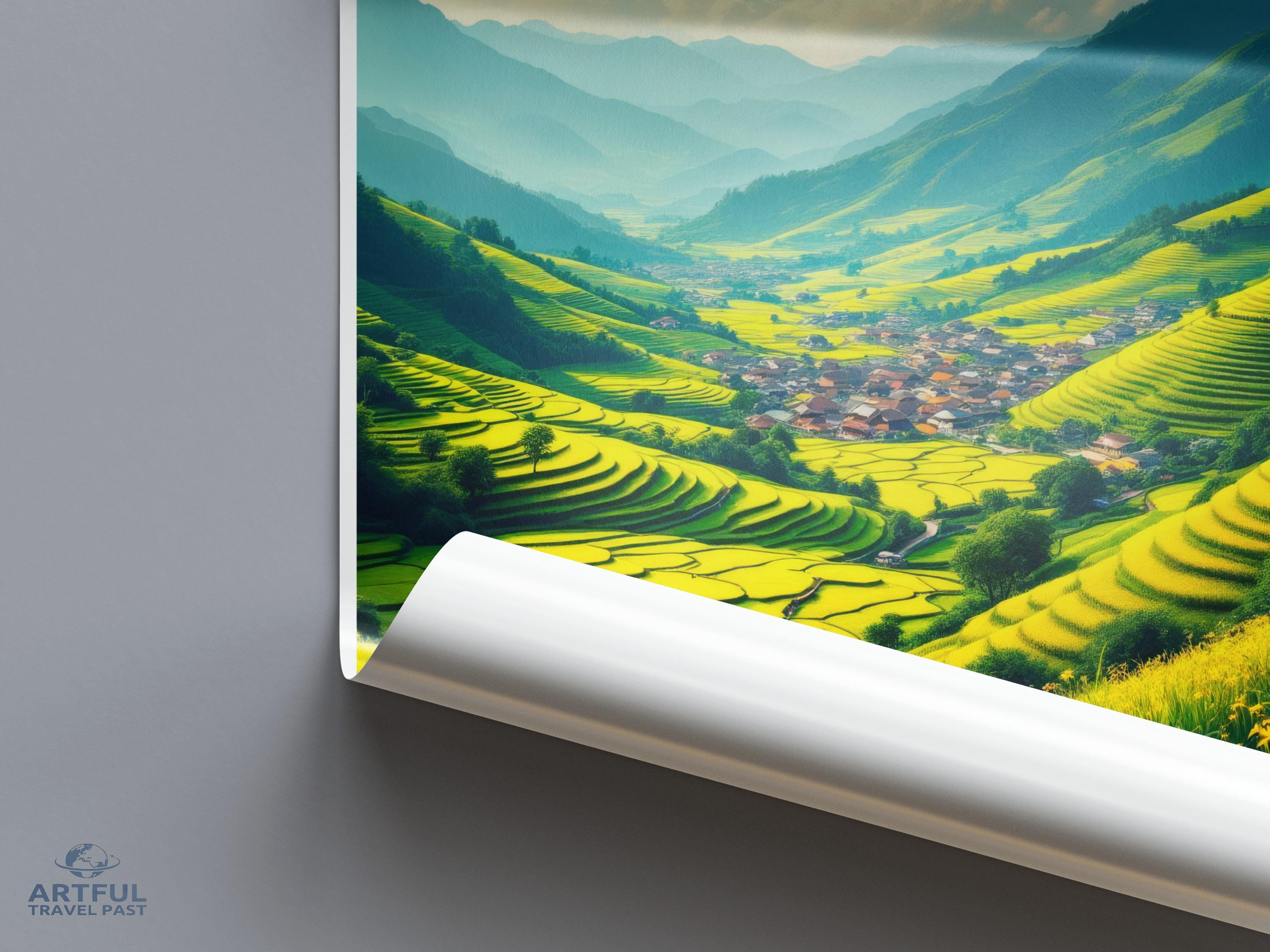Embark on a visual journey to the enchanting Ziro Valley in India, where verdant rice fields terrace gracefully along rolling hills, bathed in golden sunlight. This picturesque paradise, nestled in the heart of Arunachal Pradesh, is home to the Apatani tribe, known for their distinctive culture and sustainable farming practices. Serene landscapes, traditional stilt houses, and mesmerizing panoramas make Ziro Valley a timeless treasure worth celebrating on your walls.