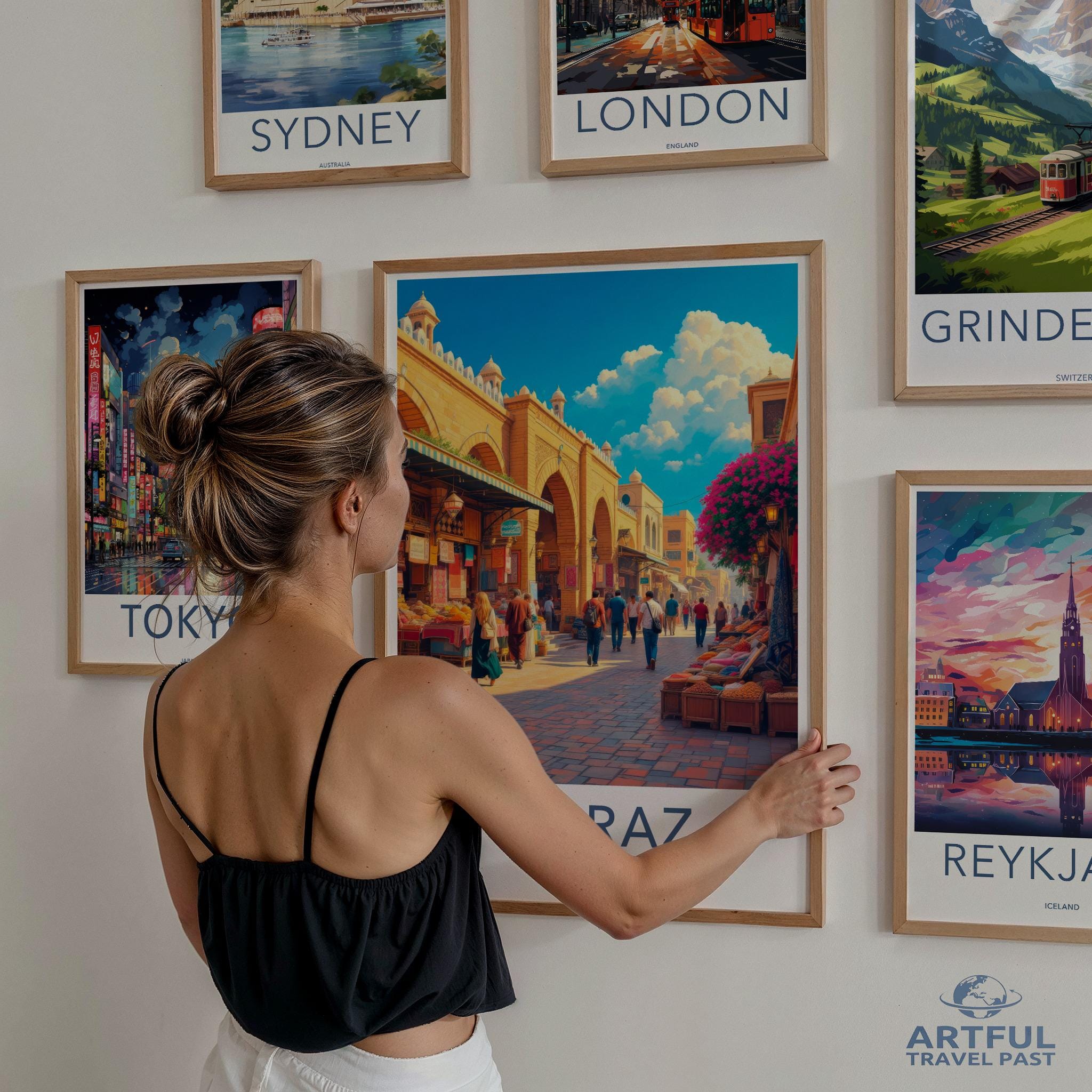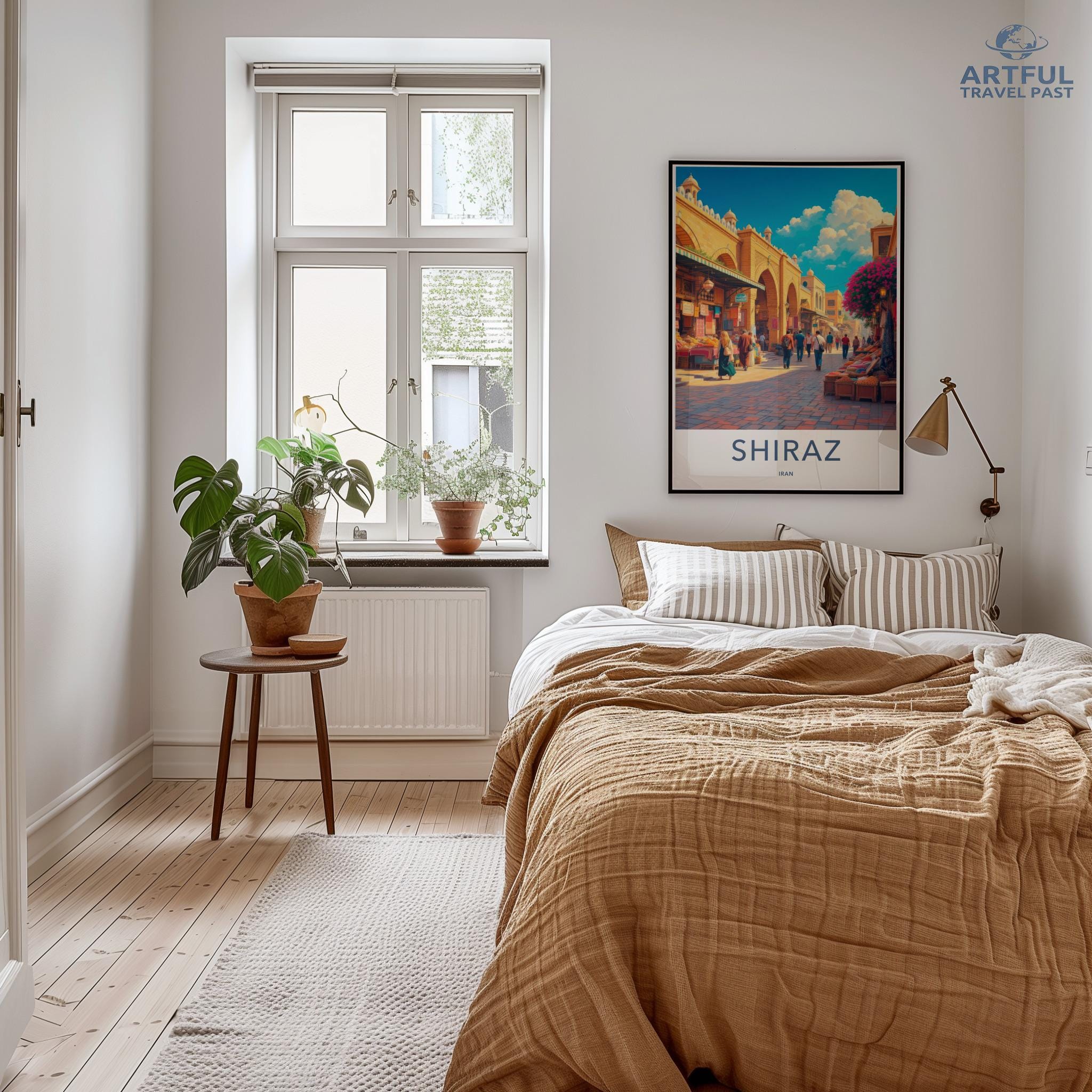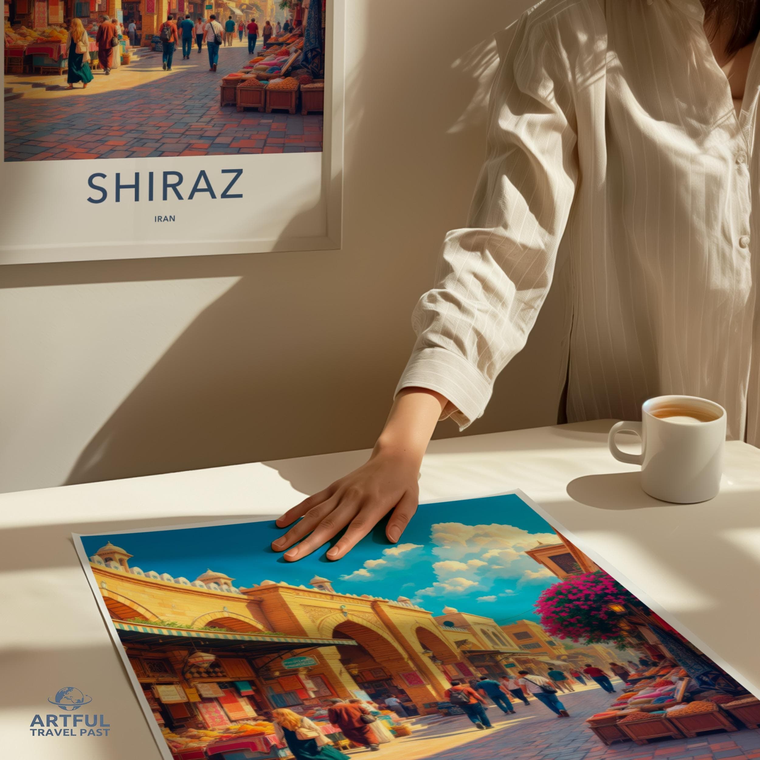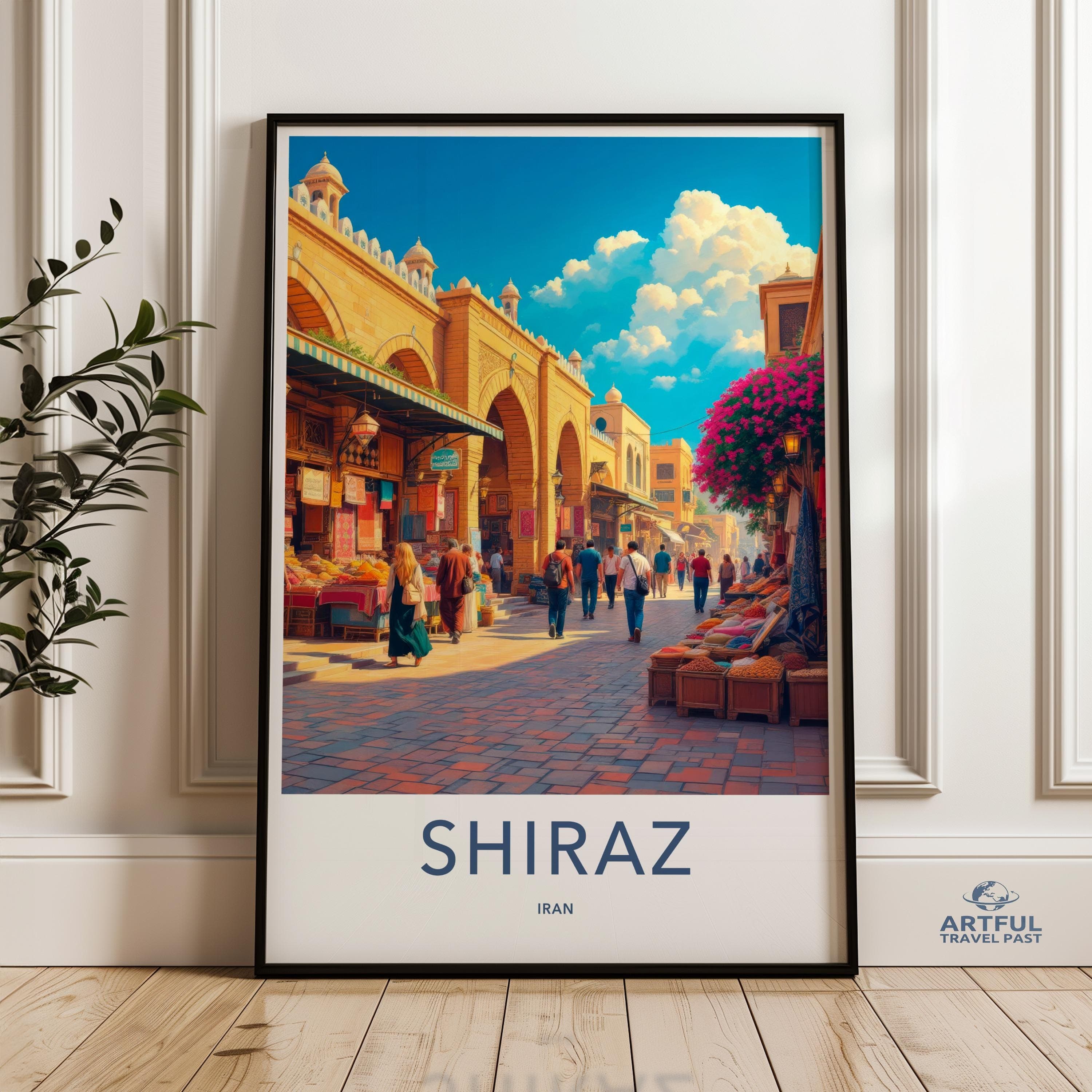 Discover the enchanting allure of Shiraz, Iran, with this captivating wall art. Nestled in the heart of Iran, Shiraz is renowned for its poetic heritage, vibrant bazaars, and exquisite gardens. The image captures the bustling Vakil Bazaar, where historic architecture harmonizes with colorful market stalls, creating a lively atmosphere. This artwork is a timeless tribute to the city's rich cultural tapestry and stunning landscapes.