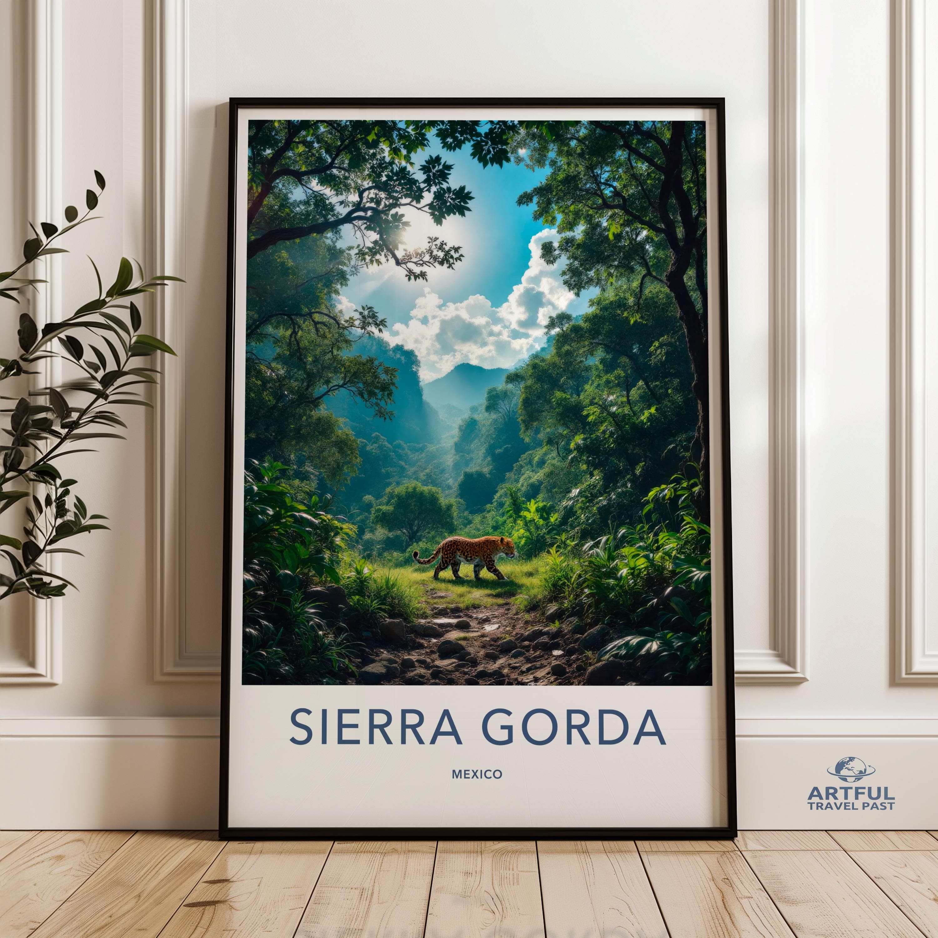 Discover the natural splendor of Sierra Gorda, Mexico, with this captivating wall art. Nestled in the heart of the country, Sierra Gorda boasts lush forests, rugged mountains, and serene rivers, creating a haven for wildlife, including the majestic jaguar. This UNESCO Biosphere Reserve combines rich ecological diversity with ancient archaeological treasures, making it a truly unique destination. Bring home the enchanting beauty and vibrant life of Sierra Gorda.