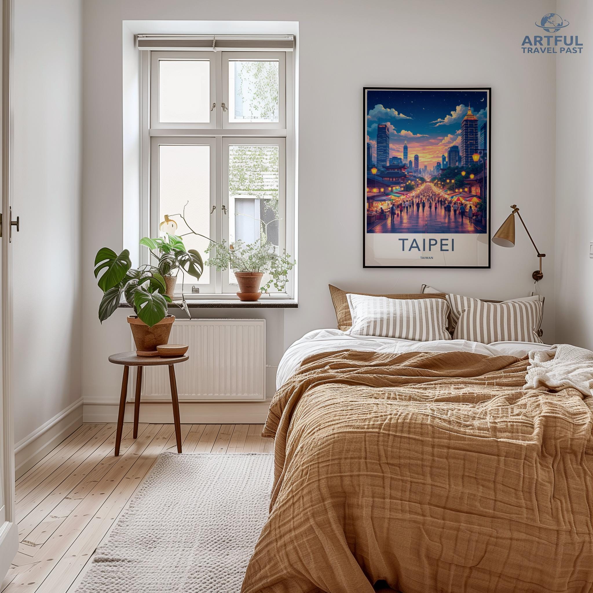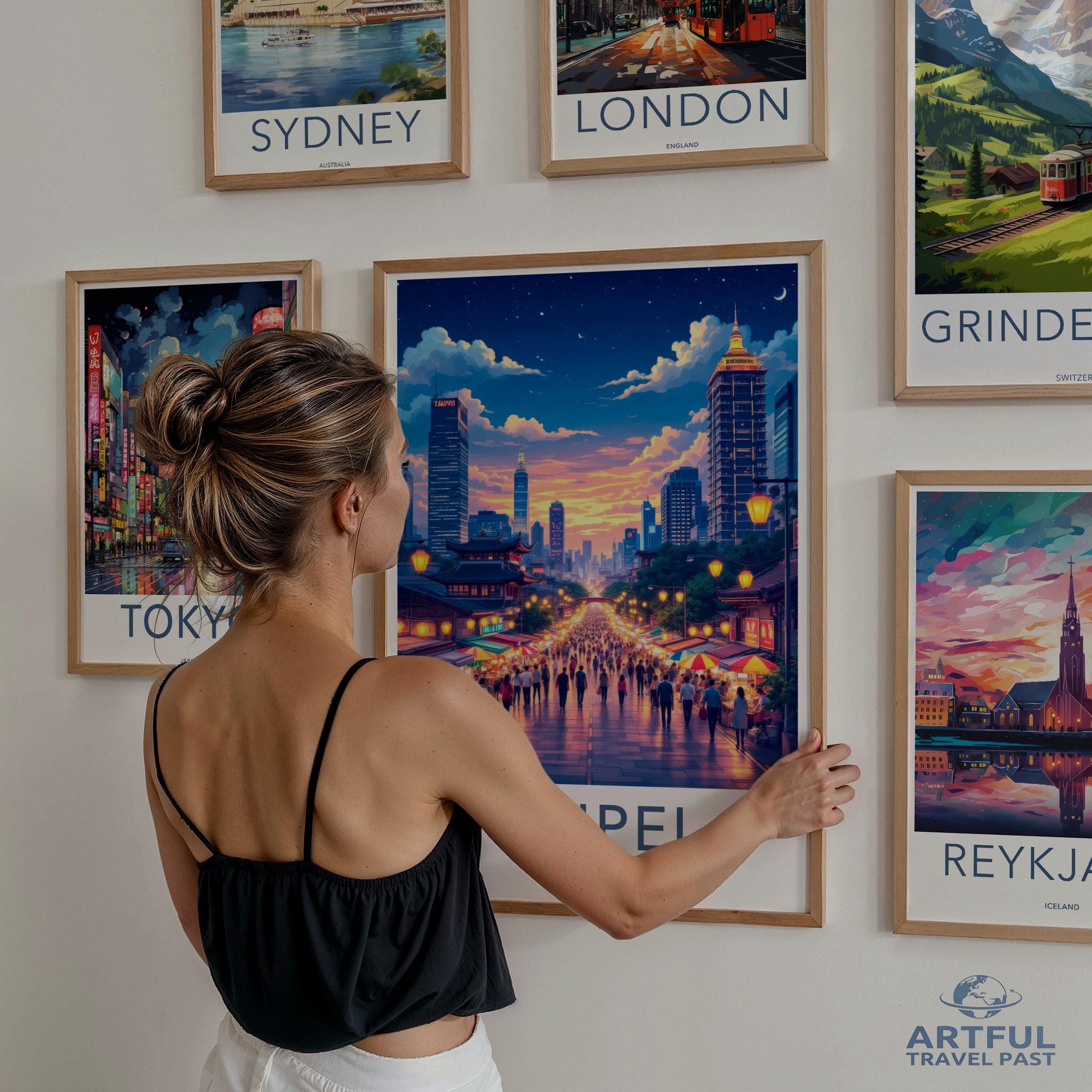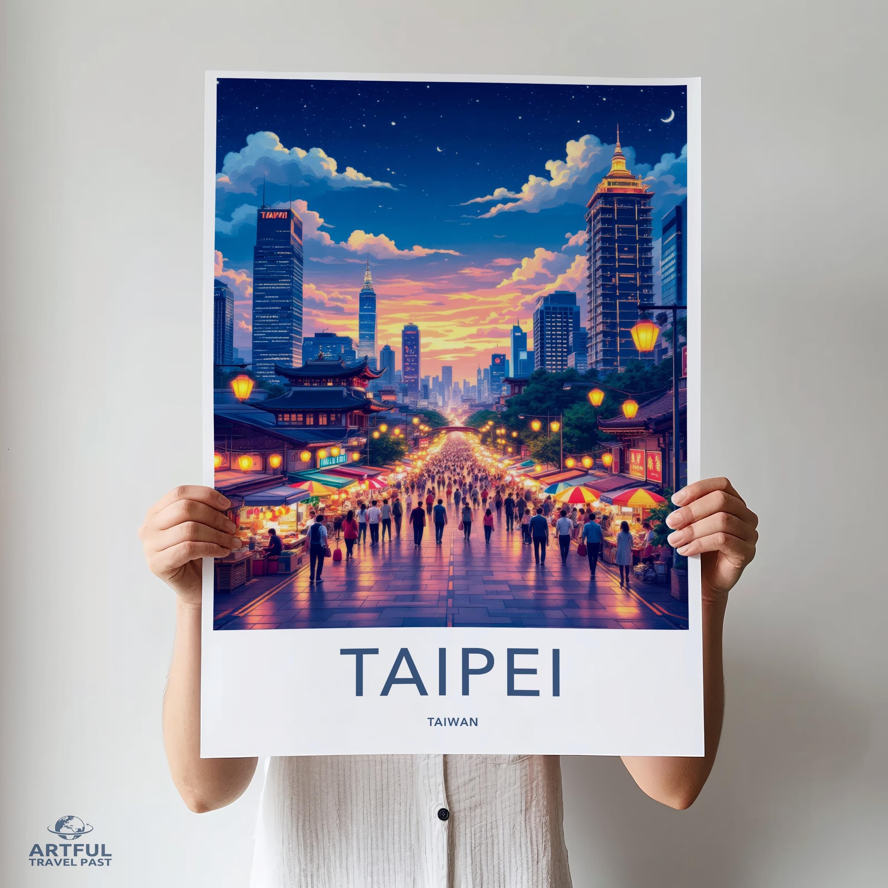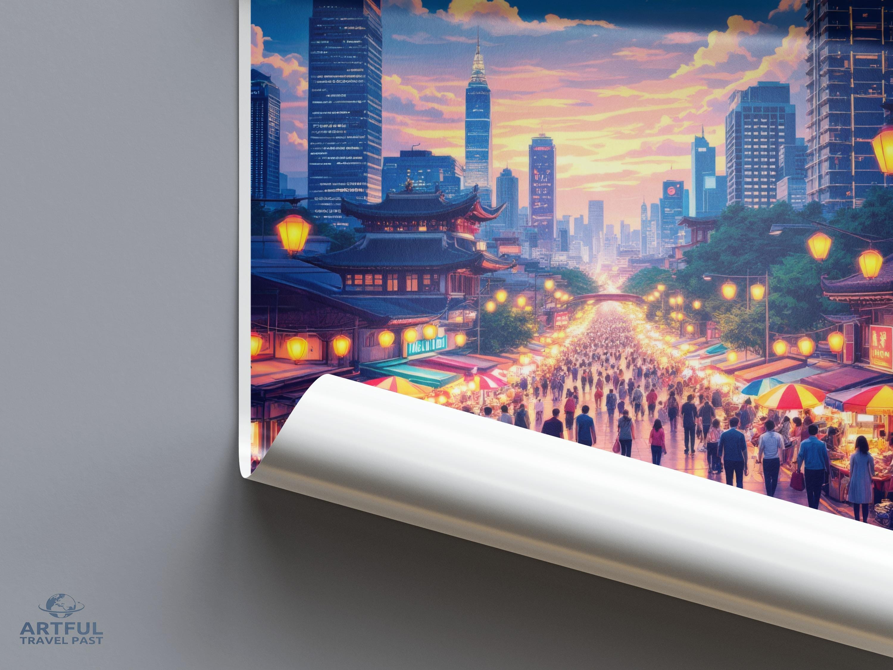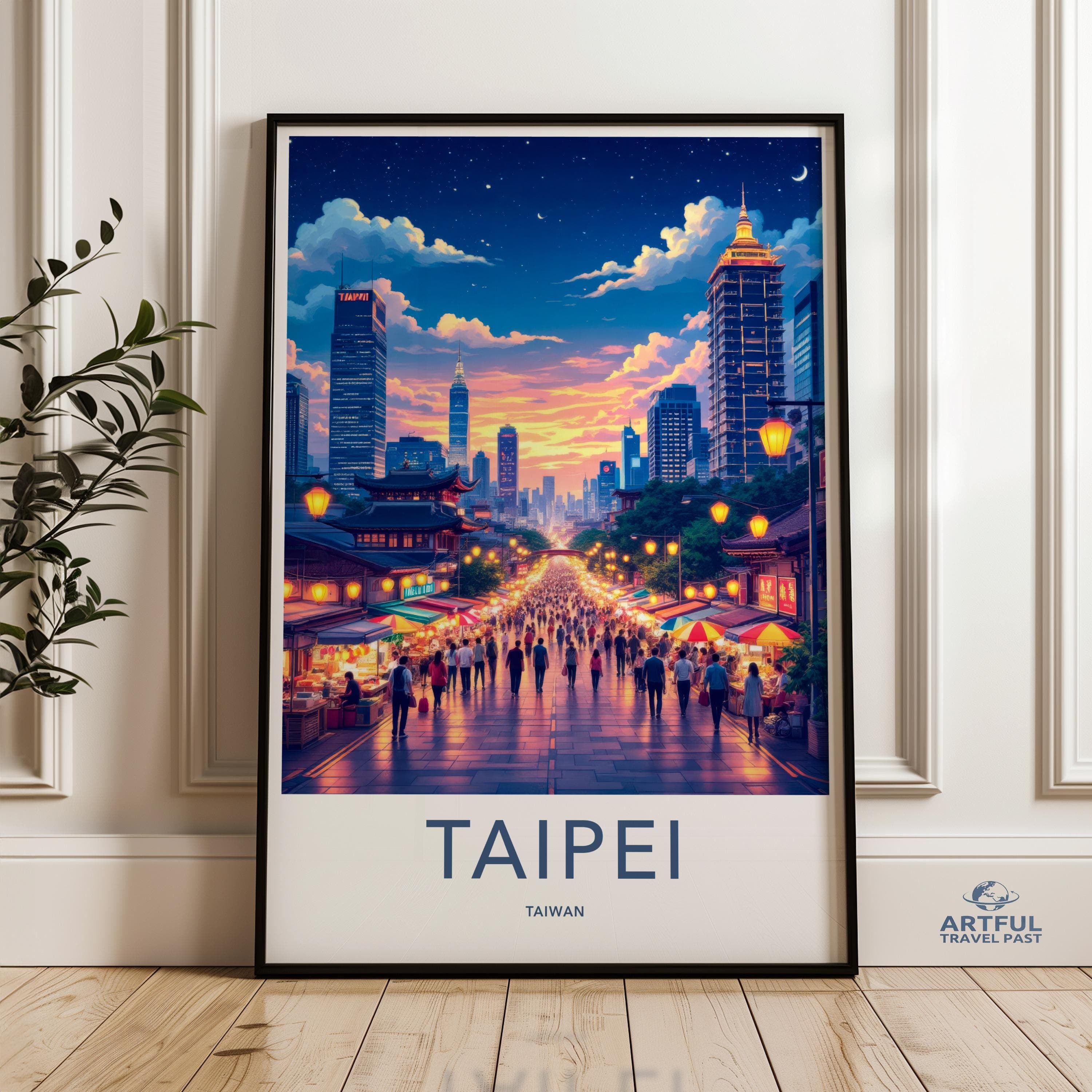 Discover the vibrant heart of Taipei with this stunning wall art. Capturing the lively night markets, modern skyscrapers like Taipei 101, and an enchanting blend of traditional and contemporary architecture, this piece takes you on a journey through Taiwan's bustling capital. Rich in history and culture, Taipei is famed for its delectable street food, serene temples, and captivating urban landscape that beautifully blends the old with the new.
