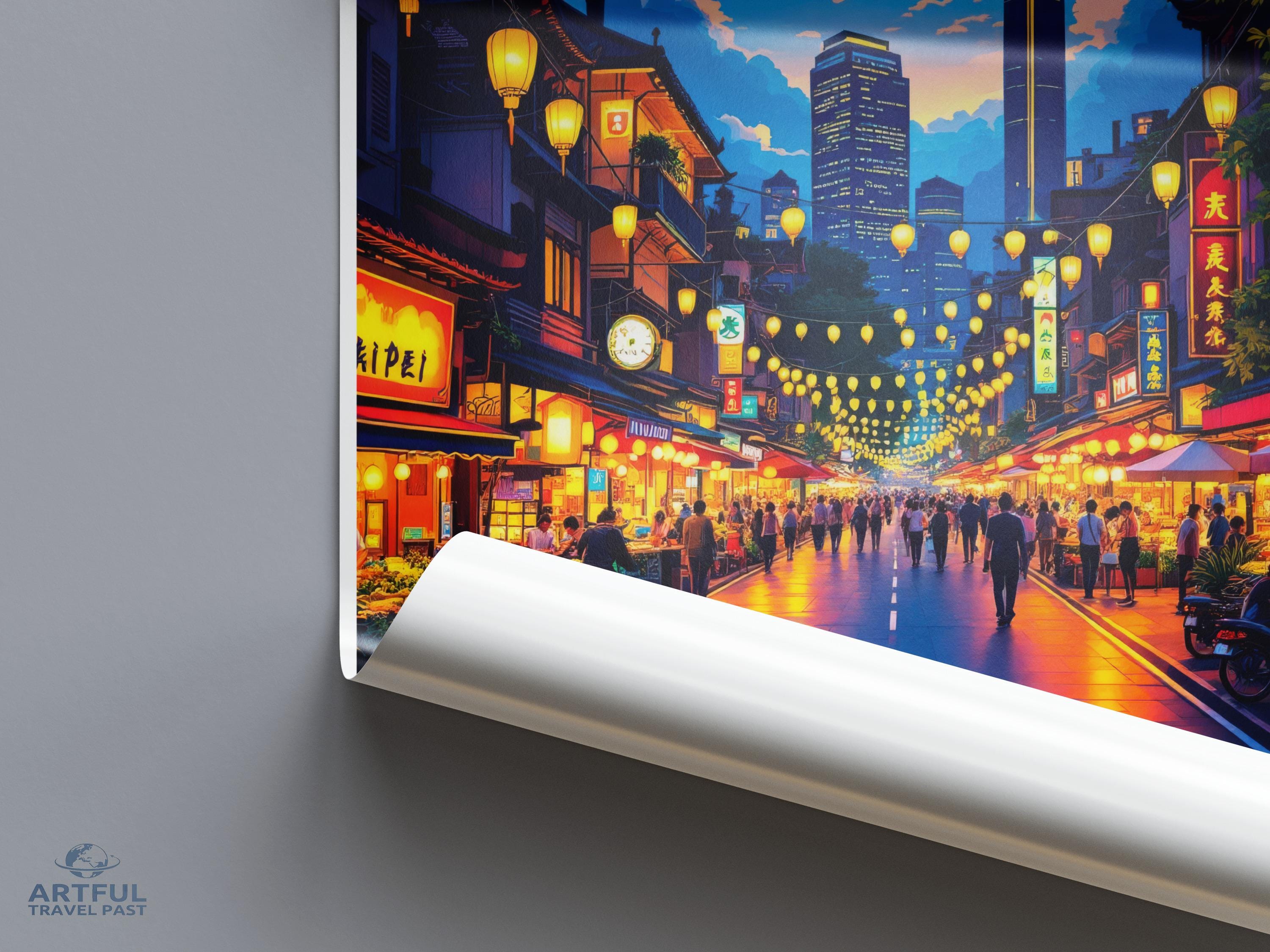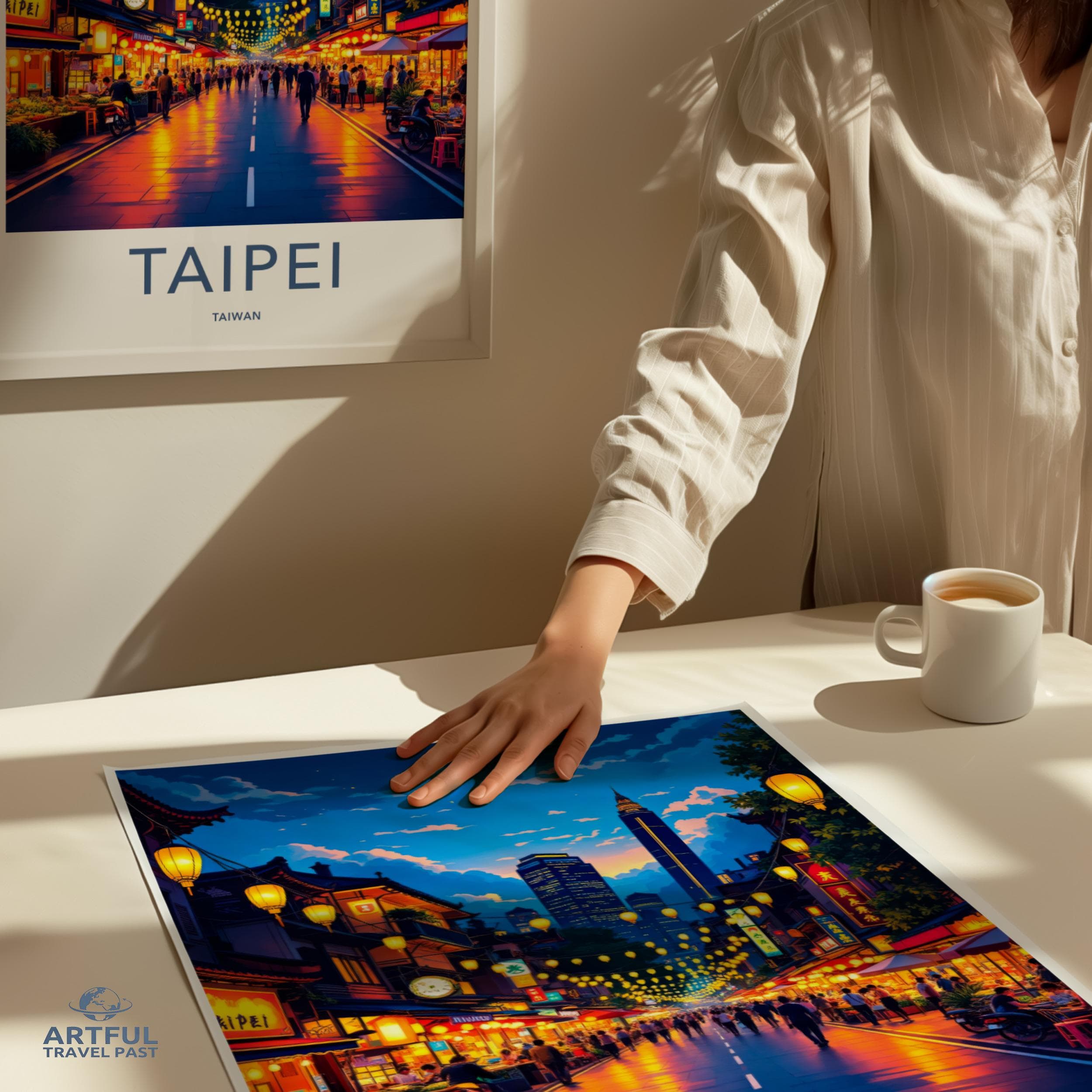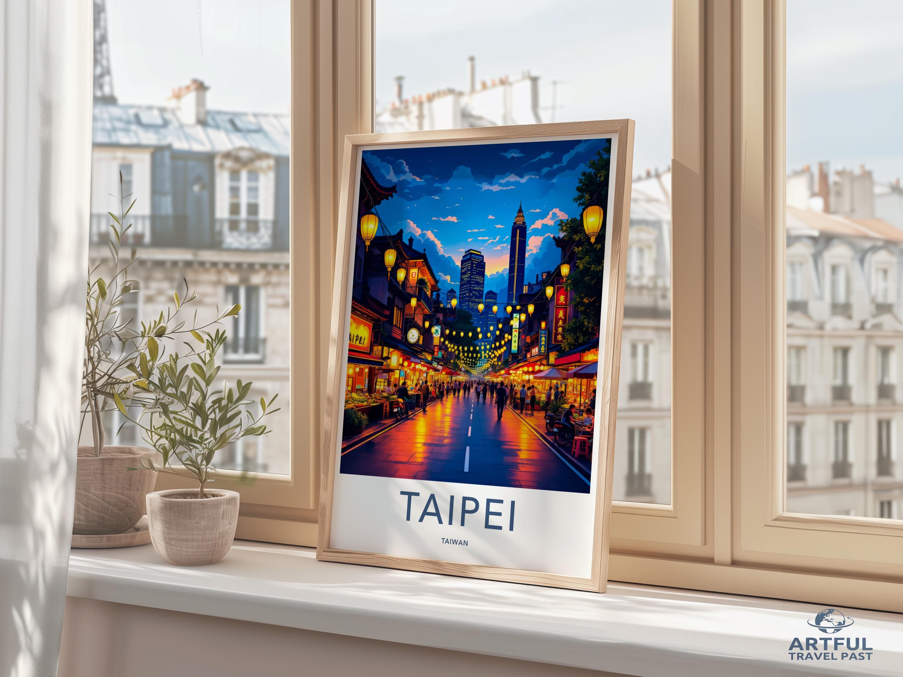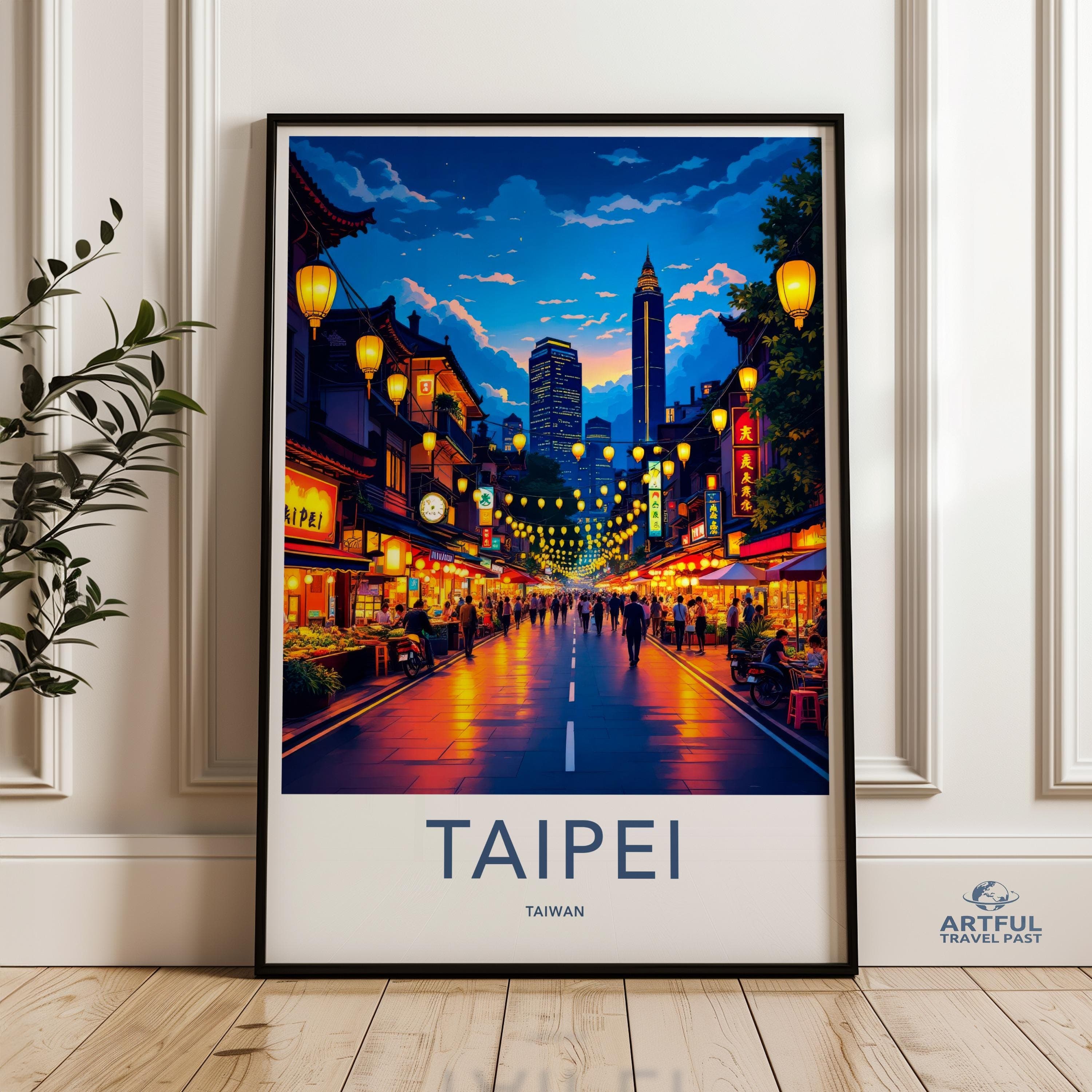 Discover the vibrant heart of Taipei, a city where ancient traditions meet modern innovation. This stunning wall art captures the bustling Shilin Night Market, renowned for its vivid neon lights and tantalizing street food. Taipei 101, one of the world's tallest skyscrapers, towers majestically in the background, symbolizing Taiwan's economic rise. Perfect for those who appreciate the blend of rich history and contemporary architecture.