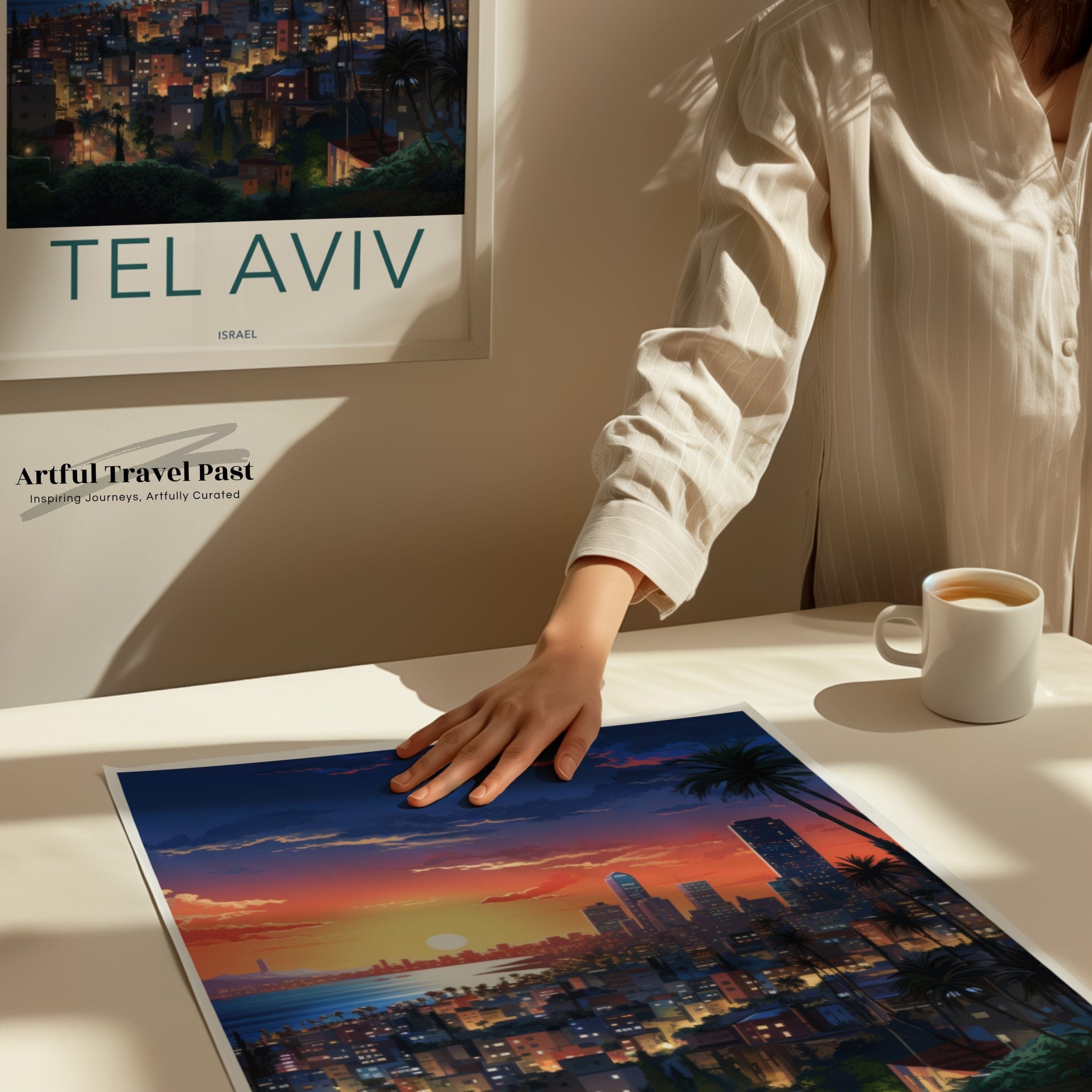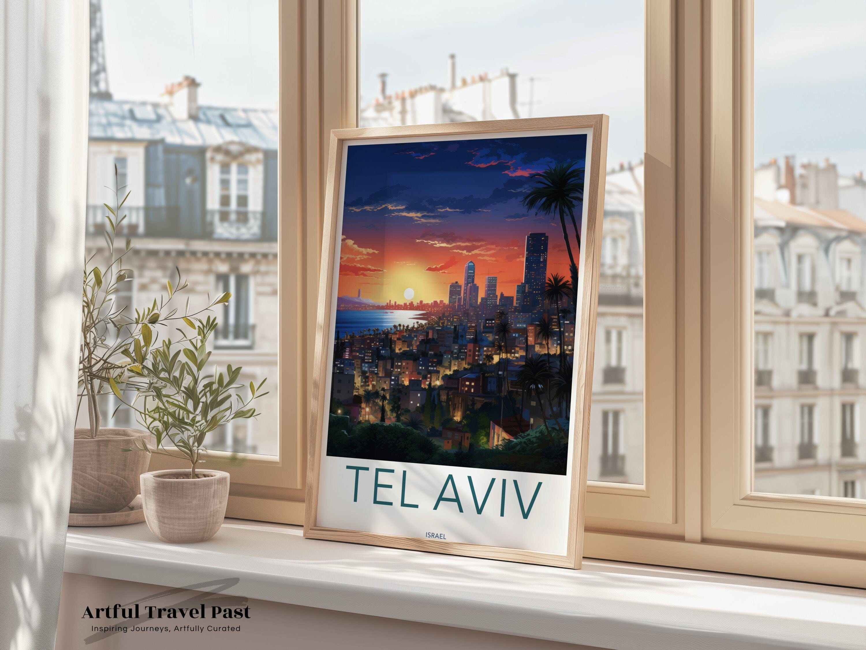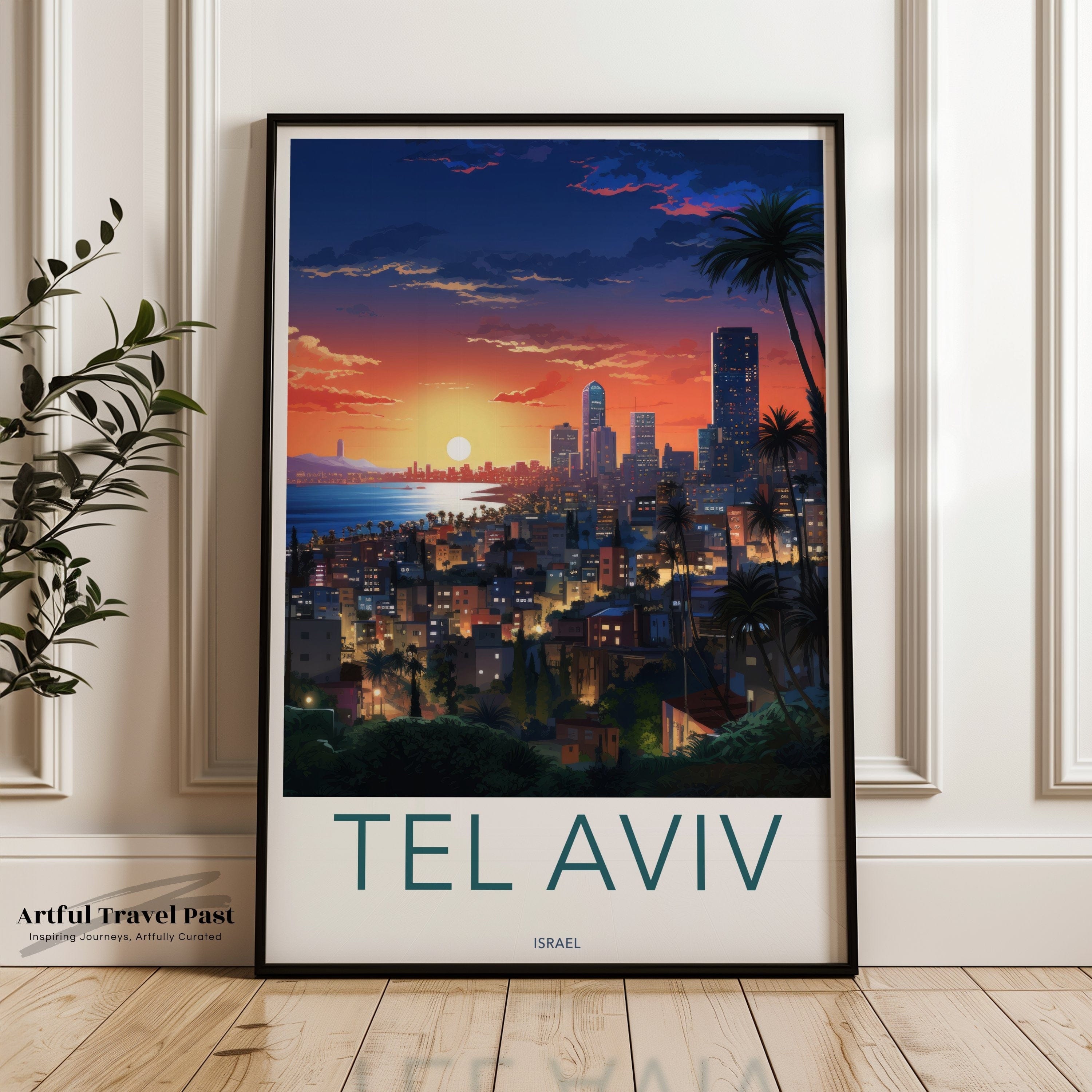 Discover Tel Aviv's vibrant cityscape with our stunning wall art. This print captures the breathtaking sunset over the city, highlighting its modern skyline. Experience the unique blend of historical significance and cultural landmarks, with scenic views that showcase the Mediterranean coastline and bustling urban life. Ideal for bringing a touch of Israel’s natural beauty and architectural marvels into your space. Perfect for lovers of travel, history, and culture.