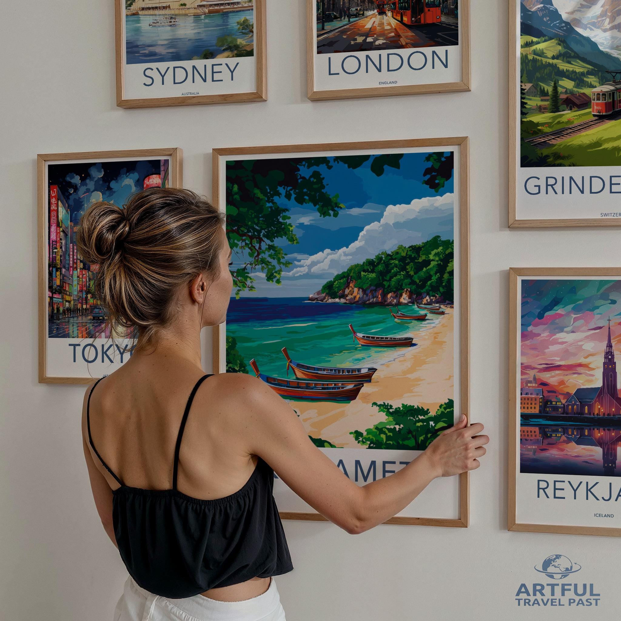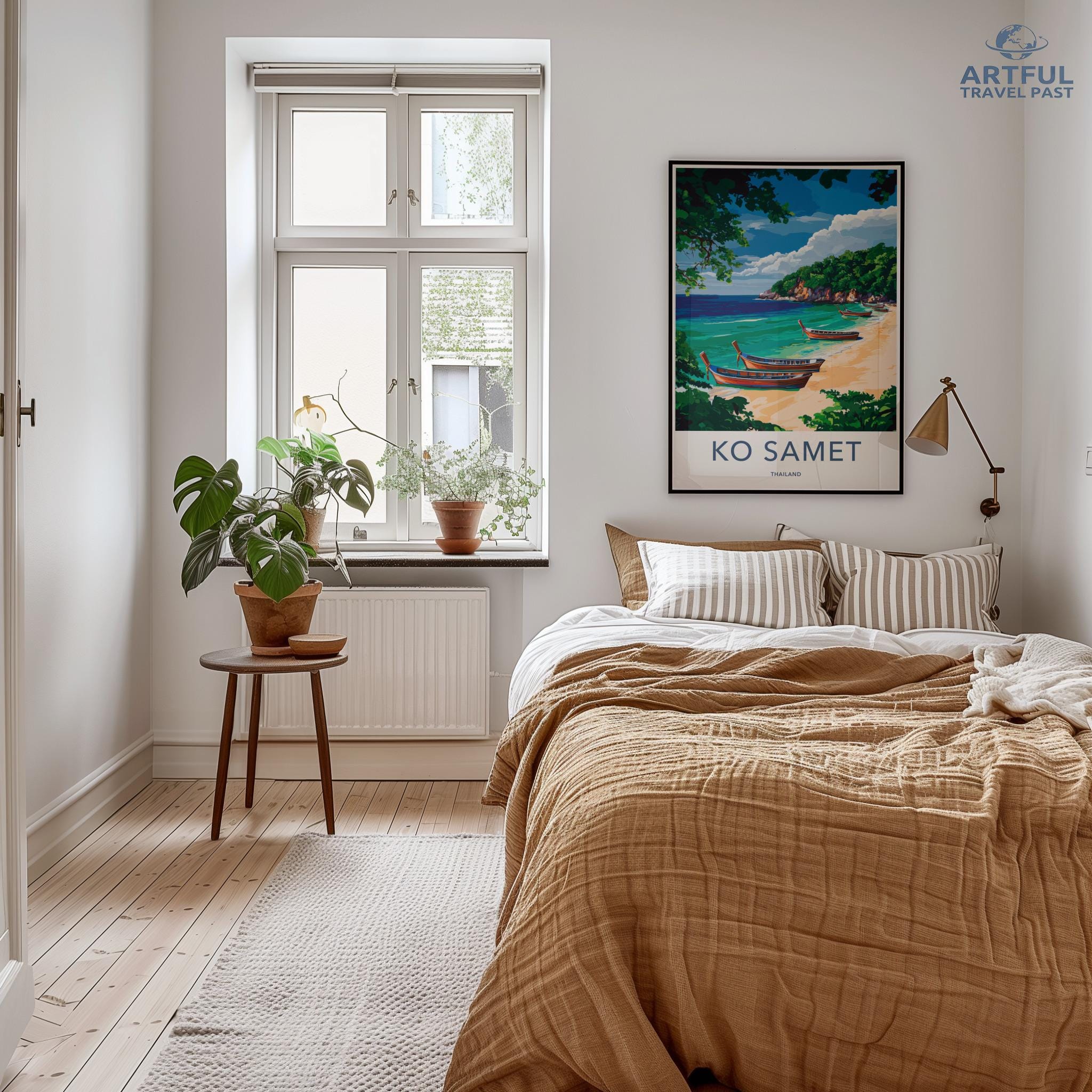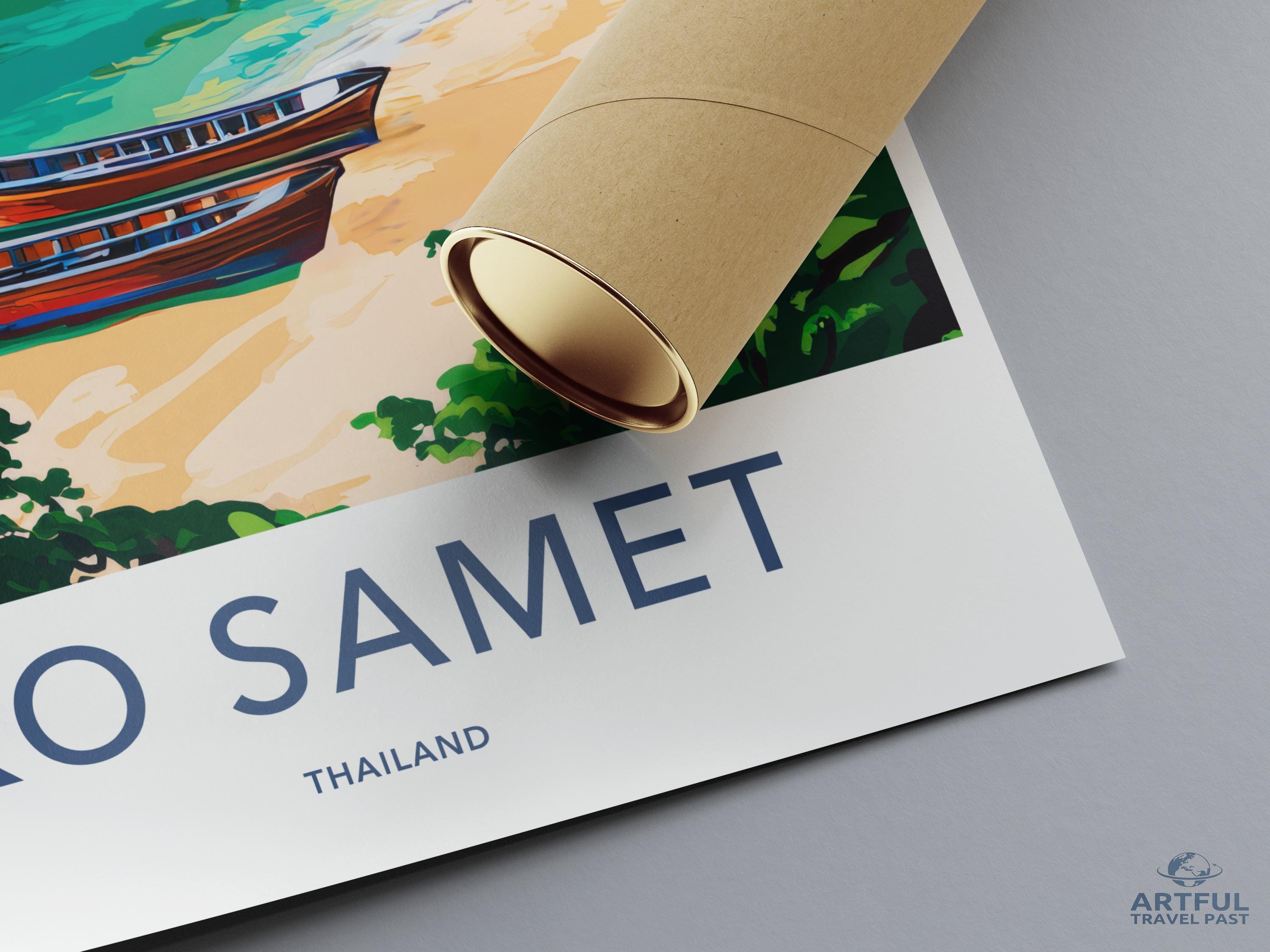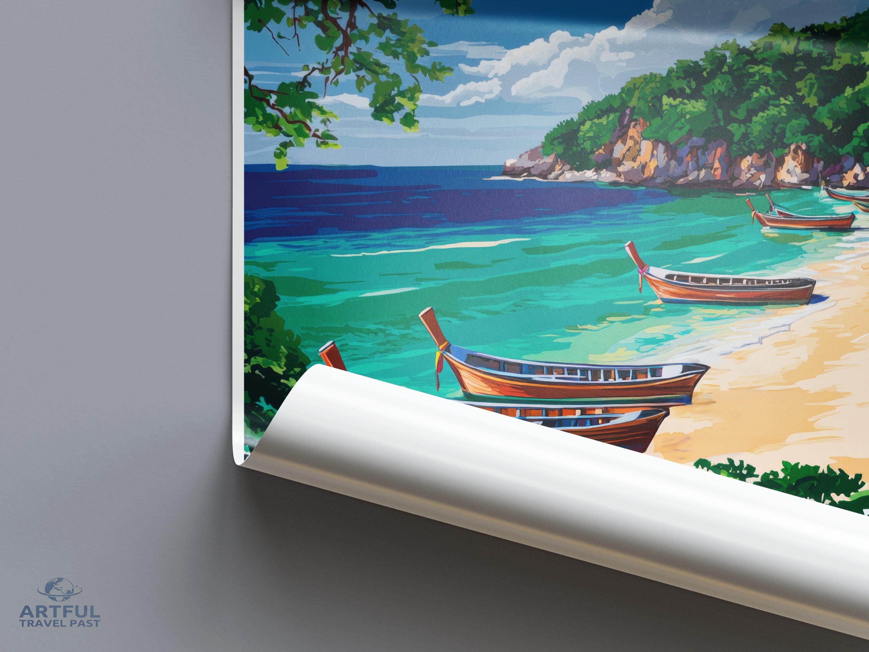Add a touch of tropical paradise to your space with this vibrant wall art of Ko Samet, Thailand. Located in the Rayong Province, Ko Samet is renowned for its pristine beaches, crystal-clear waters, and lush greenery. This island is steeped in folklore and has long been a refuge for both locals and travelers seeking tranquility and natural beauty. Enjoy the picturesque views and serene ambiance from the comfort of your home.