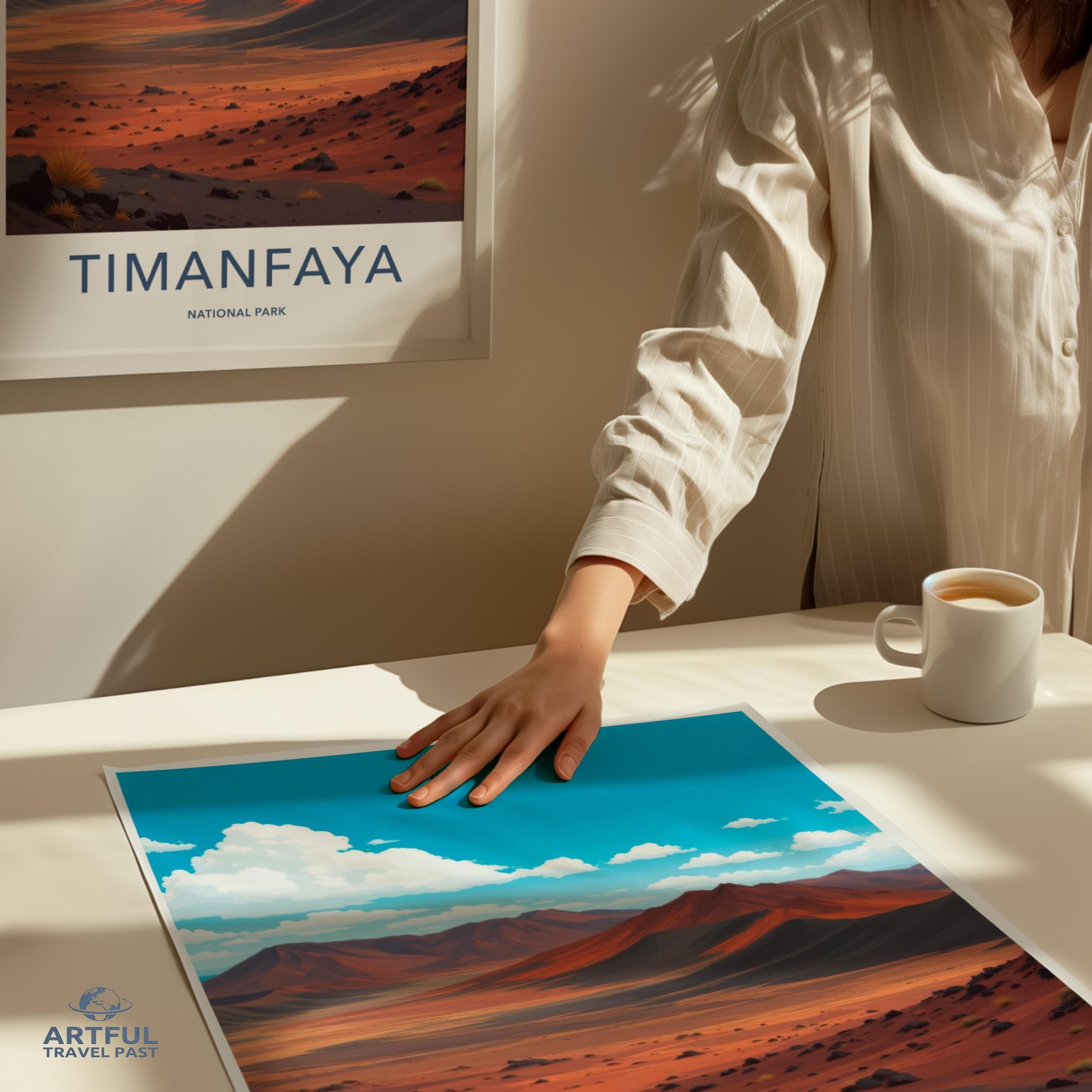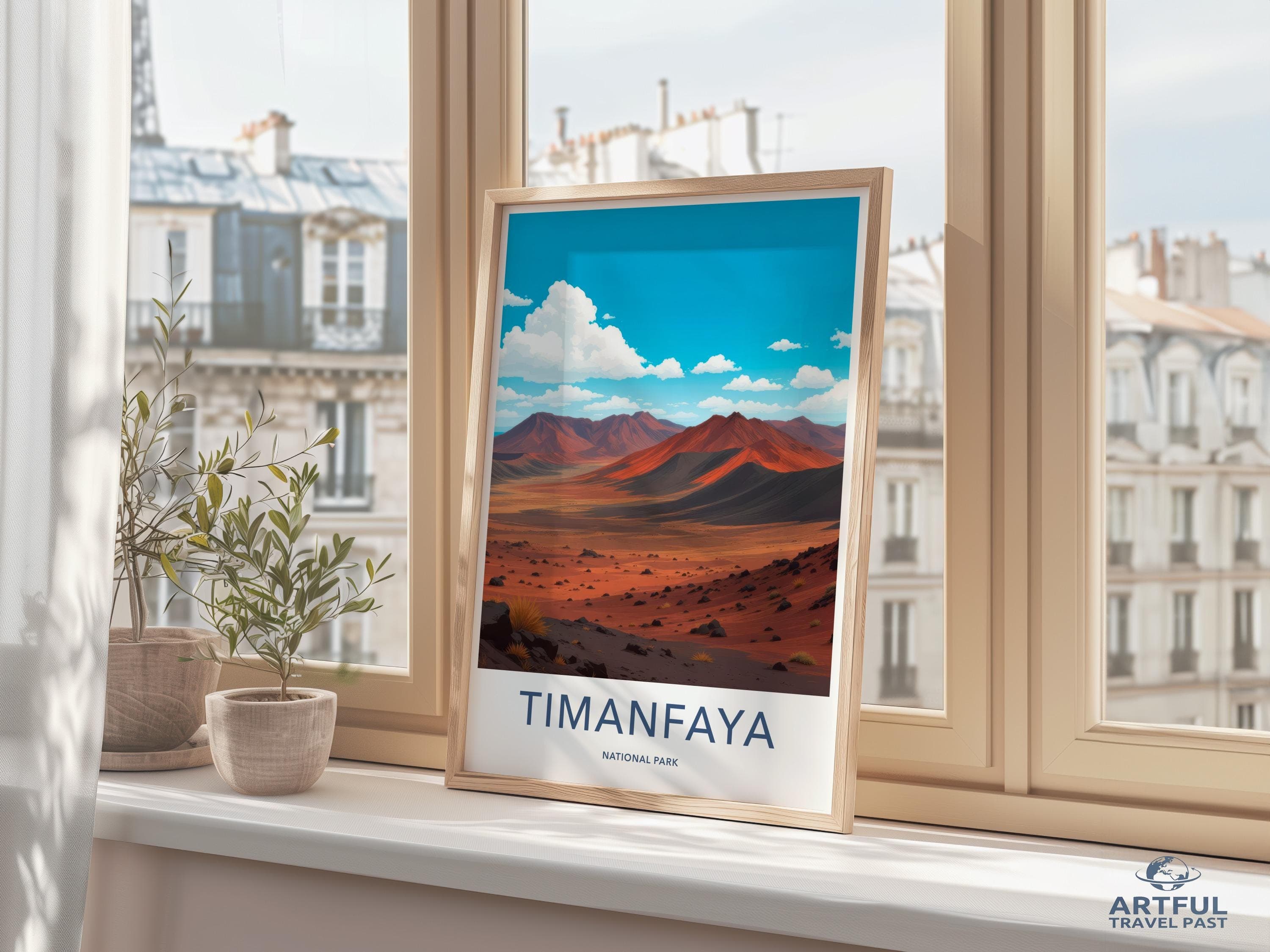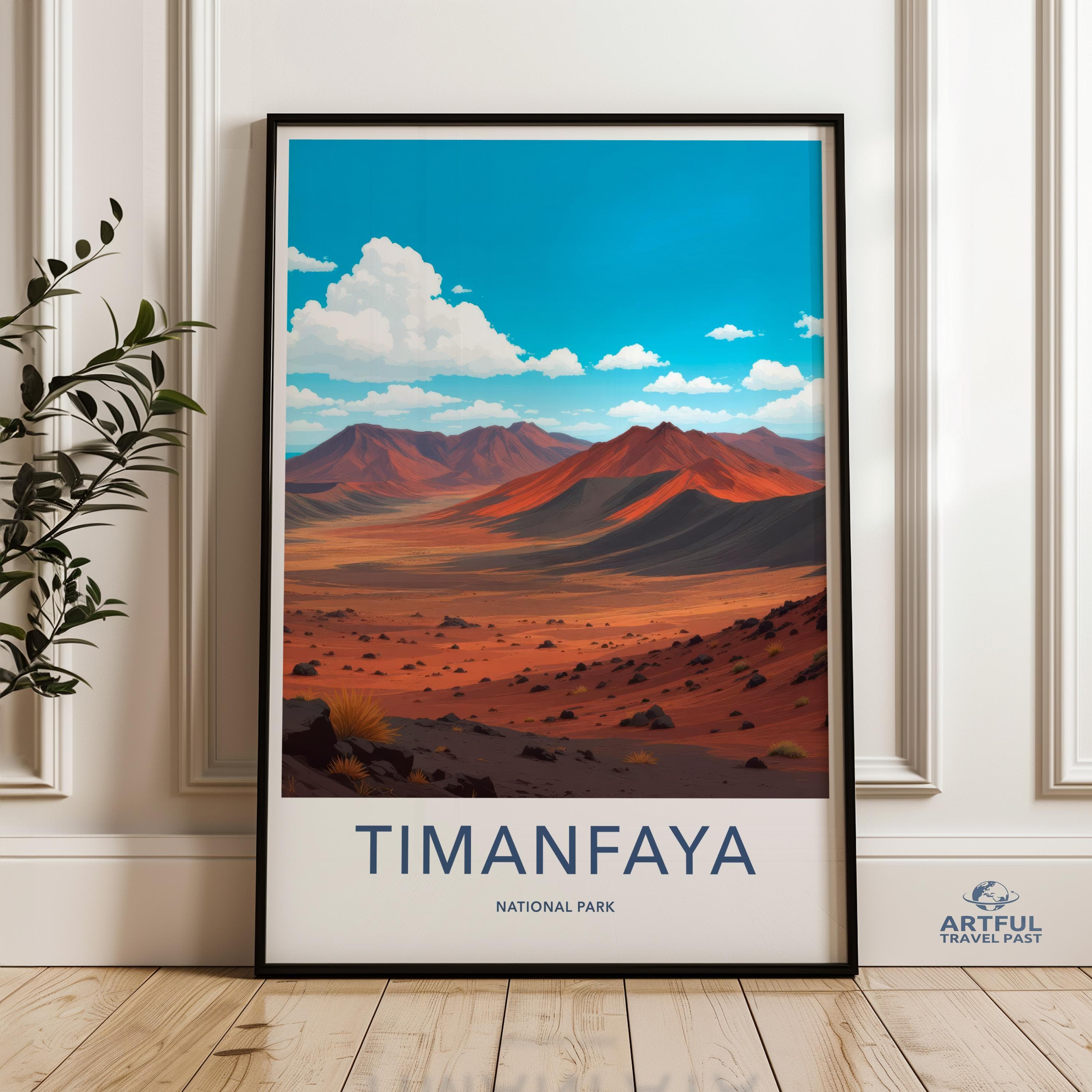This stunning wall art captures the vibrant beauty of Timanfaya National Park, located on the volcanic island of Lanzarote in the Canary Islands. Known for its otherworldly landscape, created by volcanic eruptions in the 18th century, Timanfaya boasts striking red and black lava fields, geothermal geysers, and rugged terrain. The park’s unique geological formations and dramatic scenery make it a mesmerizing and unforgettable destination.