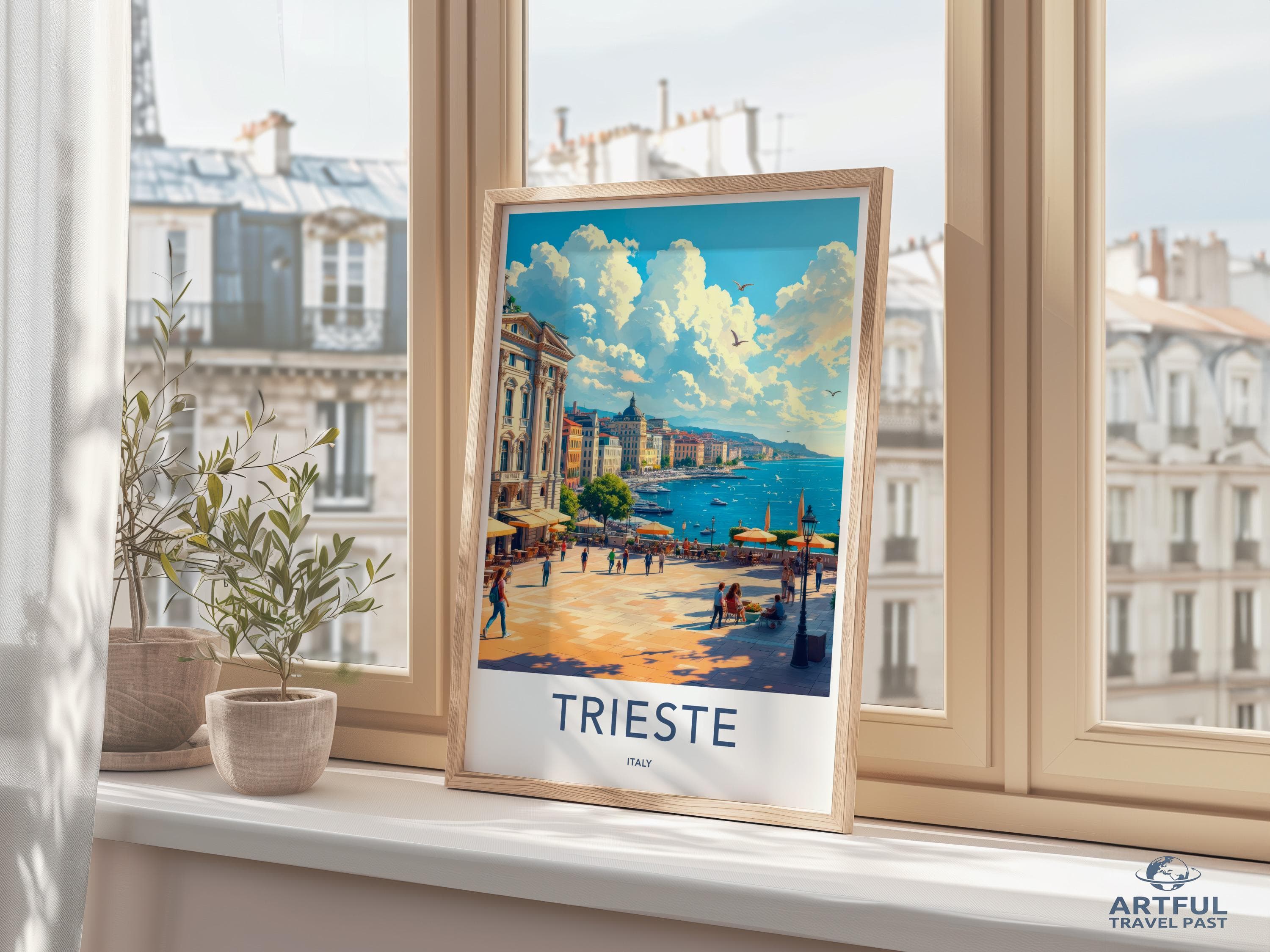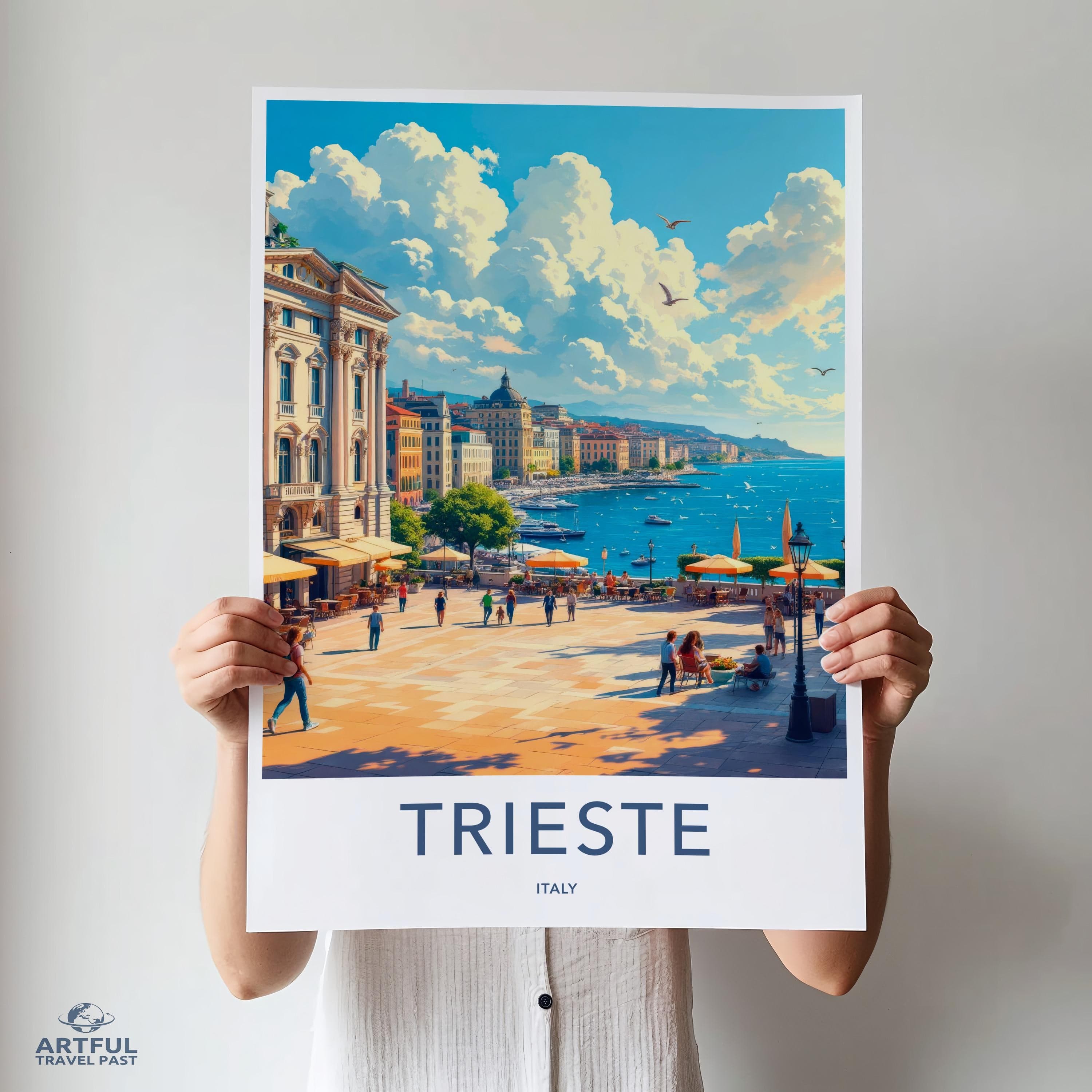 Discover the enchanting charm of Trieste, a captivating coastal city in northeastern Italy. With its rich blend of Italian, Austro-Hungarian, and Slovenian influences, Trieste boasts stunning architecture, vibrant cafes, and a bustling port. Wander through Piazza Unità d'Italia, one of the largest sea-facing squares in Europe, and soak in the breathtaking views of the Adriatic Sea. Perfectly suited for any wall, this art piece encapsulates the timeless allure of Trieste.