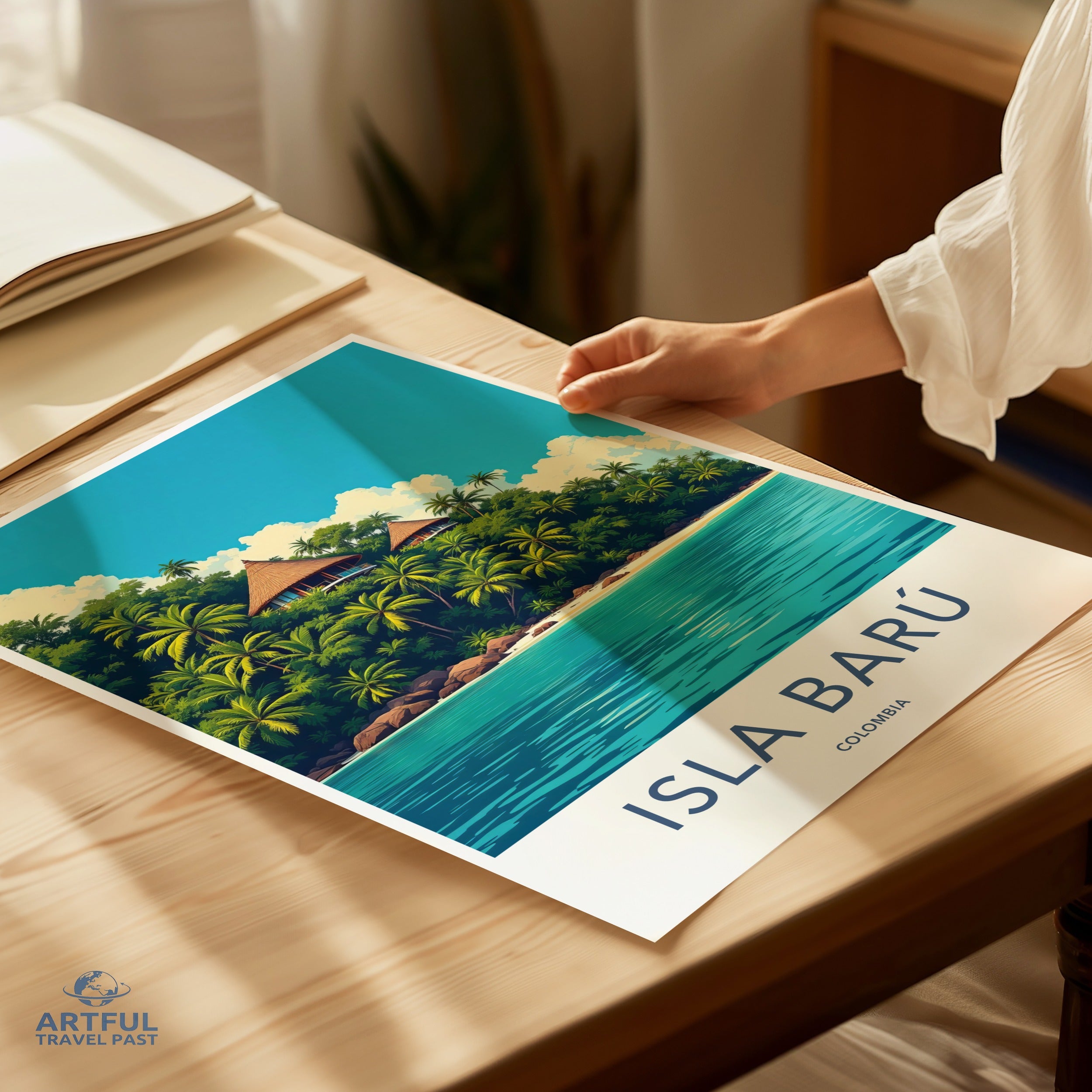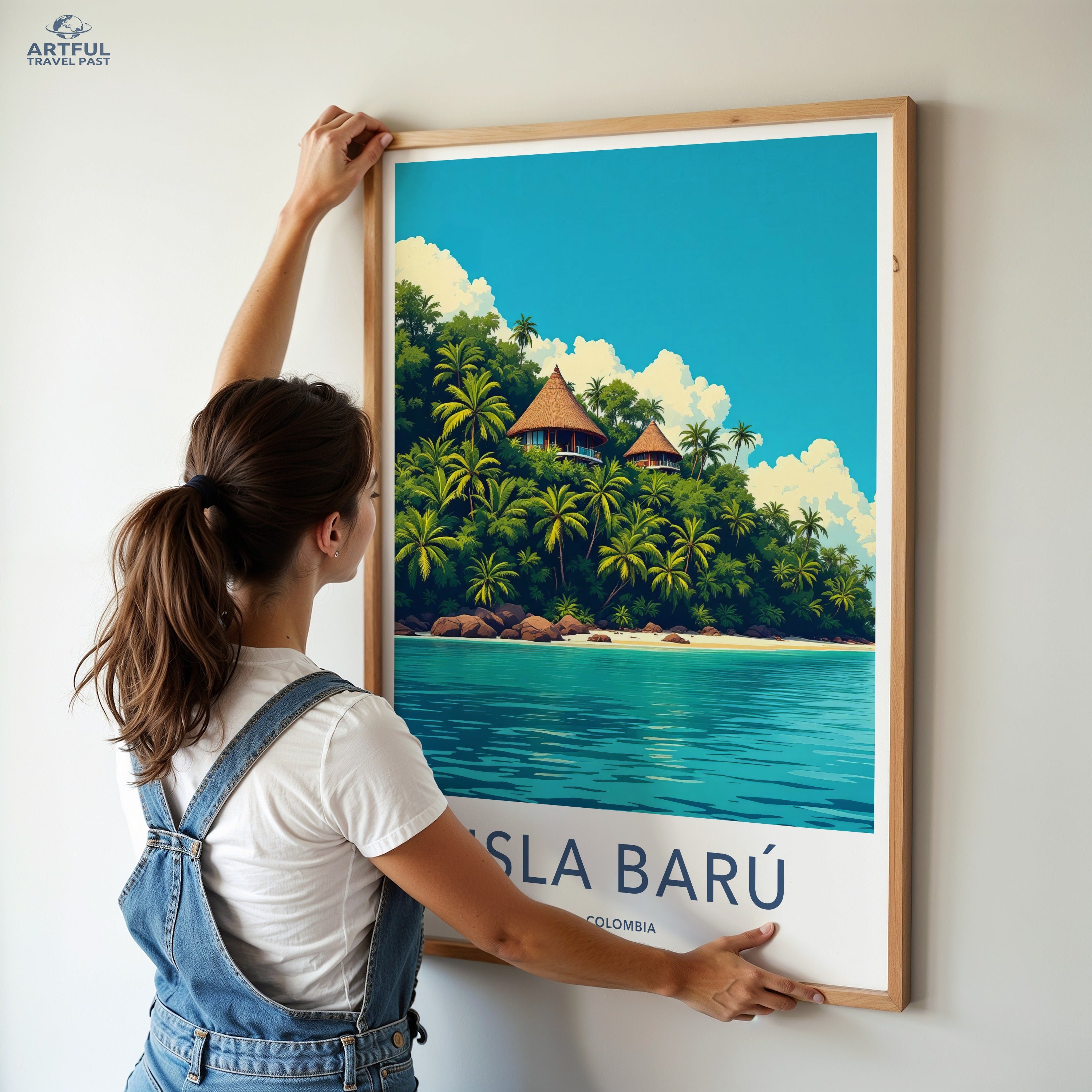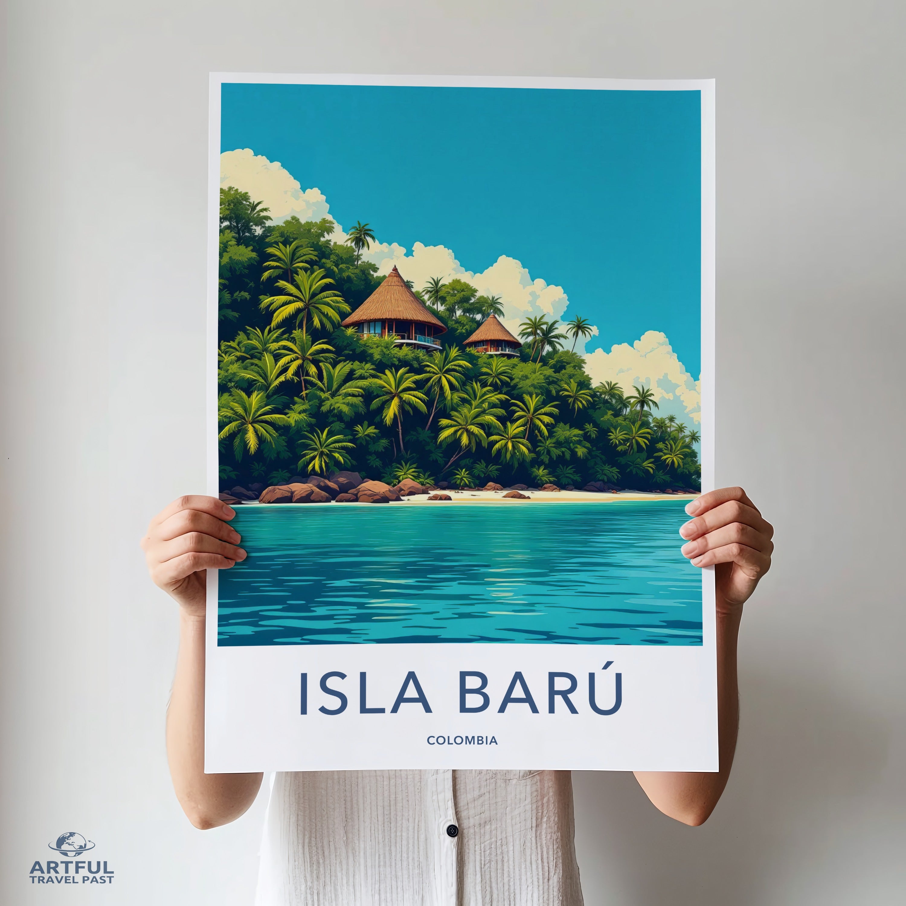 Experience the serene beauty of Isla Barú, Colombia, with this vibrant wall art piece. Nestled off the coast of Cartagena, Isla Barú is renowned for its white sandy beaches, crystal-clear waters, and lush palm trees. This tropical paradise is a retreat for those seeking to escape the hustle and bustle, offering picturesque landscapes and rich cultural history that date back to the indigenous Zenú people. A true gem of the Caribbean!
