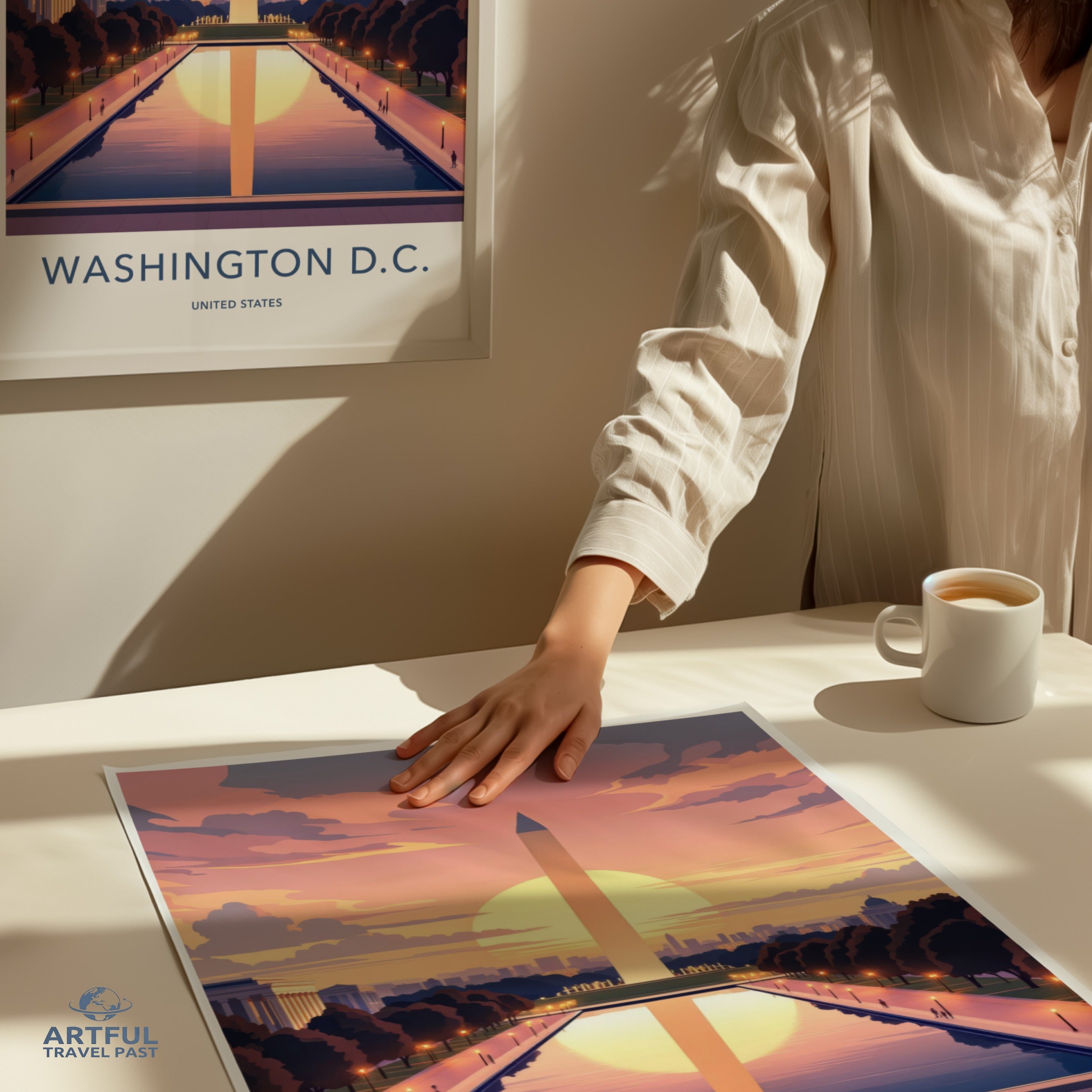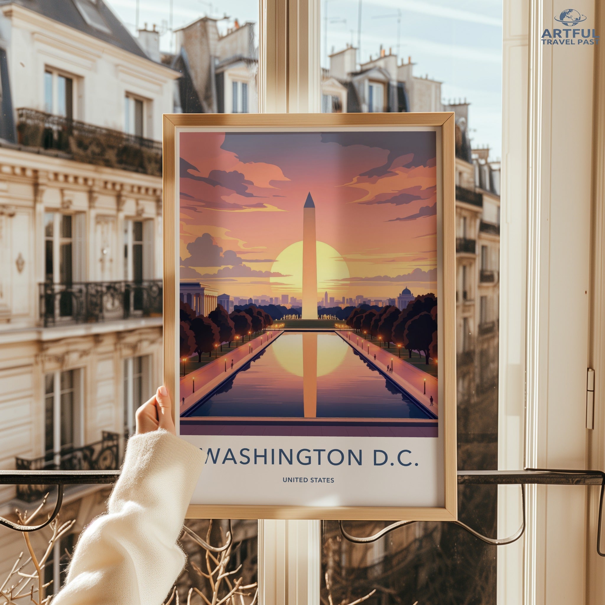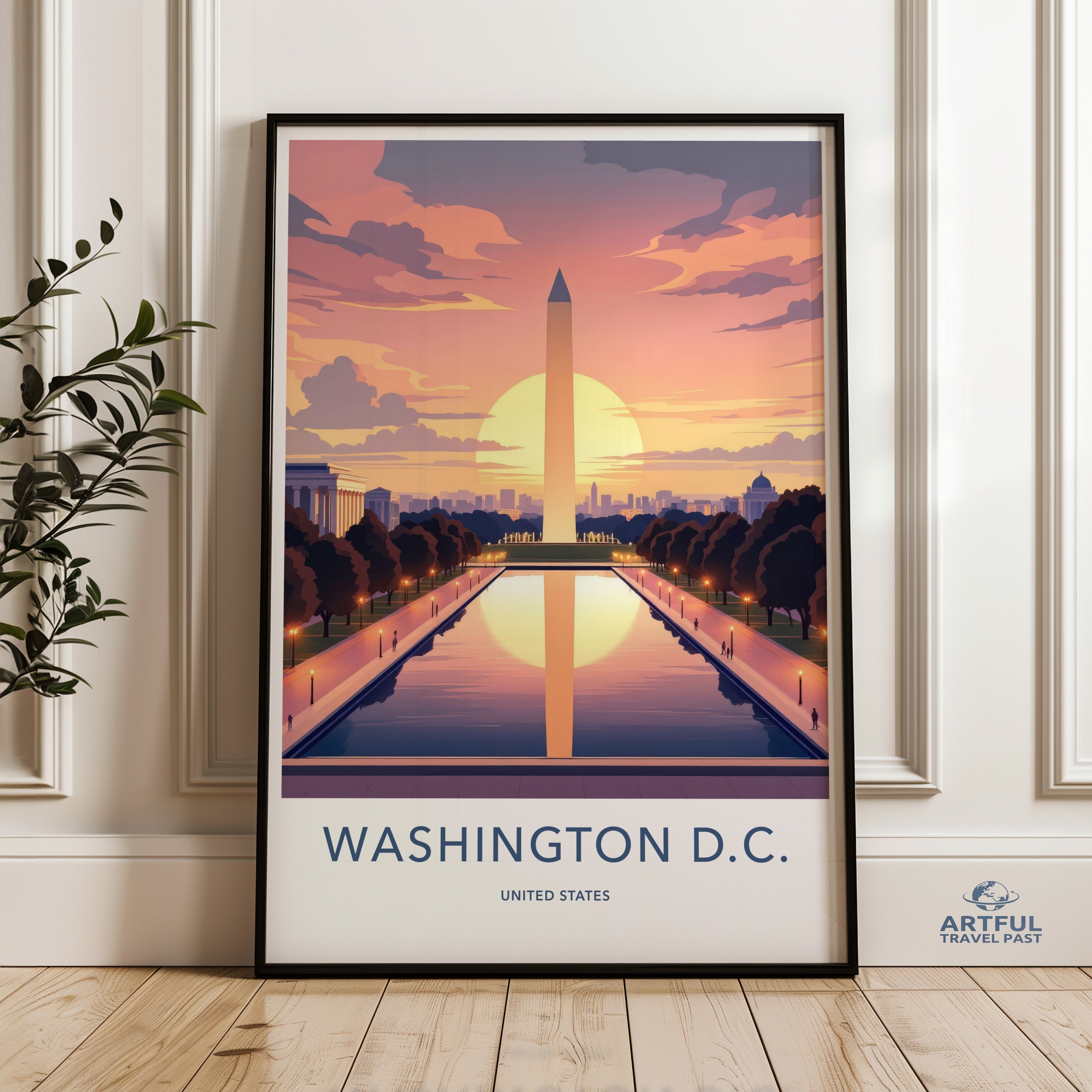 This stunning Wall Art captures the essence of Washington D.C. as the sun sets behind the iconic Washington Monument, casting a warm glow over the Reflecting Pool. Founded in 1791, the capital city of the United States is renowned for its historic landmarks, such as the Lincoln Memorial and Capitol Hill. The blend of neoclassical architecture and lush greenery makes Washington D.C. an enduring symbol of American heritage and beauty.