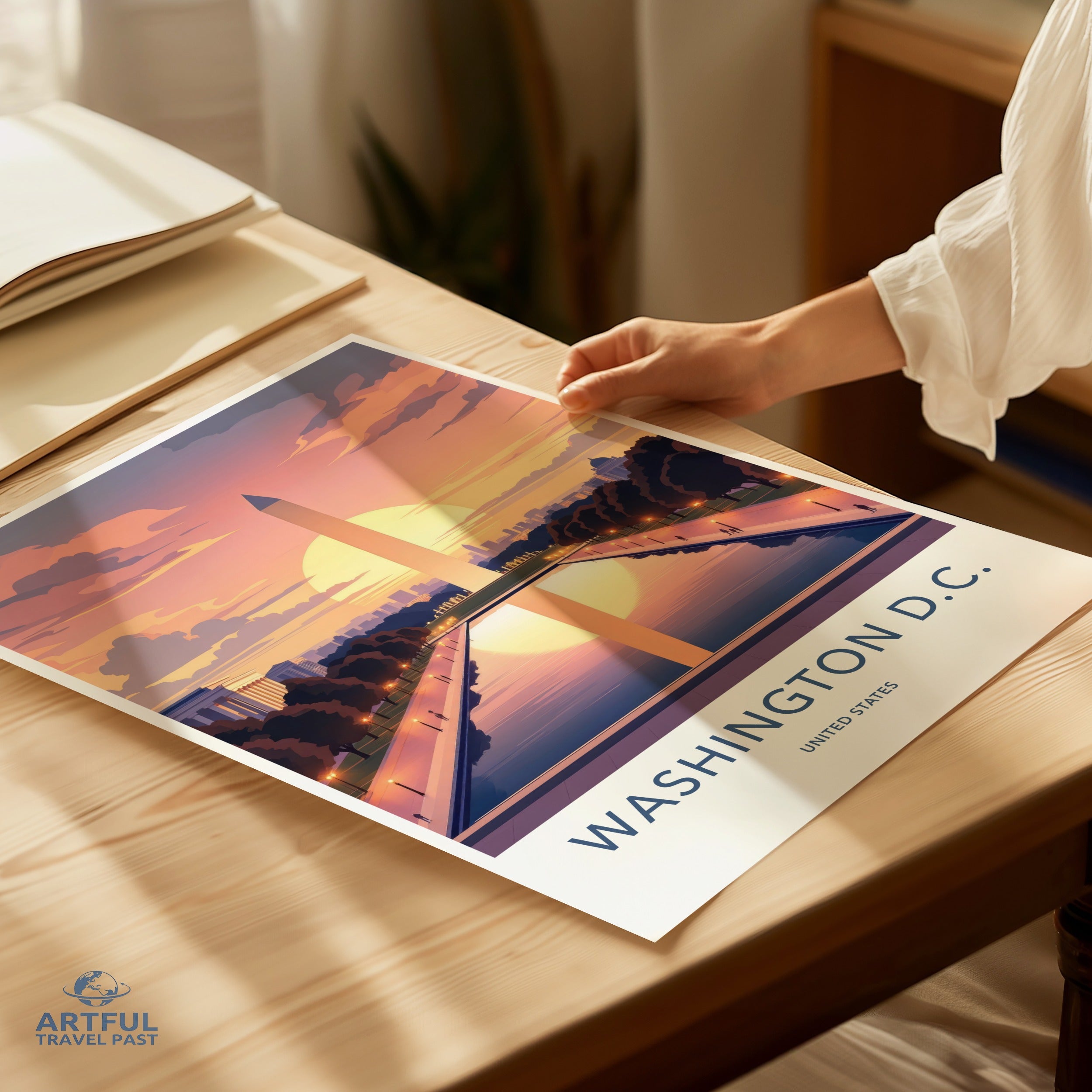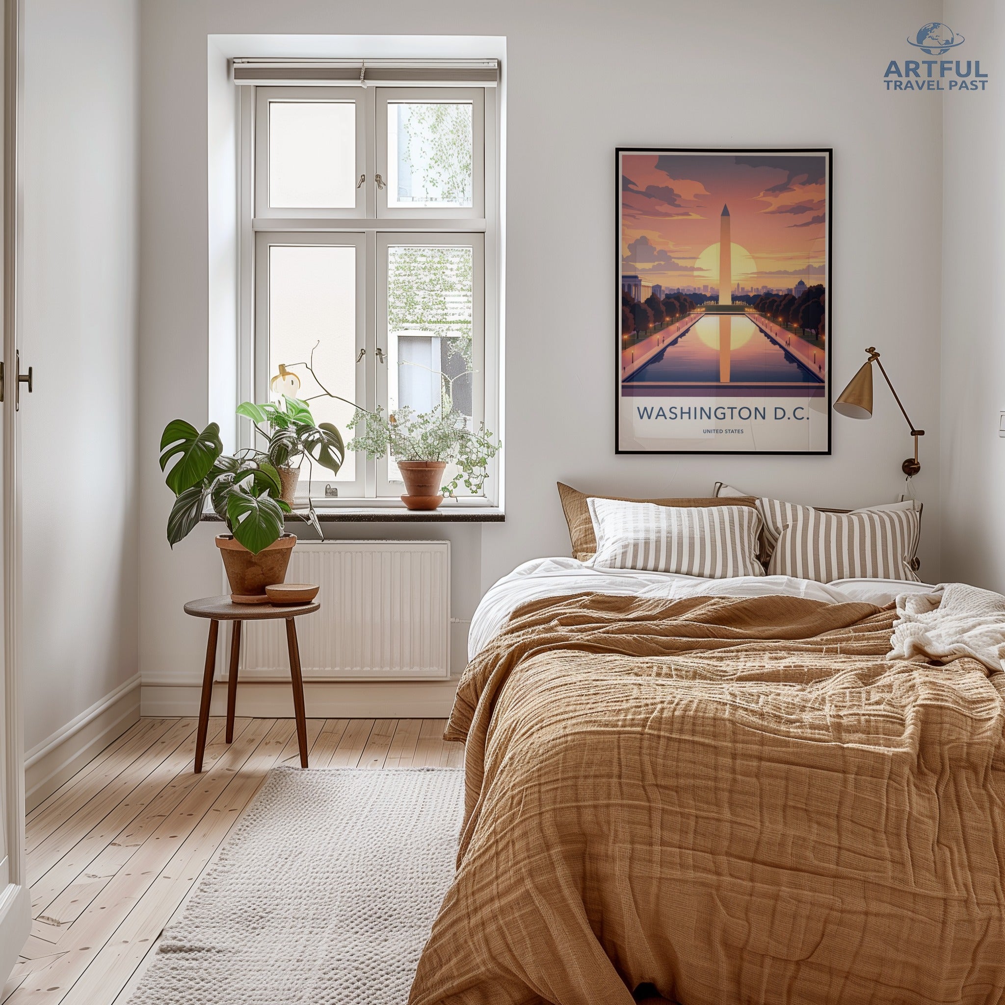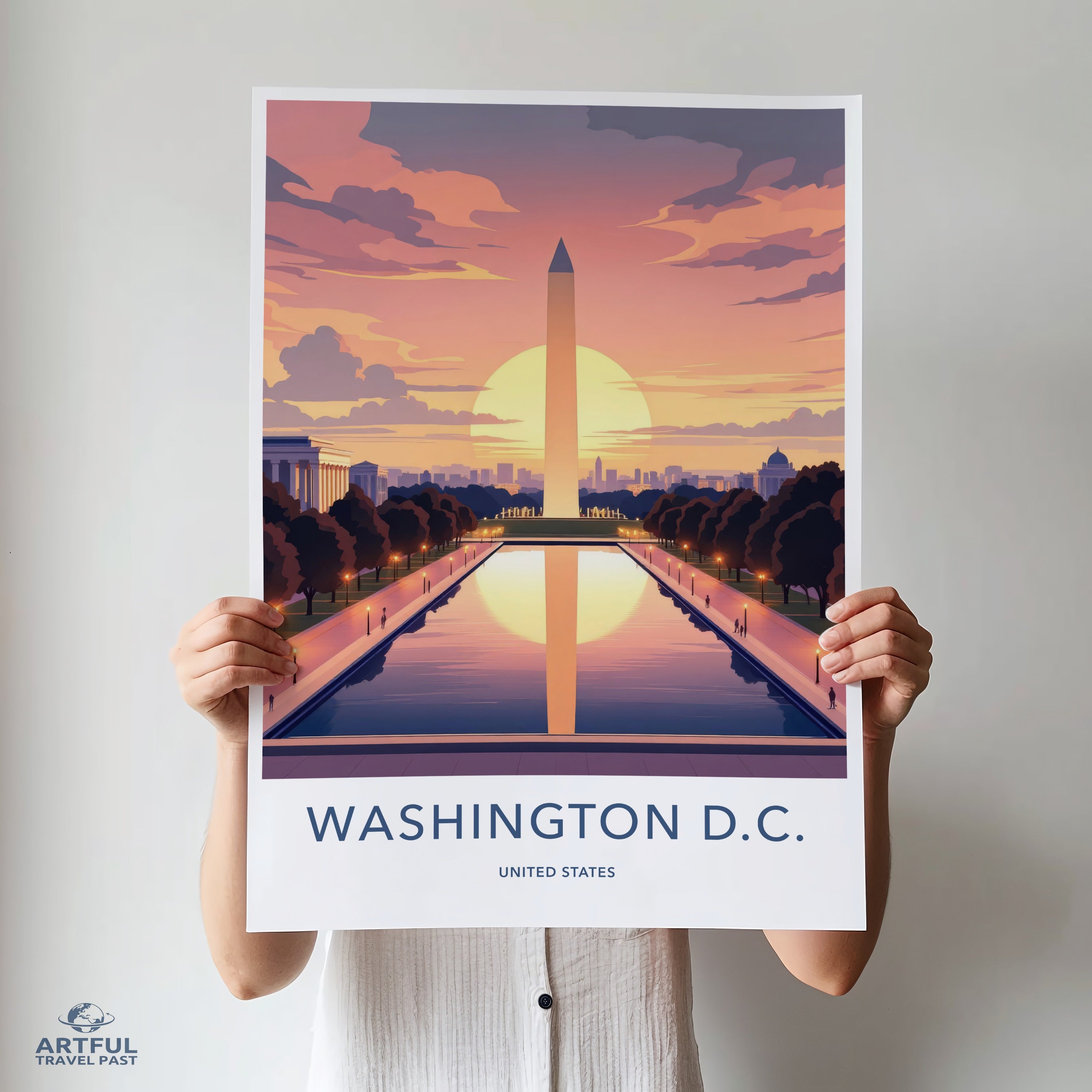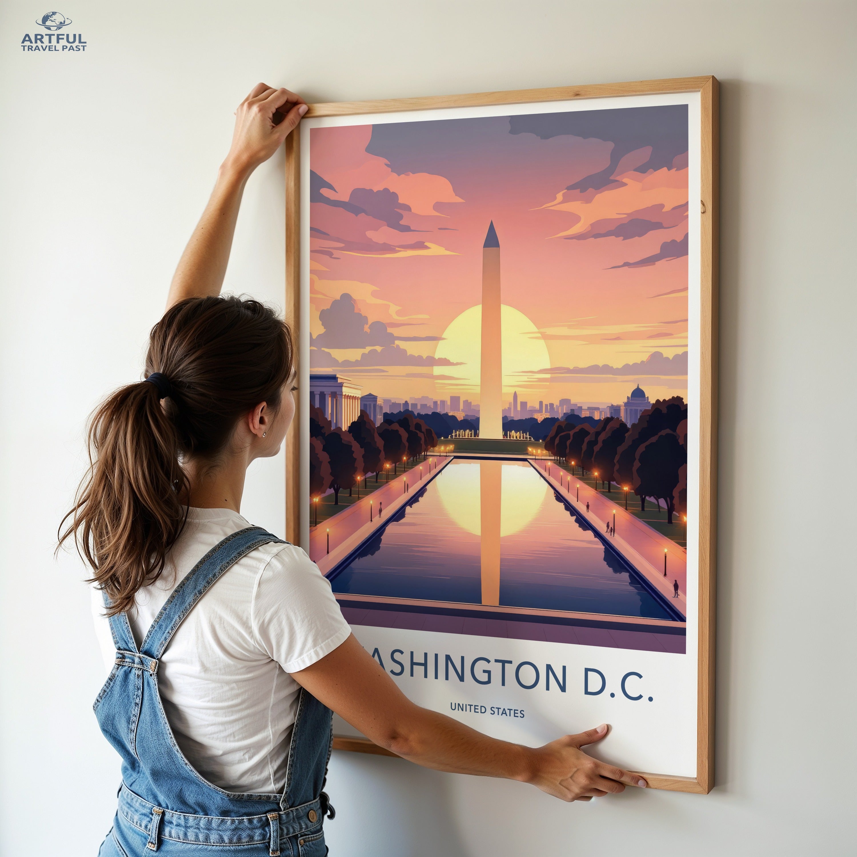 This stunning Wall Art captures the essence of Washington D.C. as the sun sets behind the iconic Washington Monument, casting a warm glow over the Reflecting Pool. Founded in 1791, the capital city of the United States is renowned for its historic landmarks, such as the Lincoln Memorial and Capitol Hill. The blend of neoclassical architecture and lush greenery makes Washington D.C. an enduring symbol of American heritage and beauty.