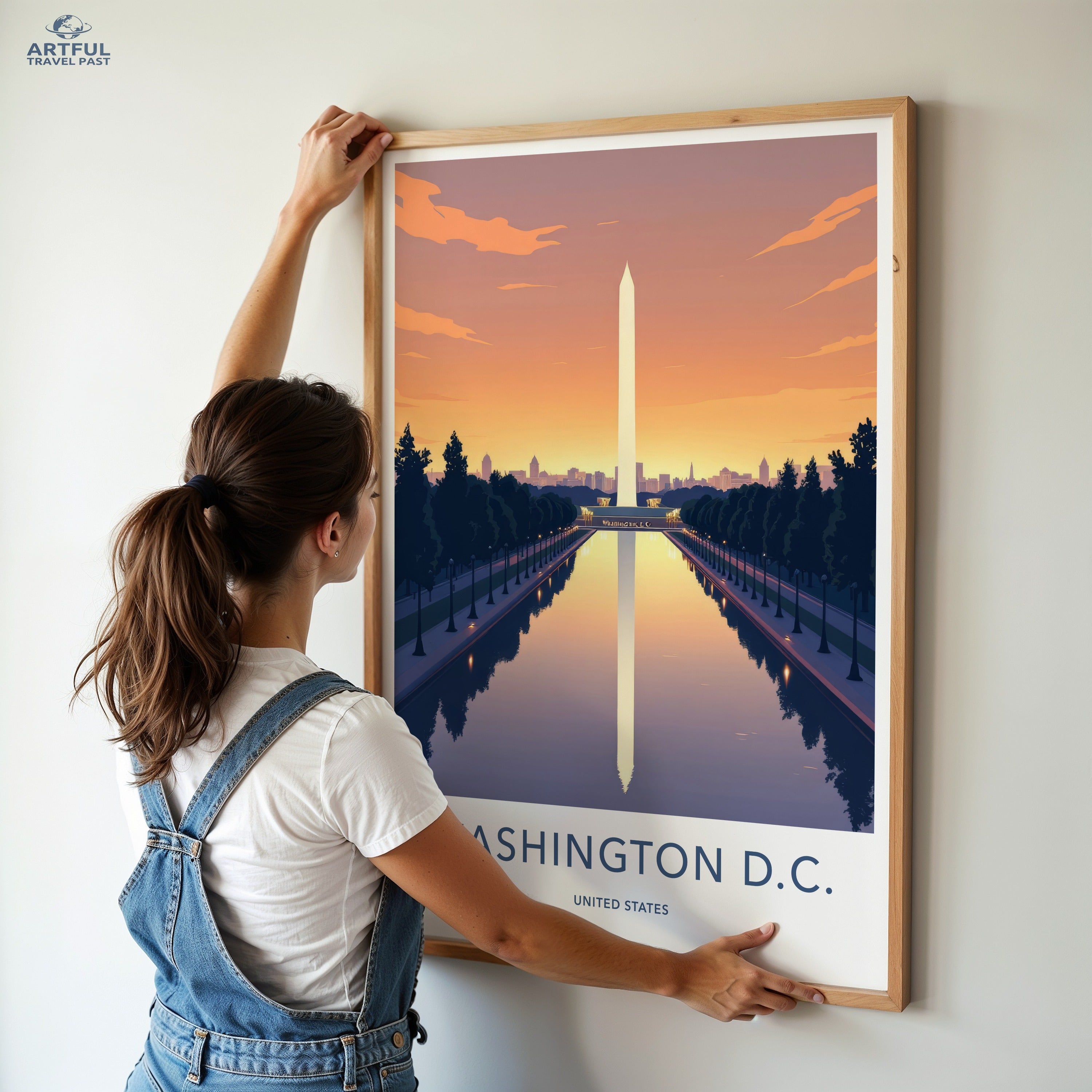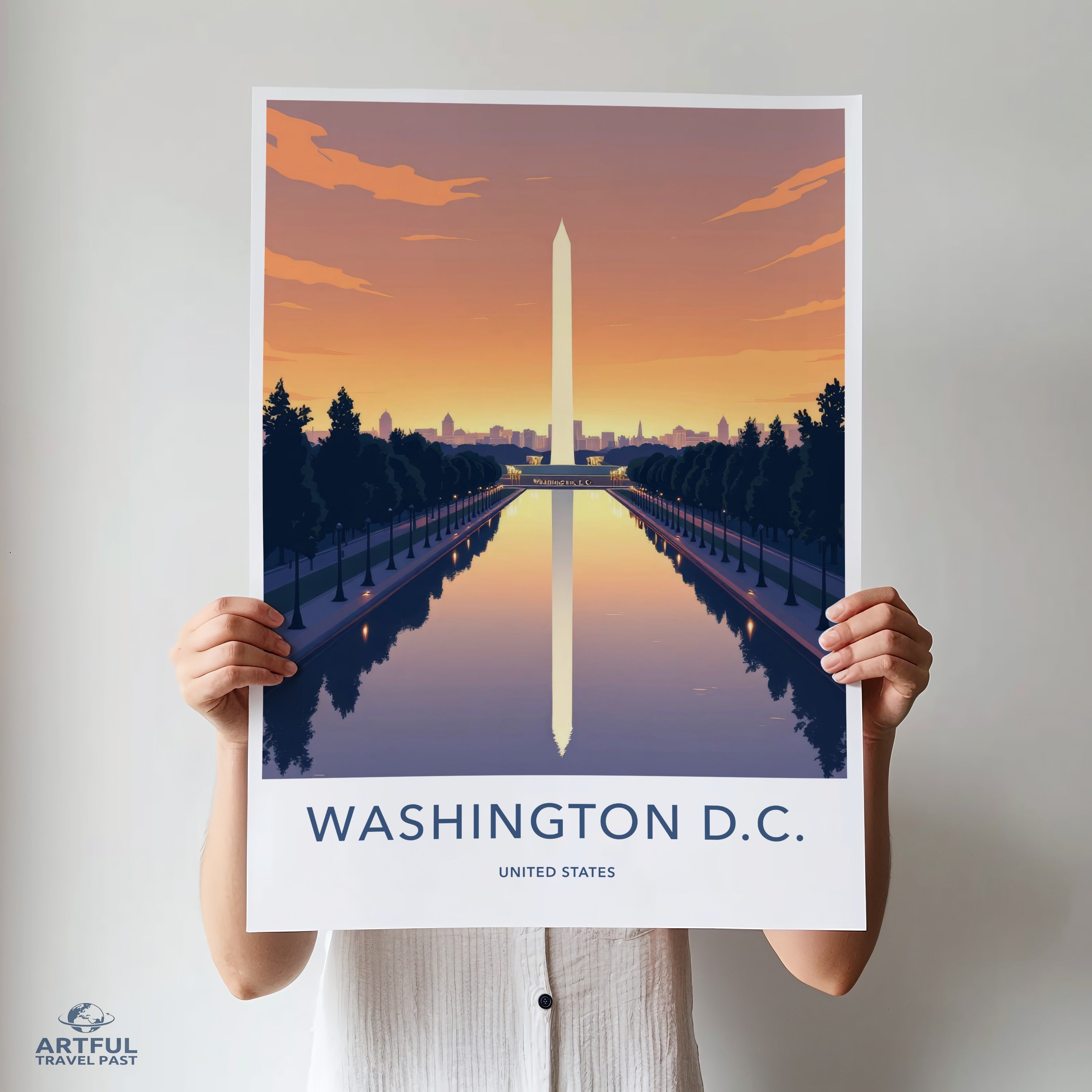 This stunning wall art captures the iconic Washington D.C. at twilight. With the Washington Monument majestically reflecting in the Reflecting Pool, this piece brings out the capital’s historical grandeur and architectural beauty. Founded in 1790, Washington D.C. is home to numerous significant landmarks, such as the White House and Capitol Hill, symbolizing the heart of American democracy. This print offers a serene yet powerful view of the city and its storied past.