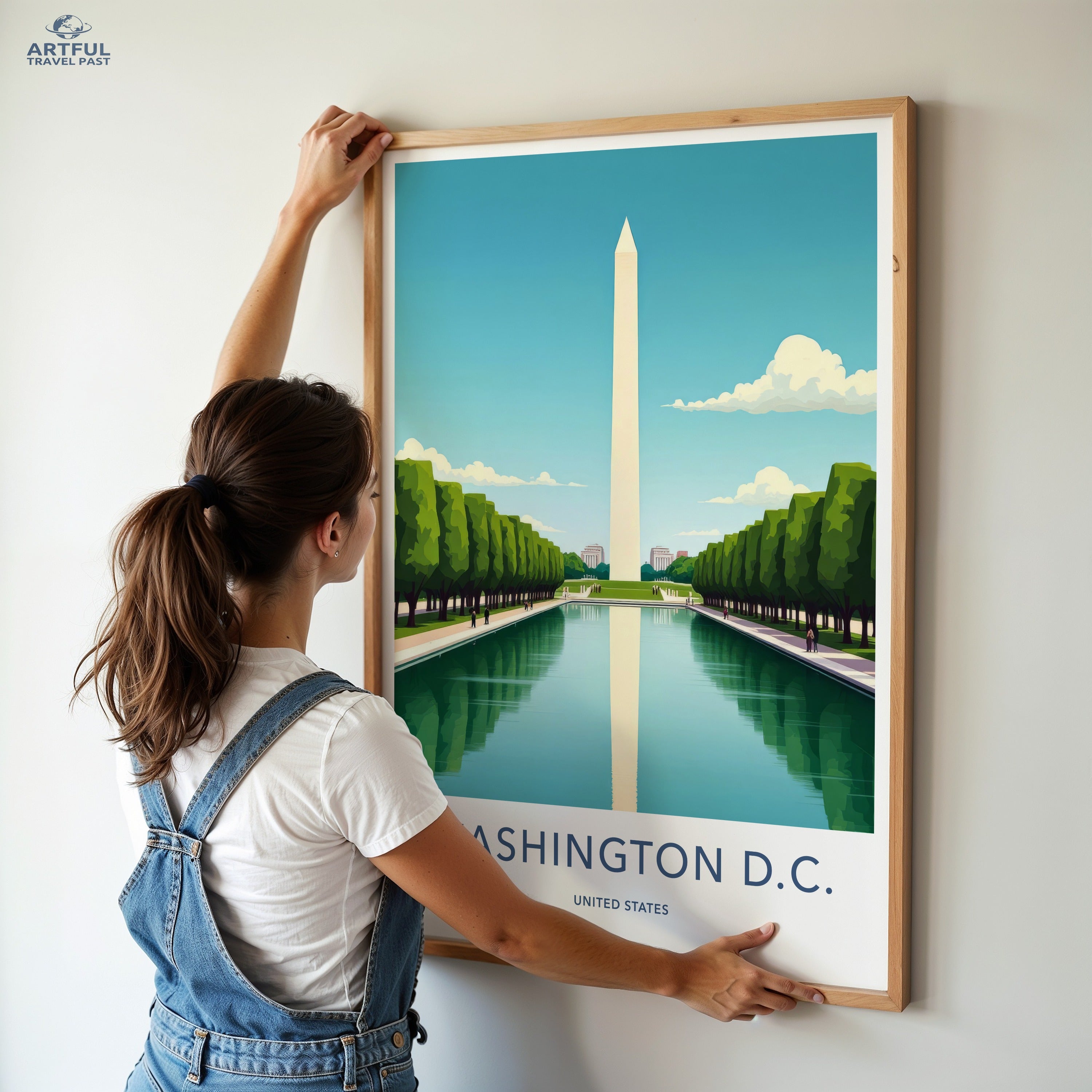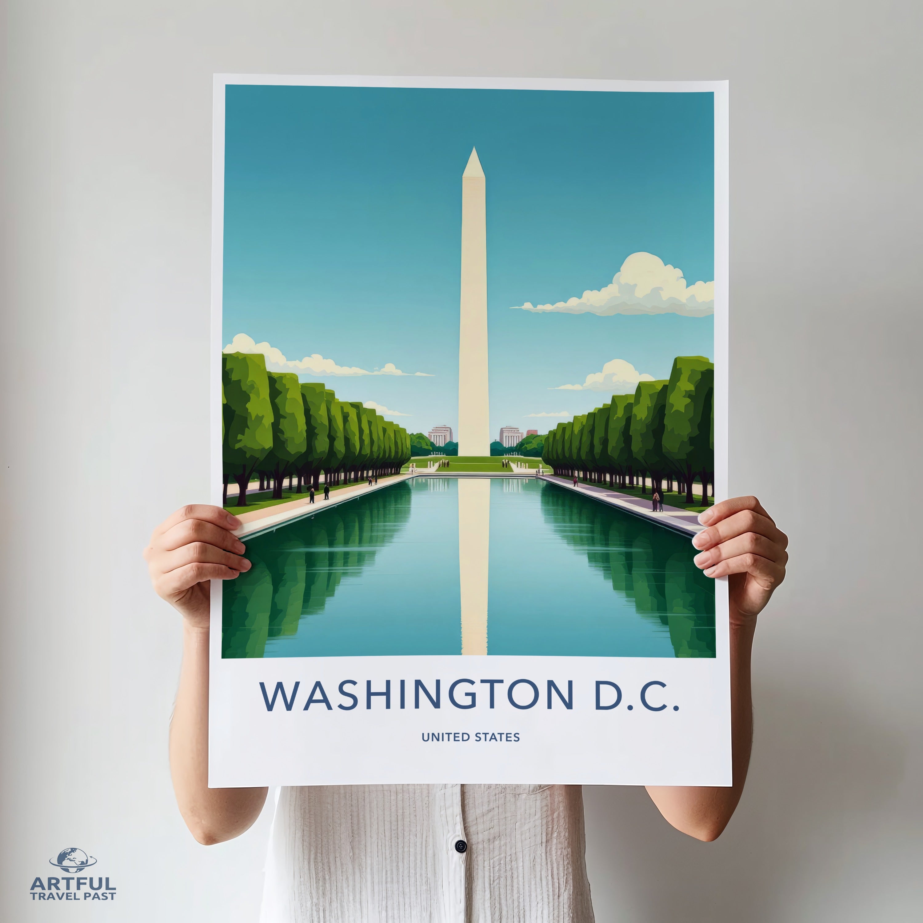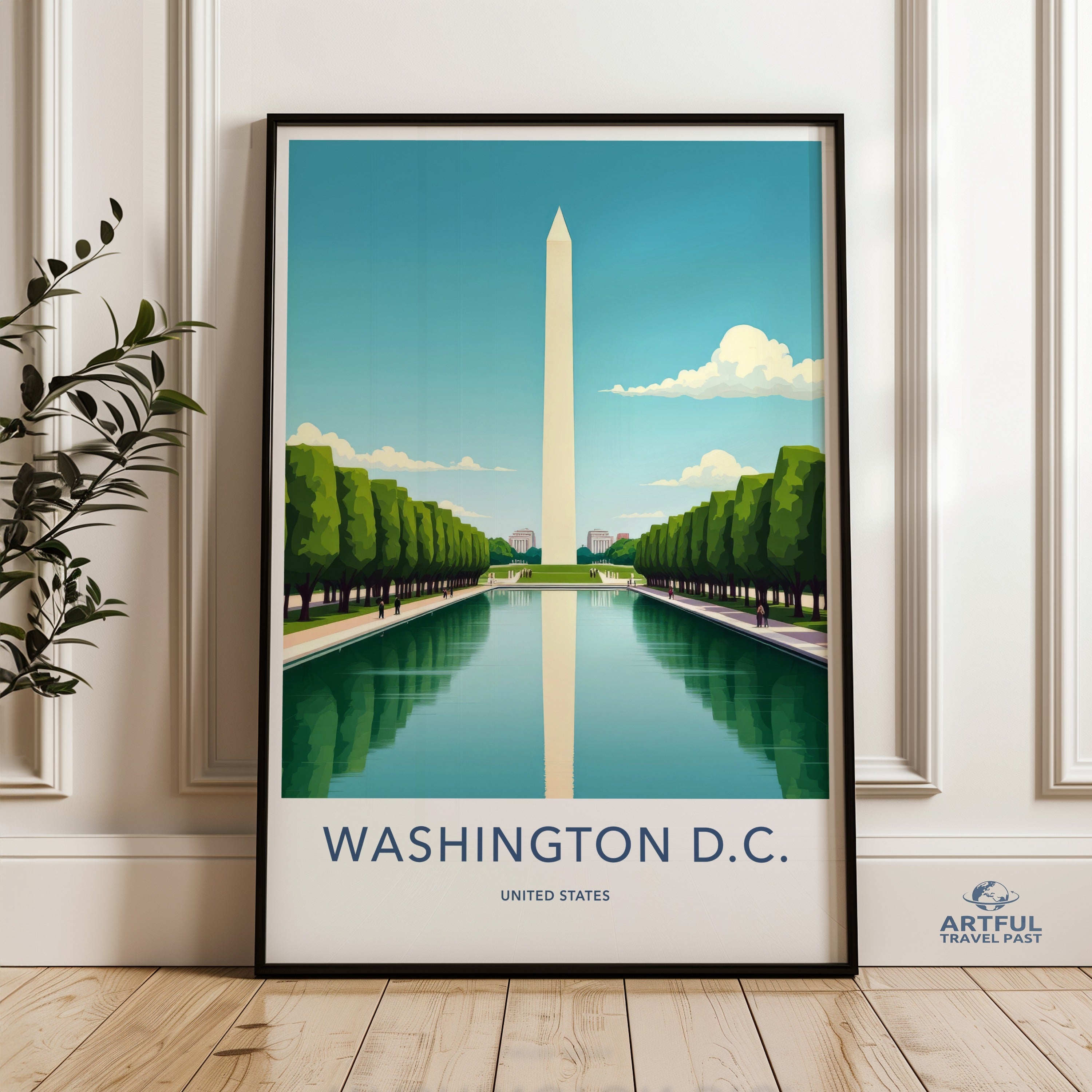 Capture the iconic essence of Washington D.C. with this stunning wall art, featuring the majestic Washington Monument. Standing tall and proud, the monument overlooks the serene Reflecting Pool, framed by lush trees and clear blue skies. Established in 1885, this historic landmark symbolizes the nation's capital's rich heritage and significance. Perfect for adding a touch of architectural grandeur and patriotic spirit to any space.