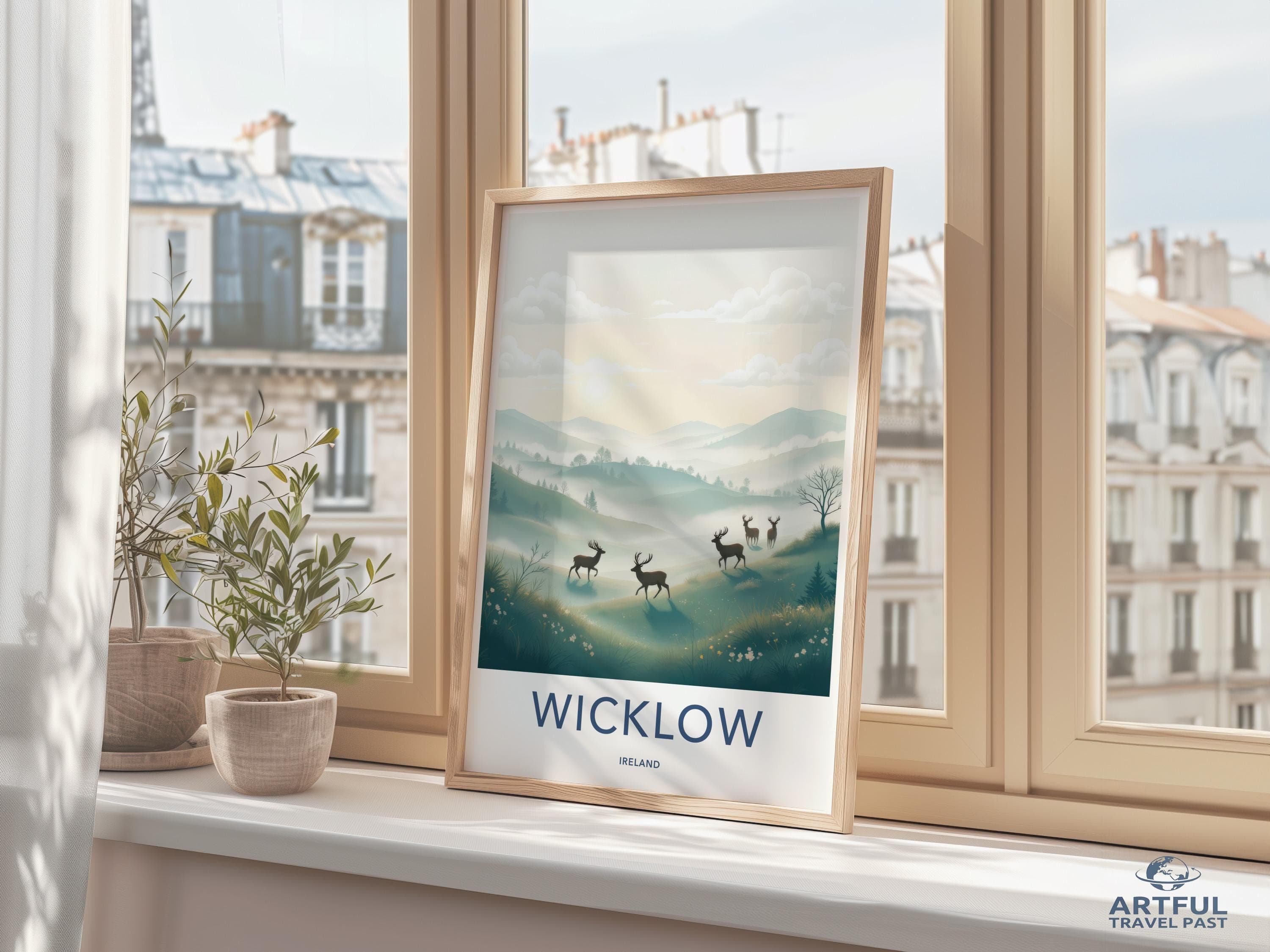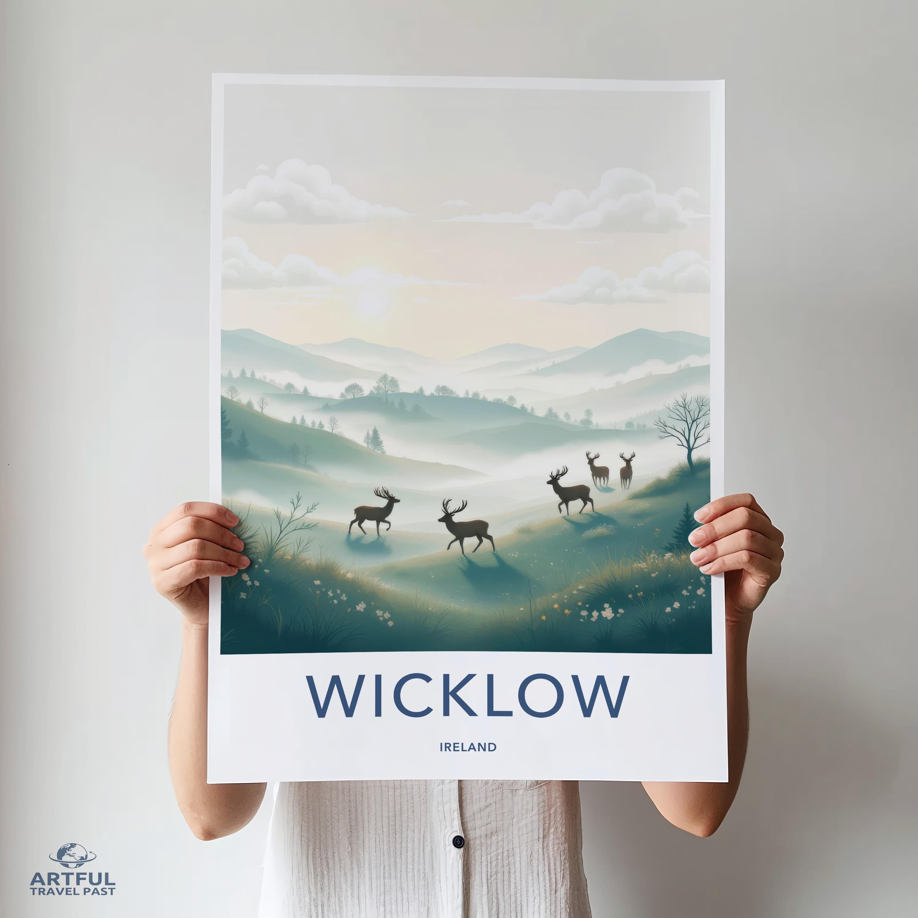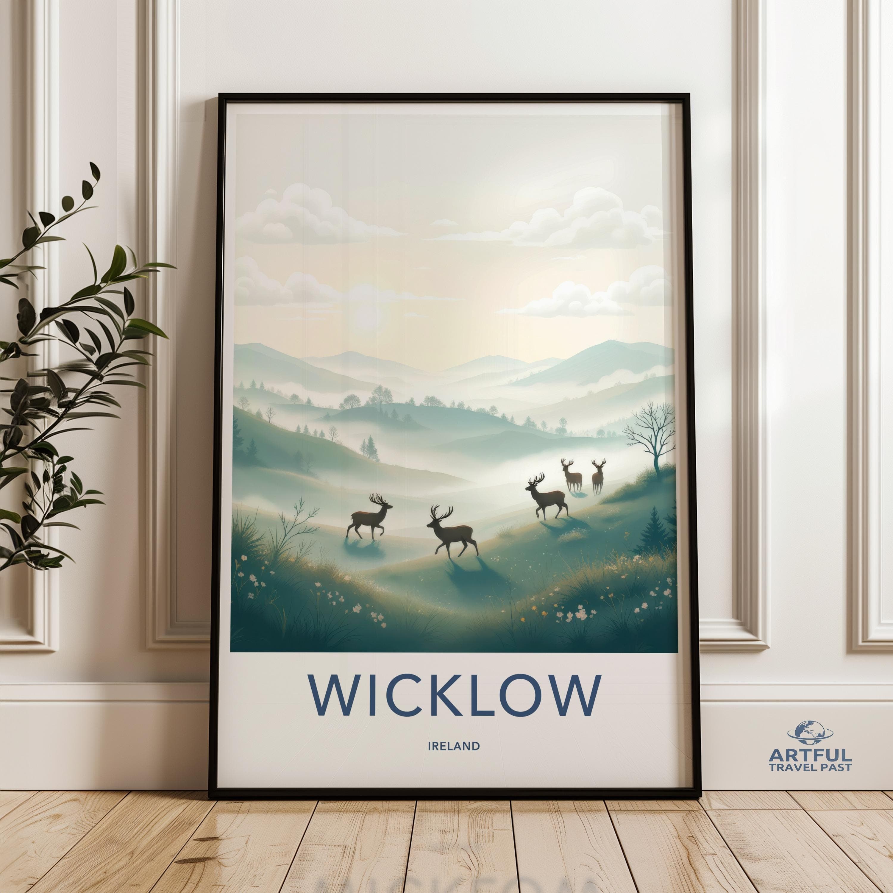 Transform your space with this stunning depiction of Wicklow, Ireland. Nestled in rolling hills and picturesque valleys, Wicklow is renowned for its lush landscapes and tranquil ambiance. Known as the "Garden of Ireland," it boasts an array of historical landmarks like Glendalough's ancient monastic site. This artwork beautifully captures Wicklow’s serene beauty with a misty morning scene, complete with majestic deer roaming freely.