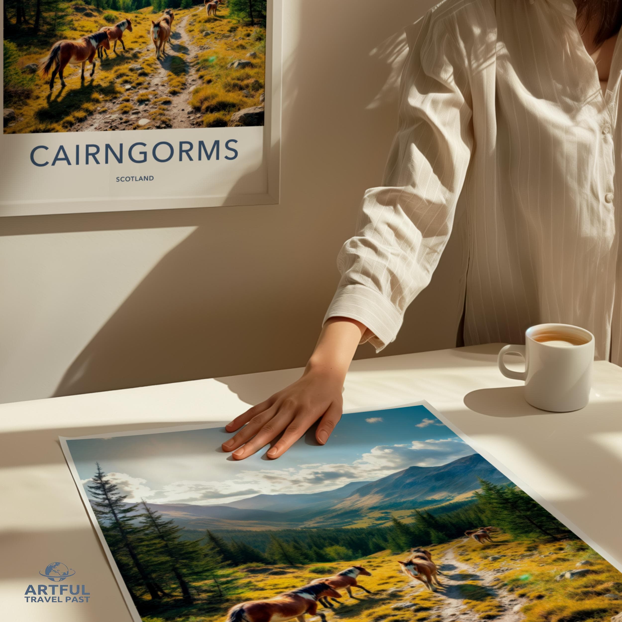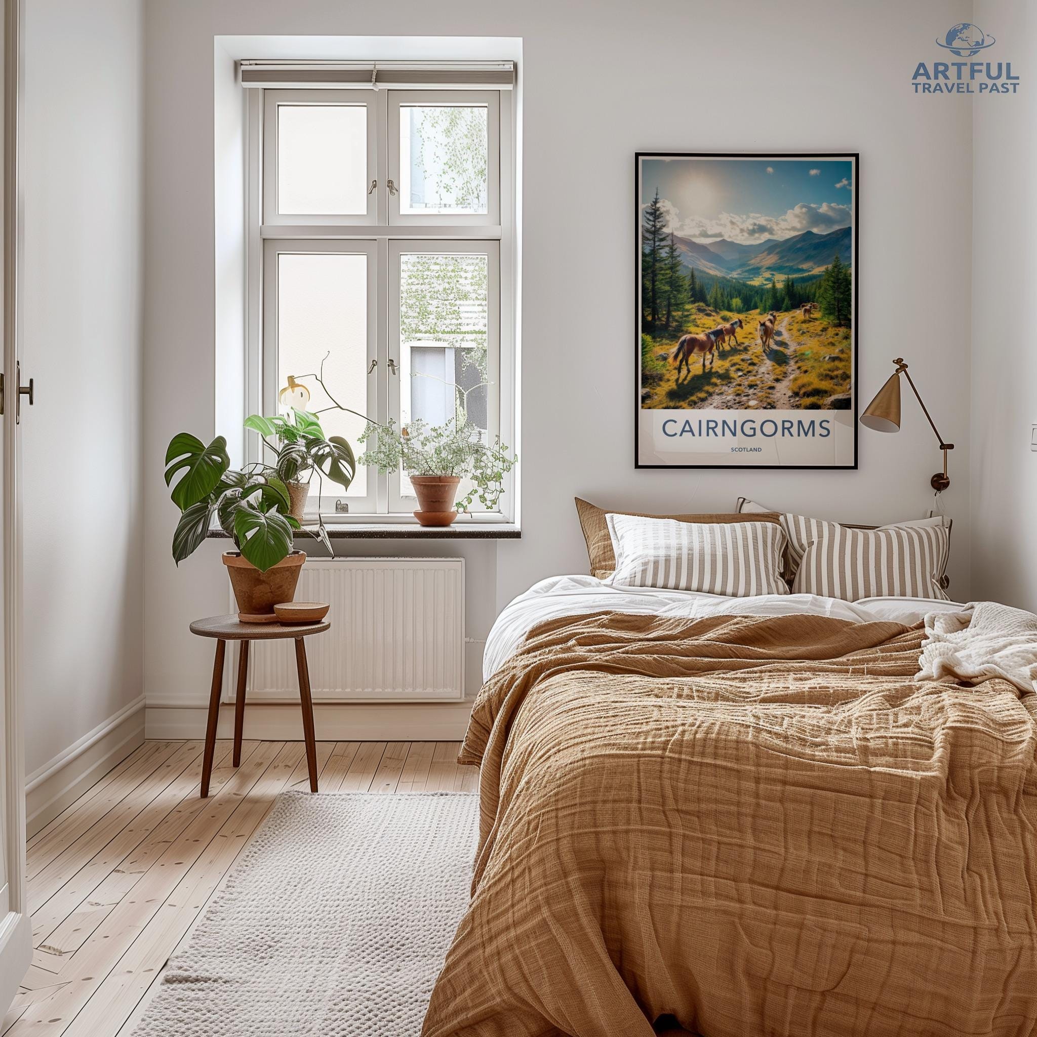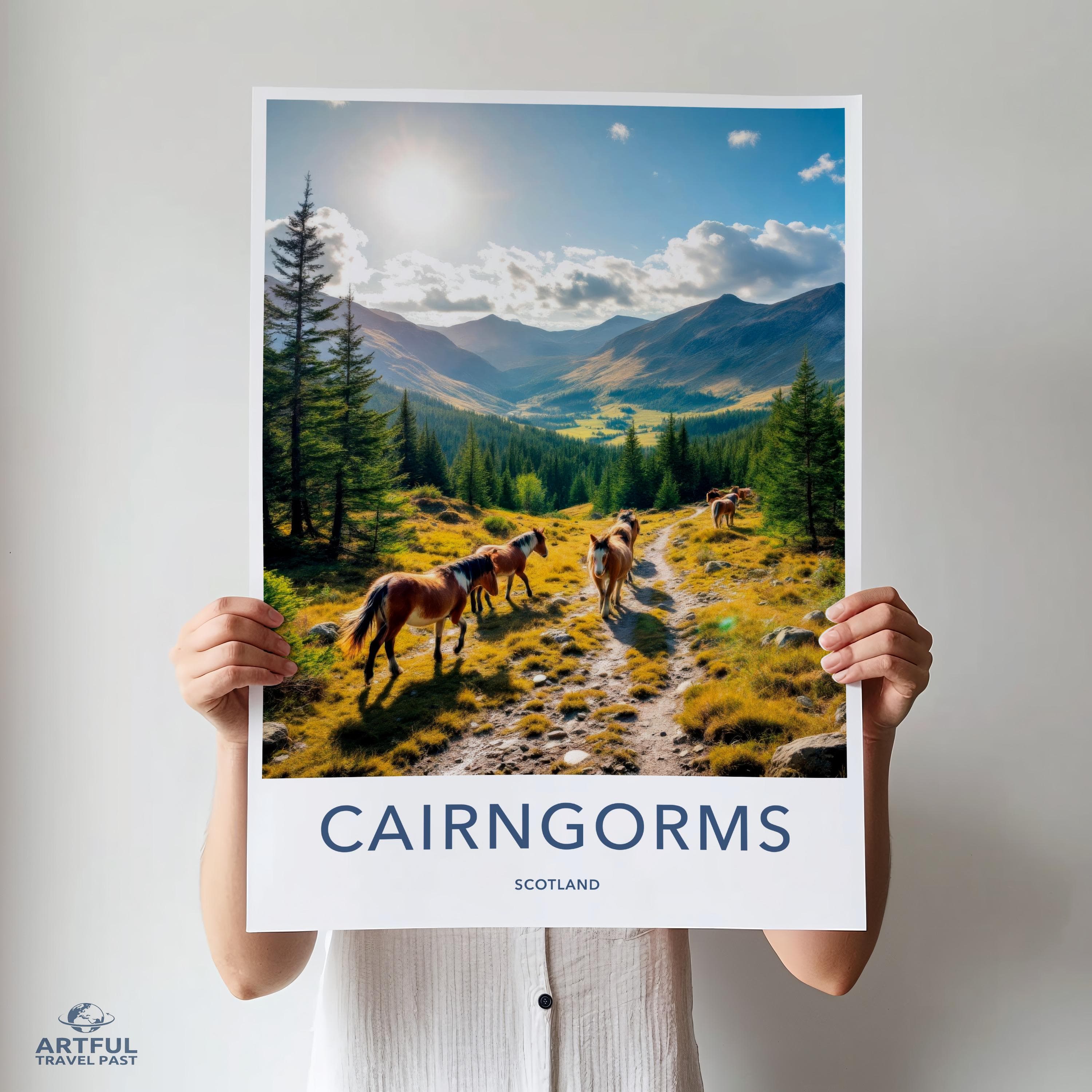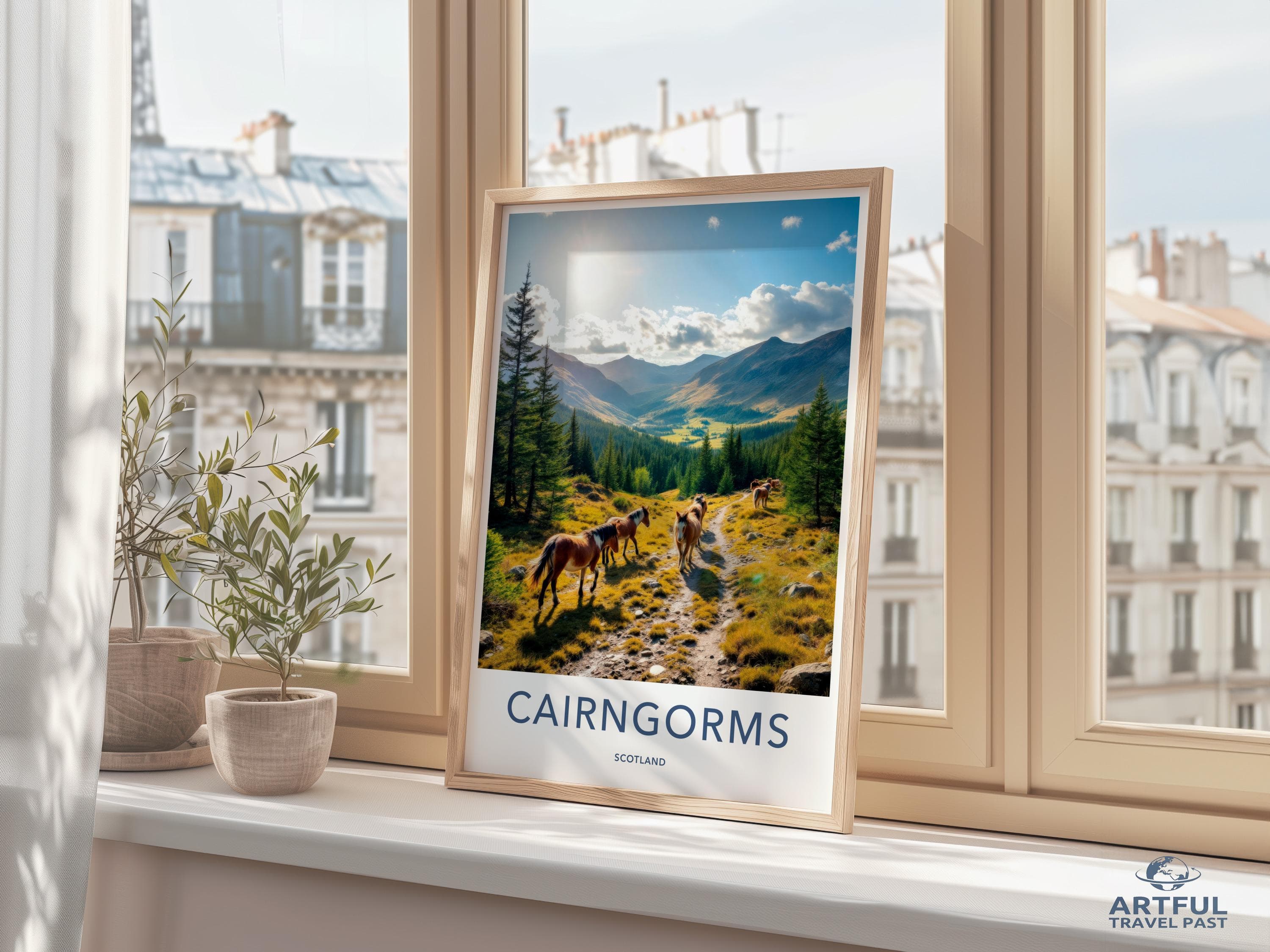 Capture the breathtaking beauty of the Cairngorms, Scotland, with this stunning wall art. This enchanting region, home to the UK's largest national park, boasts dramatic mountain ranges, lush forests, and crystal-clear rivers. Known for its rich wildlife including reindeer and golden eagles, the Cairngorms also feature historic castles and charming highland villages. Perfect for nature enthusiasts and adventure seekers, this piece brings the serene Scottish wilderness into your space.