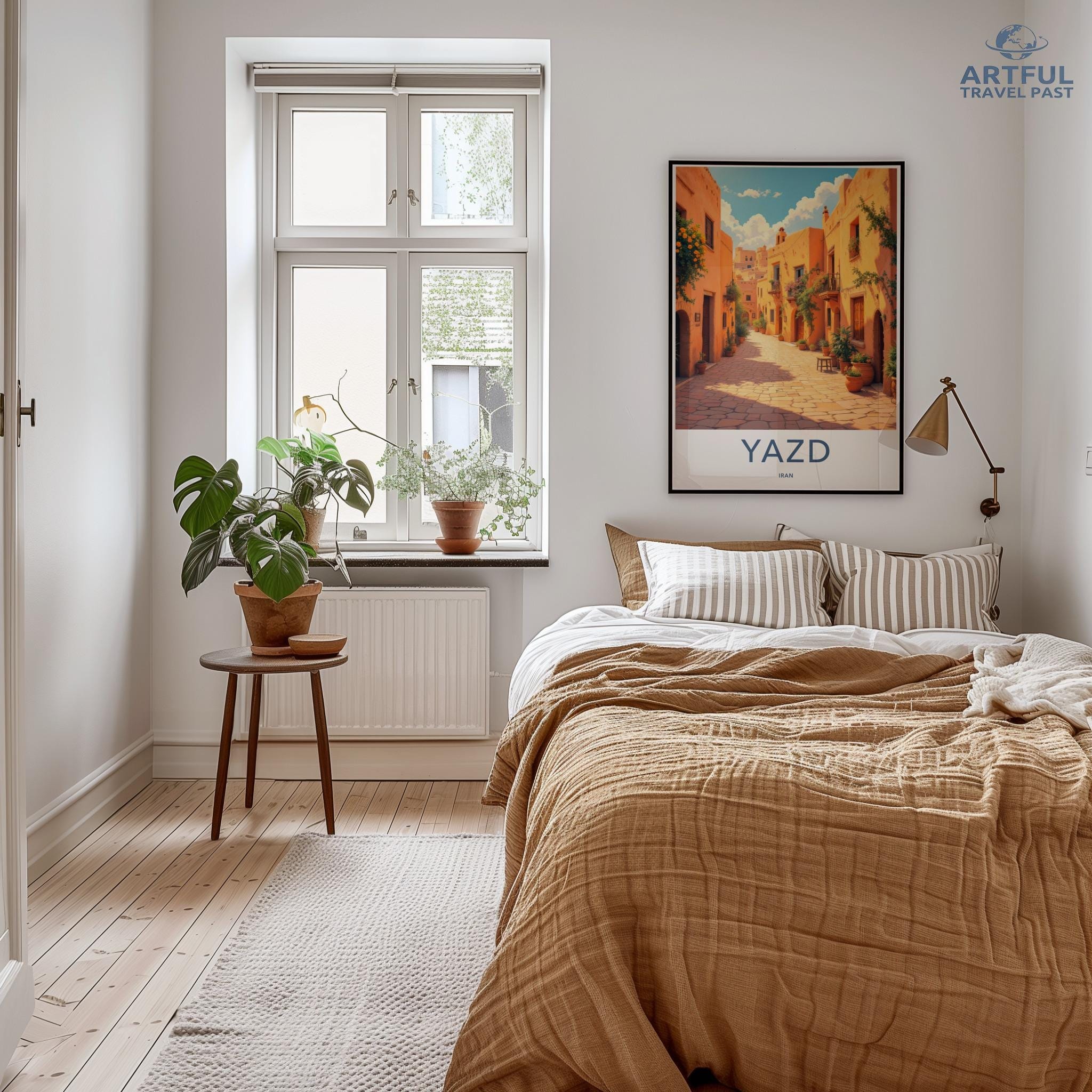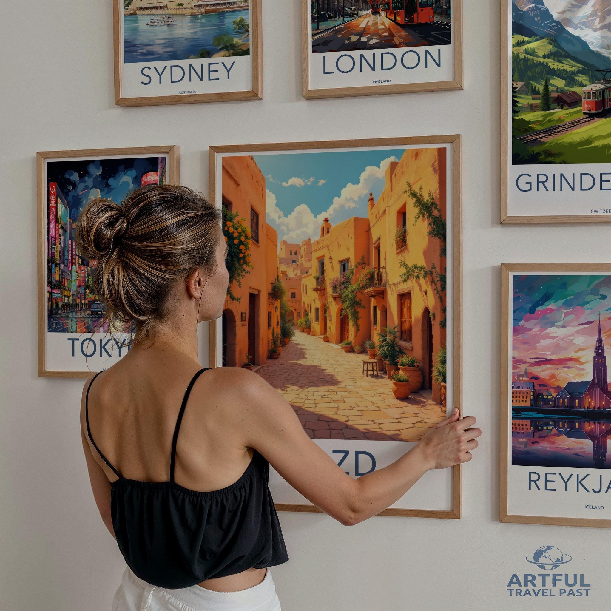 This stunning wall art captures the charming streets of Yazd, Iran, known for its ancient mud-brick architecture and narrow alleyways. Yazd, with its history dating back over 3,000 years, is a UNESCO World Heritage Site and an oasis of Iranian culture. Notable for its windcatchers, which provide natural air conditioning, the city offers a mesmerizing blend of history, culture, and beautiful desert landscapes.